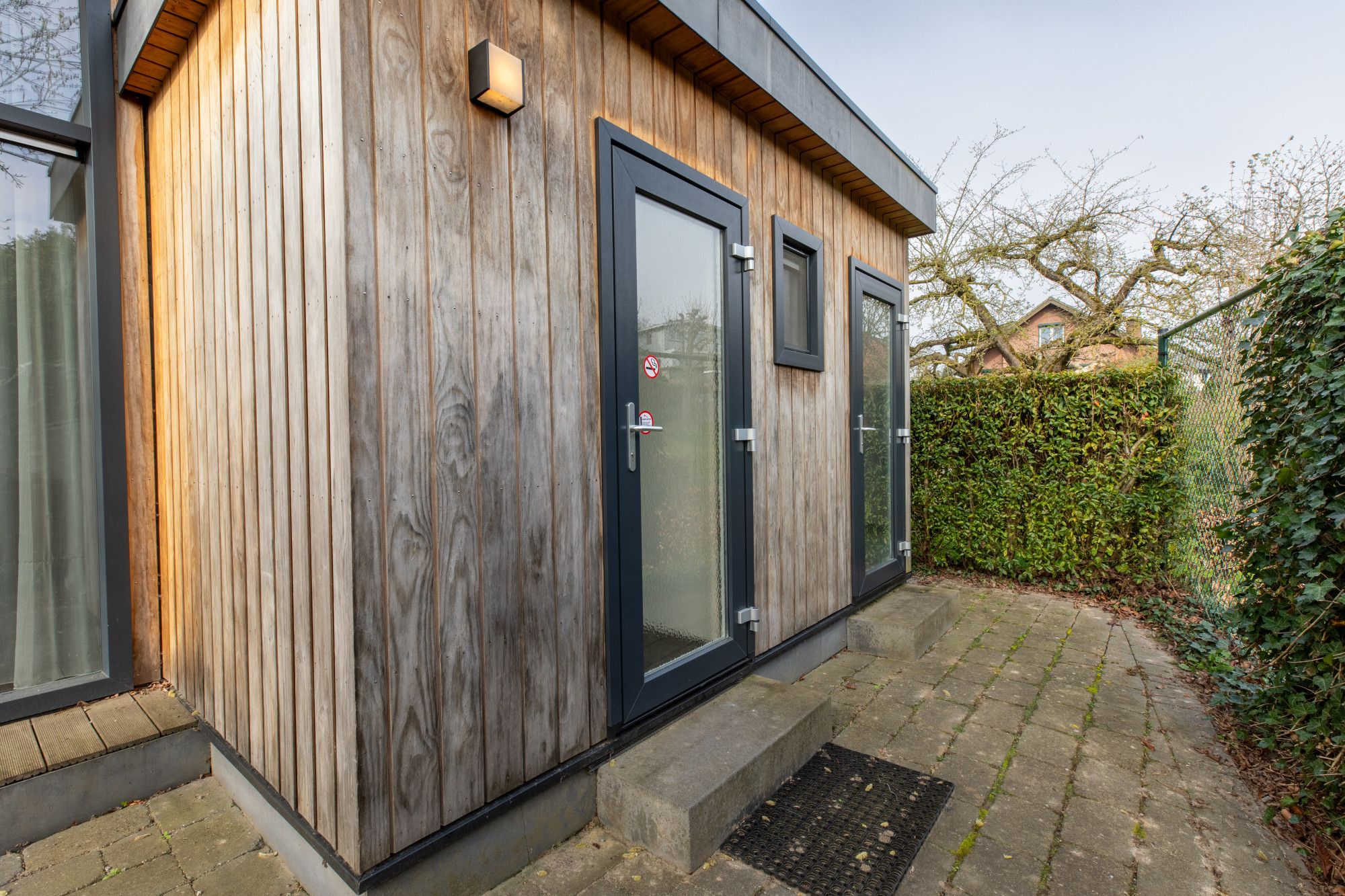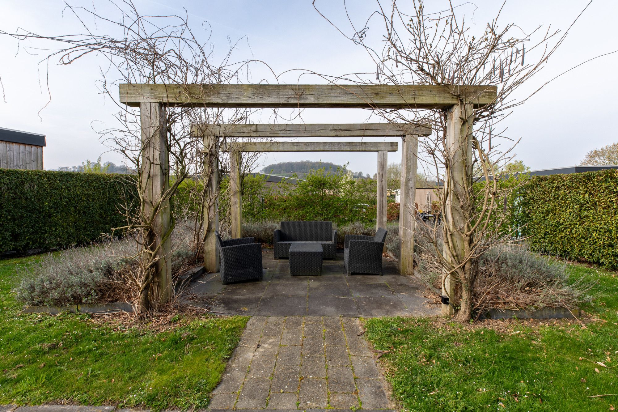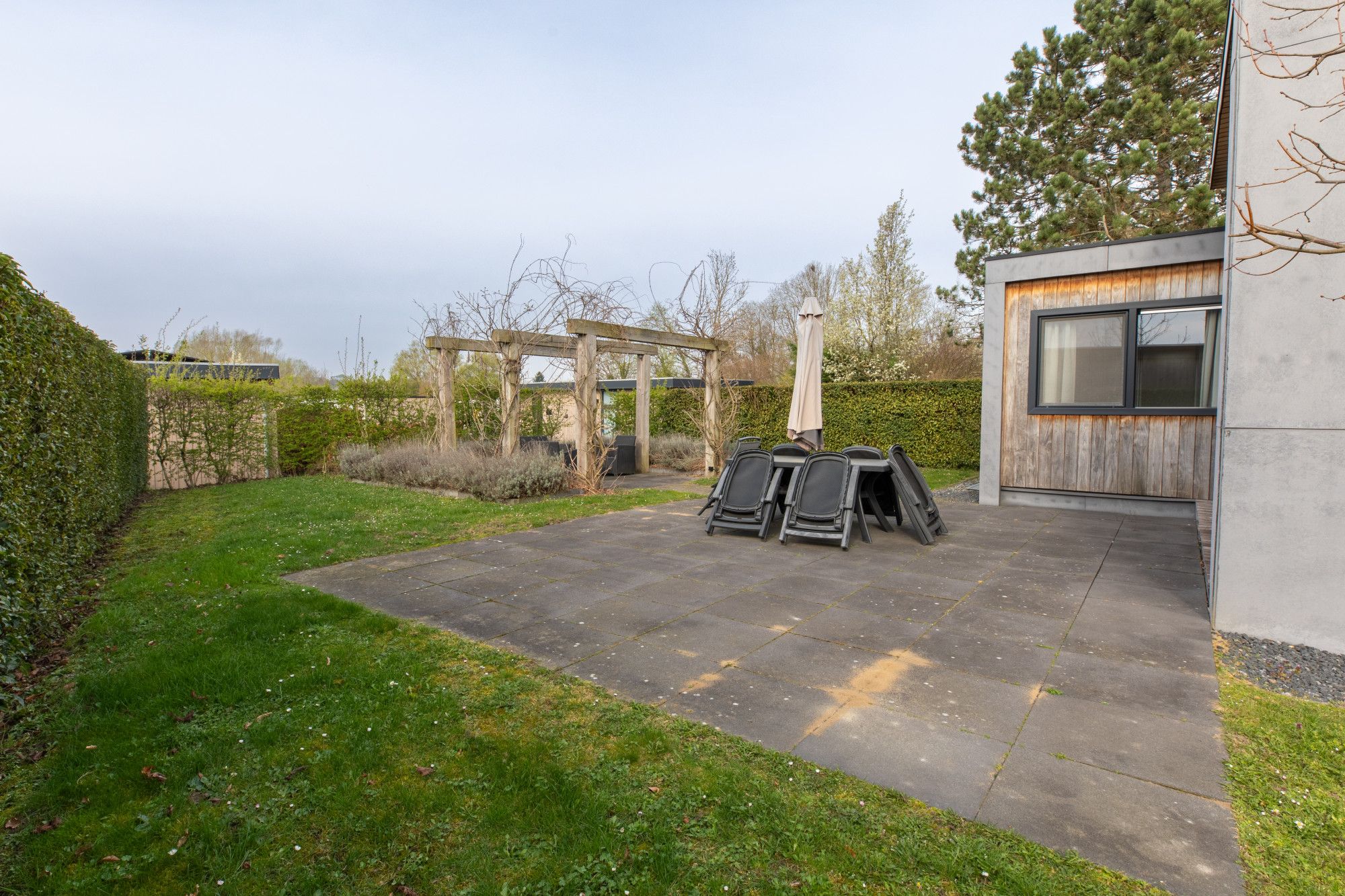 In de ruime tuin aan de achterzijde van de woning bevindt zich mooi betegeld terras en achter in de tuin is een loggia waar men heerlijk kan zitten.