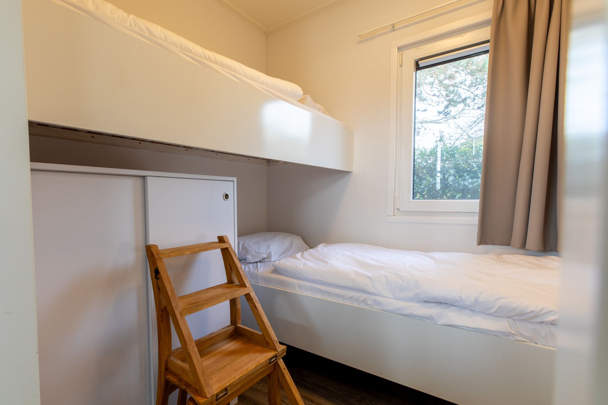 De grootste slaapkamer is voorzien van een 2-persoonsbed en een kastenwand met schuifdeuren. De tweede en derde slaapkamer is ingedeeld met hoog geplaatst eenpersoonsbed en een laag geplaatst eenpersoonsbed ook deze kamers beschikken over voldoende opbergmogelijkheden.