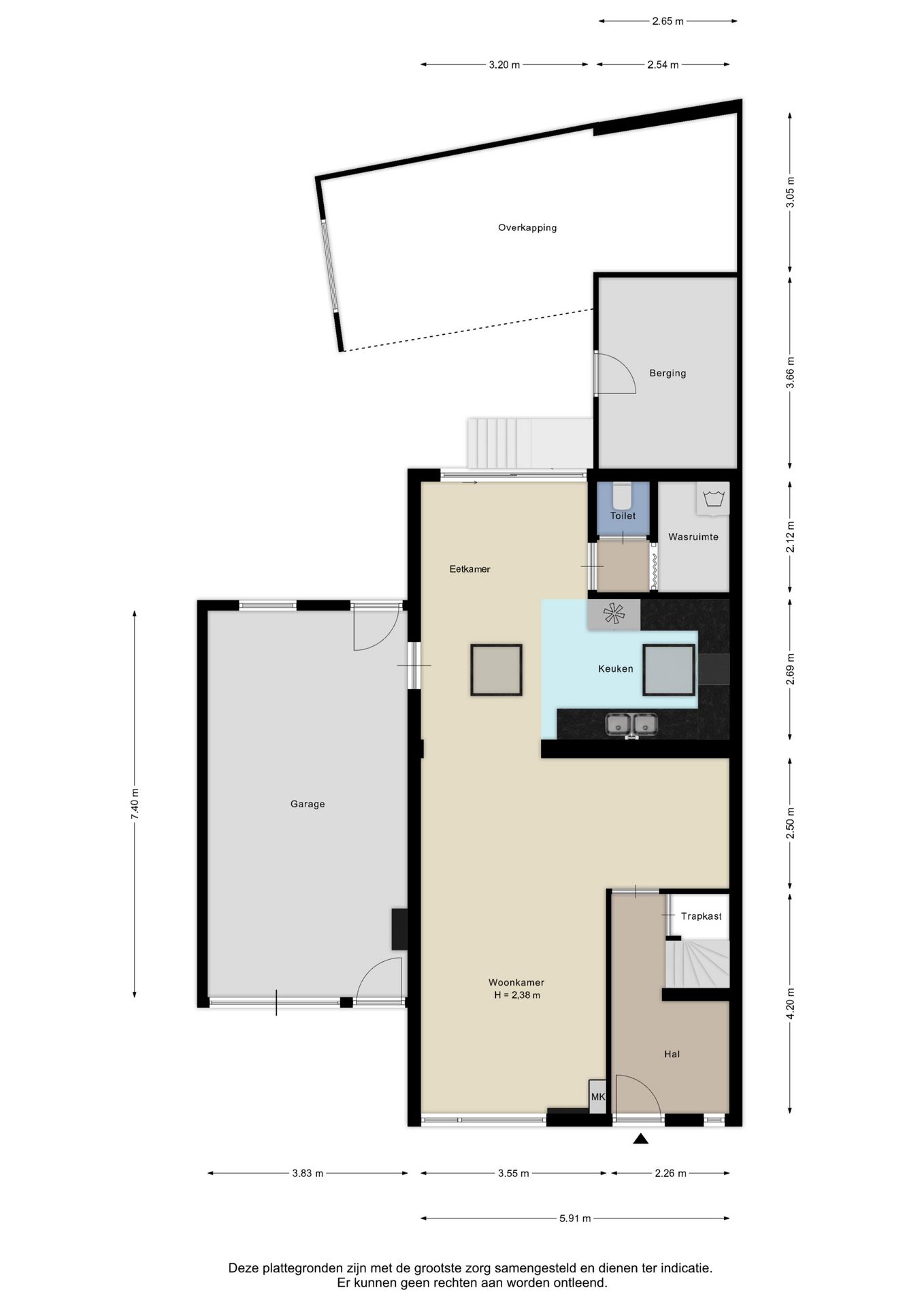 Alle door ons kantoor verstrekte informatie omtrent onroerende zaken, moet beschouwd worden als een uitnodiging om in onderhandeling te treden, en is geheel vrijblijvend! Alle vermelde maten en afmetingen zijn slechts bij benadering. Aan deze beperkte info kunnen geen rechten worden ontleend. Indien in enige documentatie of op enige website informatie staat die niet overeen komt met de werkelijkheid, dan geldt de feitelijke situatie waarin de woning zich bevindt, zoals koper deze tijdens de bezichtiging heeft kunnen waarnemen, en wordt de woning in deze feitelijke situatie/staat verkocht. Een (eventueel) bijgevoegde plattegrond dient uitsluitend als globale indicatie/visualisatie. Hieraan kunnen uitdrukkelijk geen rechten worden ontleend.