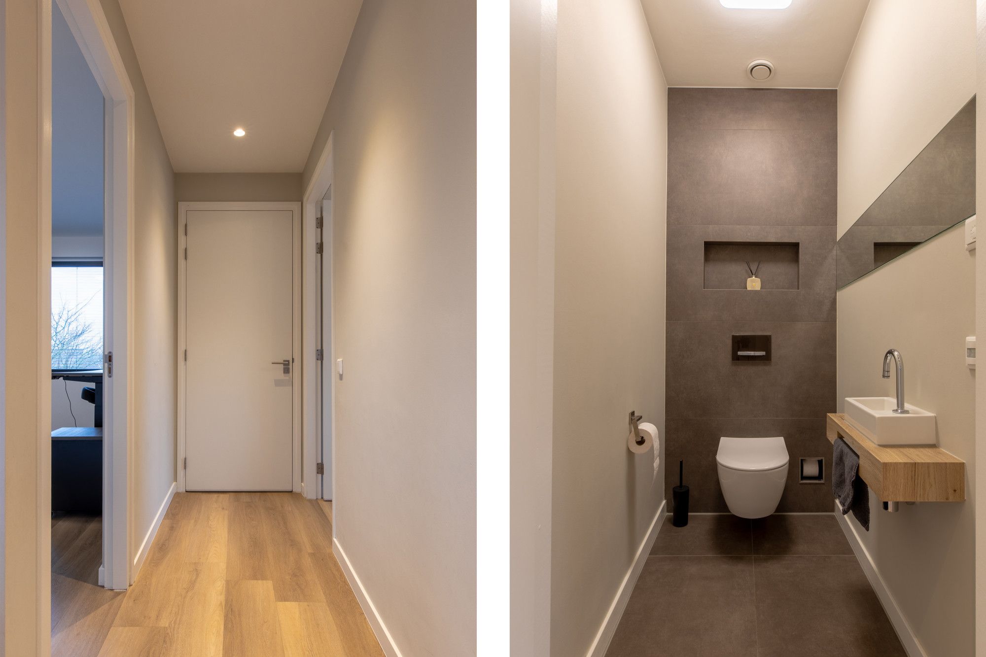 Separaat ruime toilet met zwevende uitvoering en fontein.