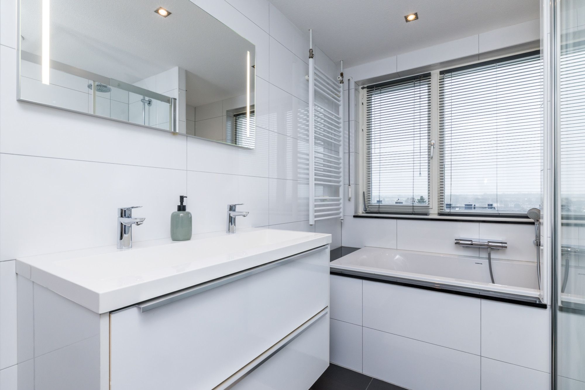 Voorzien van warm water aansluiting, verwarming en dubbele elektrische poort.