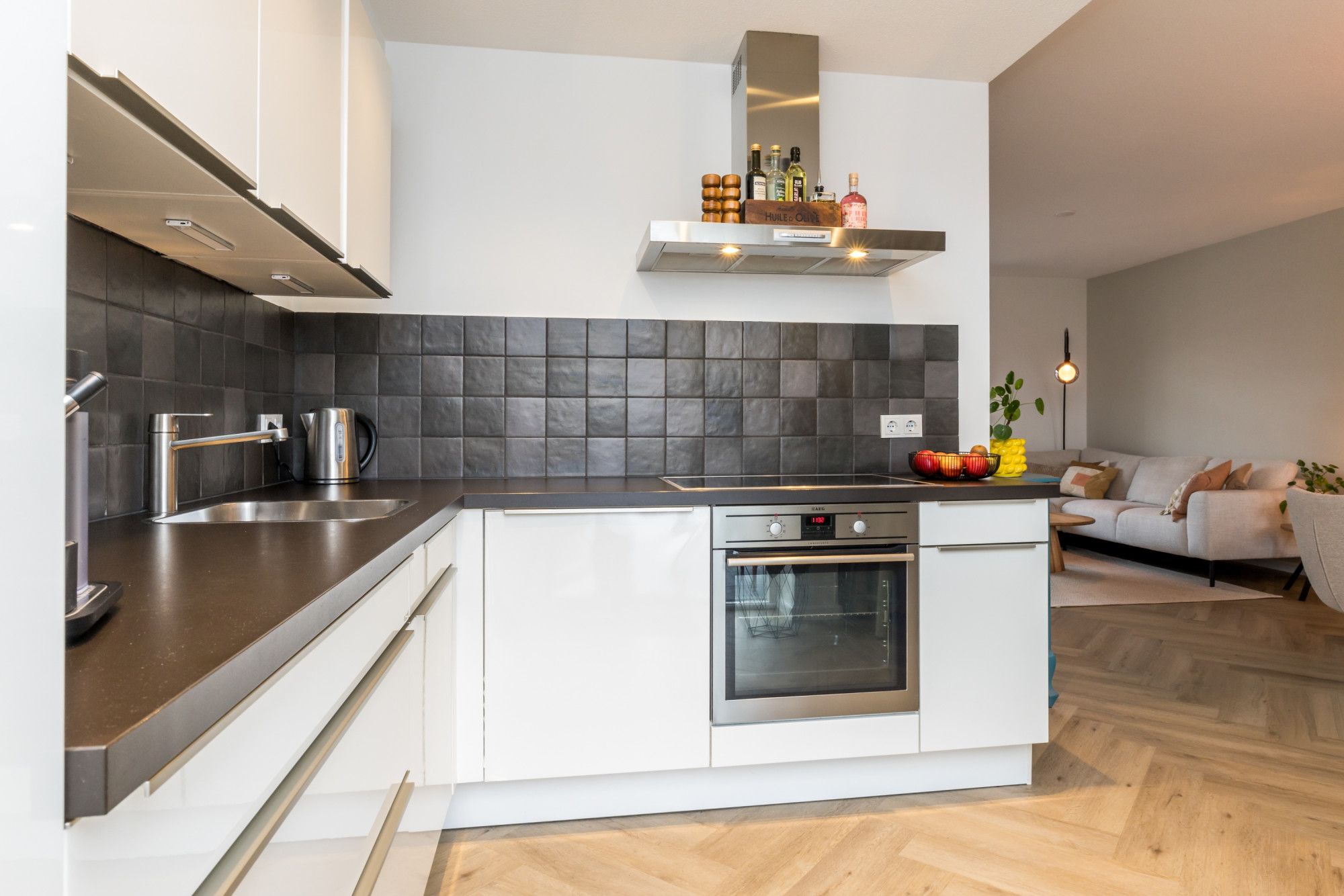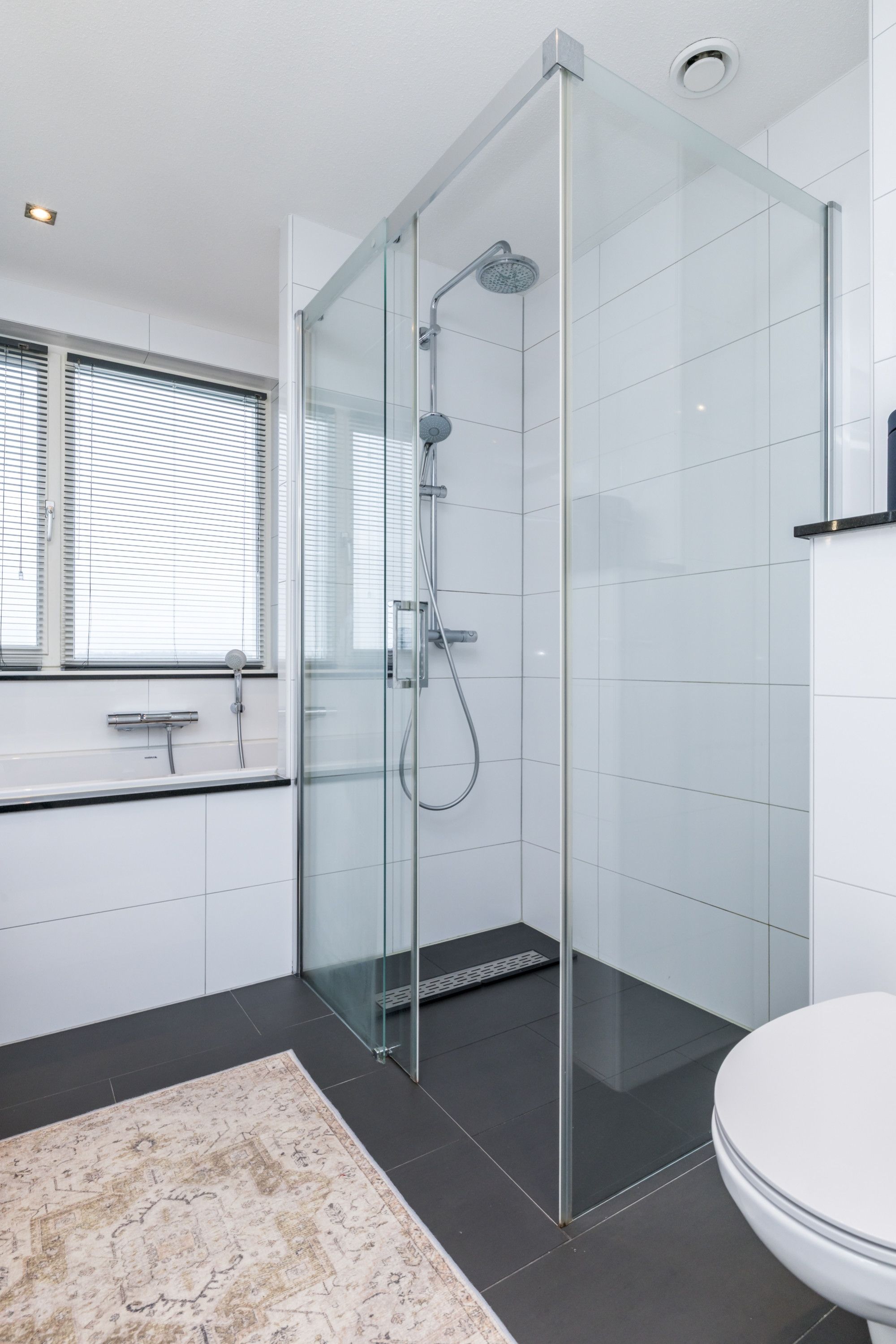 - Moderne betegelde badkamer/ open keuken (vernieuwd ergens in de periode tussen 2015-2021)