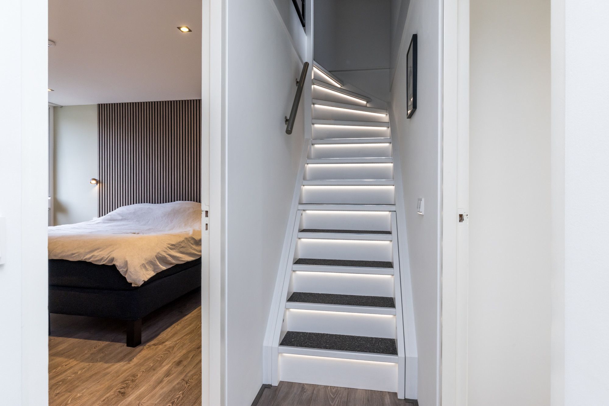 Vaste trap vanaf de overloop naar zolder met overloop naar de 4e slaapkamer met dakkapel aan de achterzijde voorzien een zonnescherm en screen (kunststof kozijnen/ 2021/ HR++ beglazing) met een prachtig uitzicht. Hier zijn ook de witgoed aansluitingen gesitueerd plus CV eigendom installatie uit 2014 van het merk Remeha (Calenta).