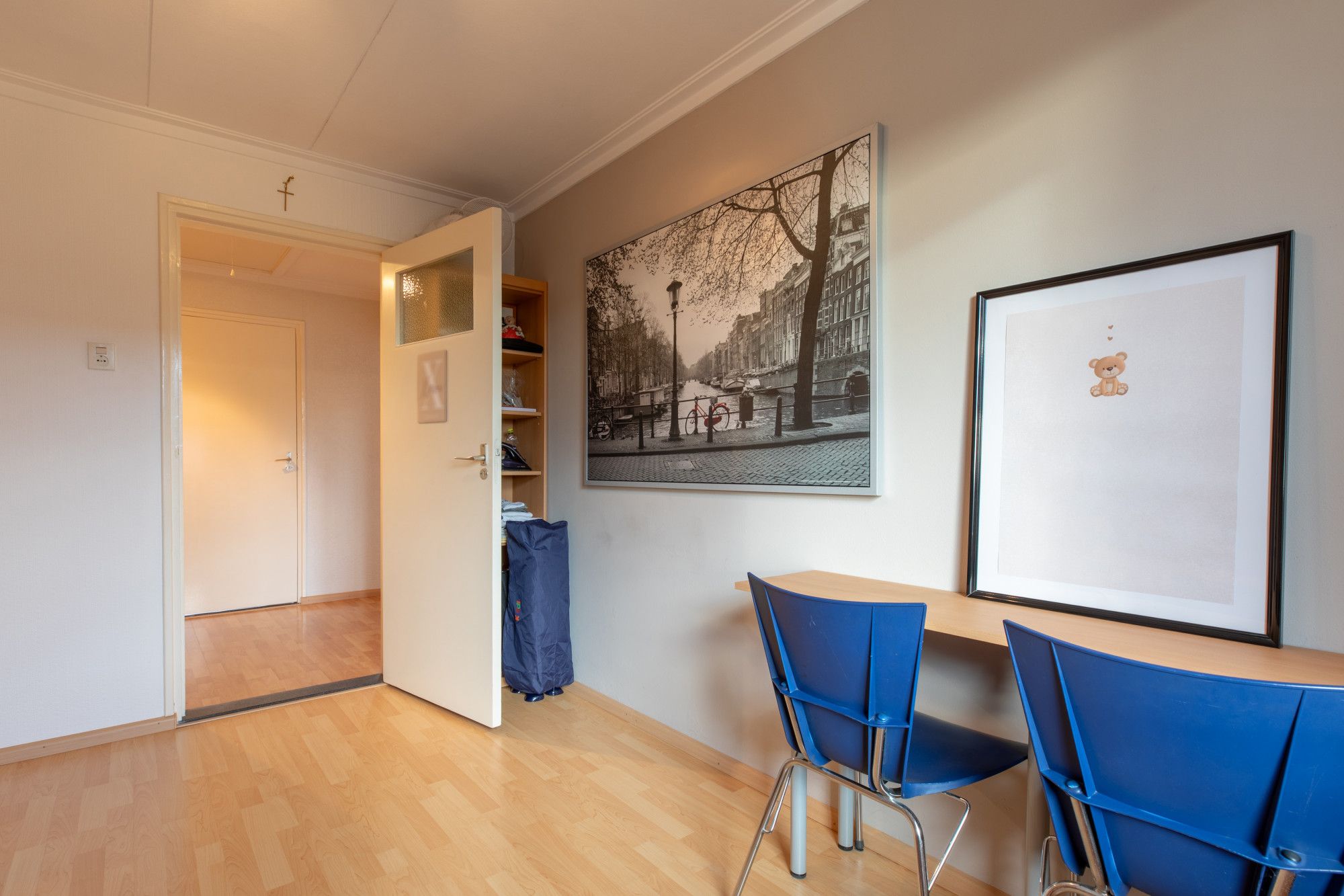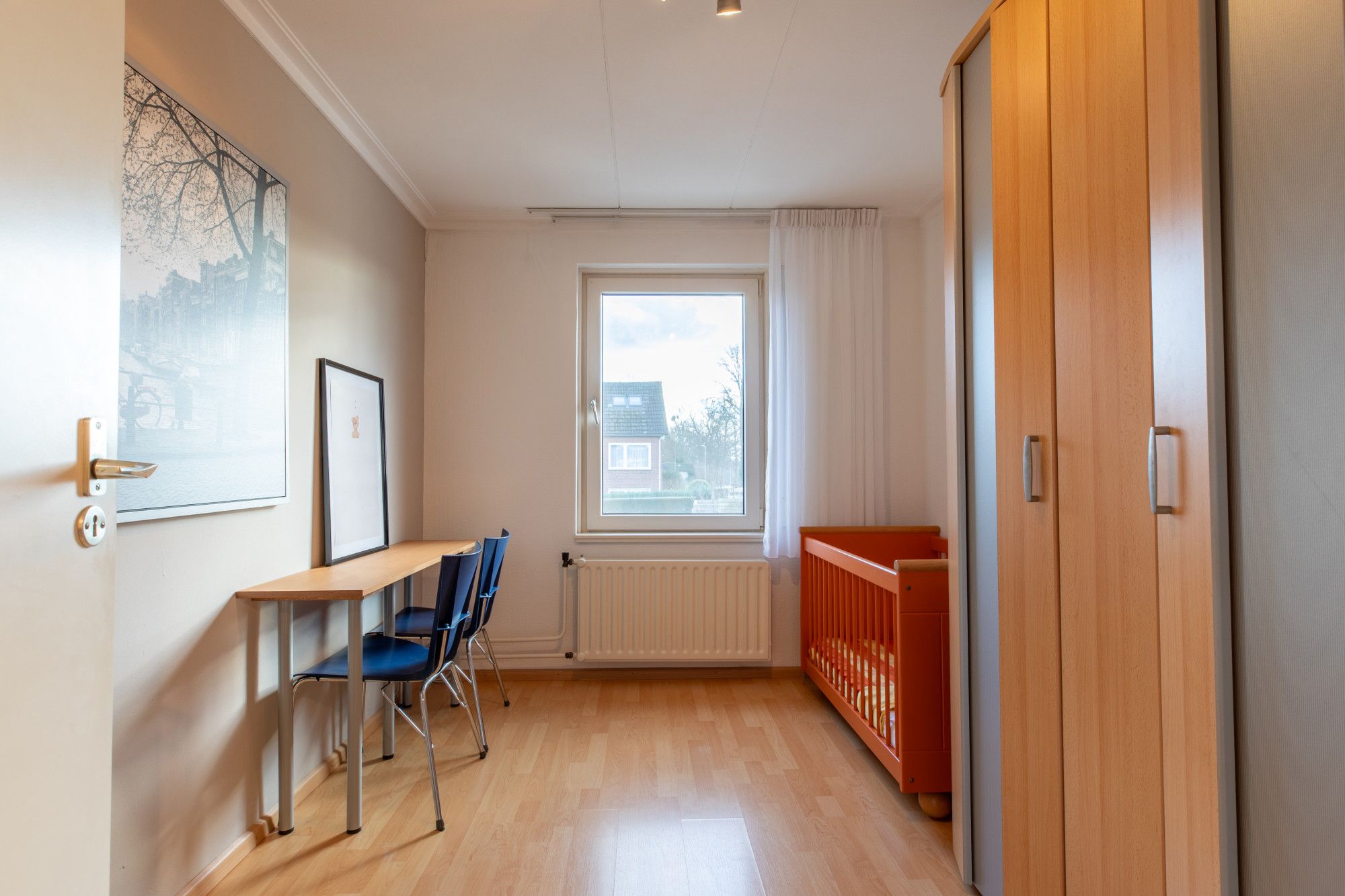 Slaapkamer 3 (3.48 x 2.61 m) voorzien van laminaatvloer.