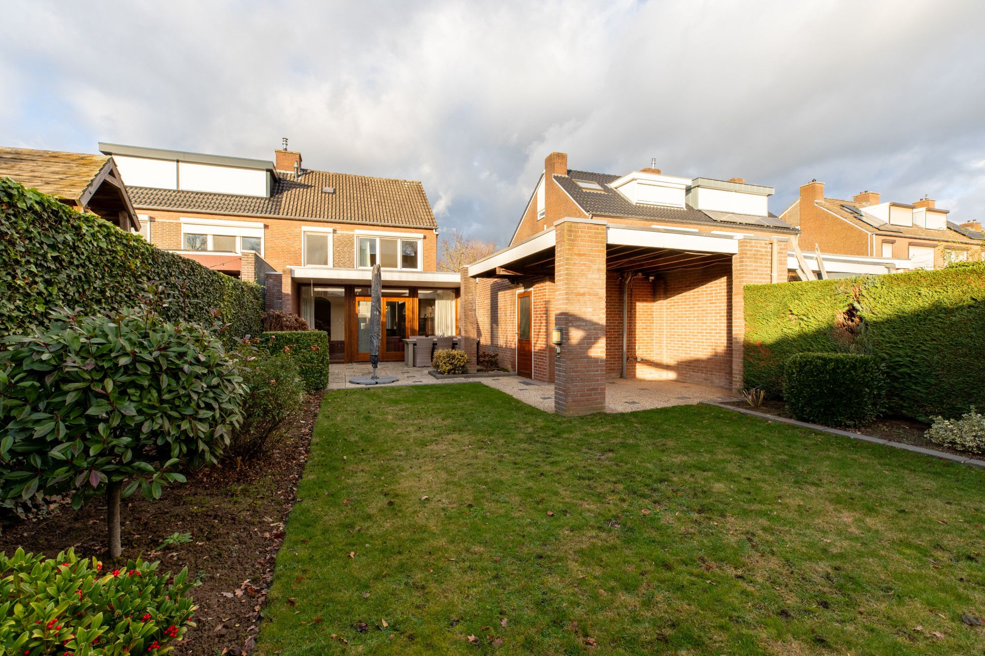 Aan de dorpsrand van Sint Geertruid, in rustige woonomgeving gelegen bieden wij u aan deze "Ruime, goed onderhouden en keurig bewoonde riante twee onder een kap woning met uitbouw, garage, carport en ruime achtertuin". Sint Geertruid ligt slechts op enkele minuten rijafstand van Maastricht. Je bent in no-time op de autosnelweg A2 richting Eindhoven of richting Luik. Voor het openbaar vervoer ben je in eerste instantie aangewezen op de bus (bushalte op loopafstand) die je brengt naar het NS-treinstation in Maastricht.