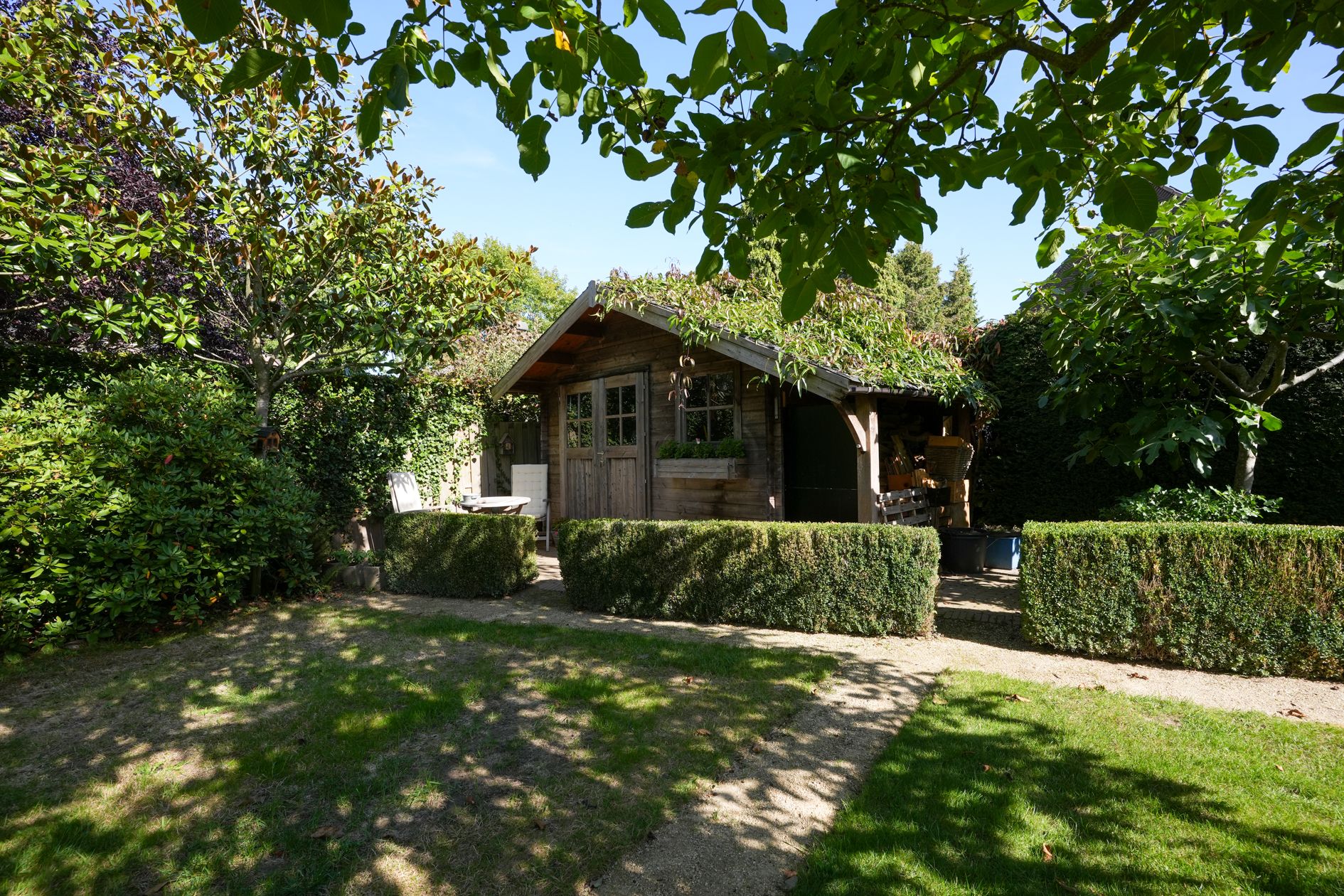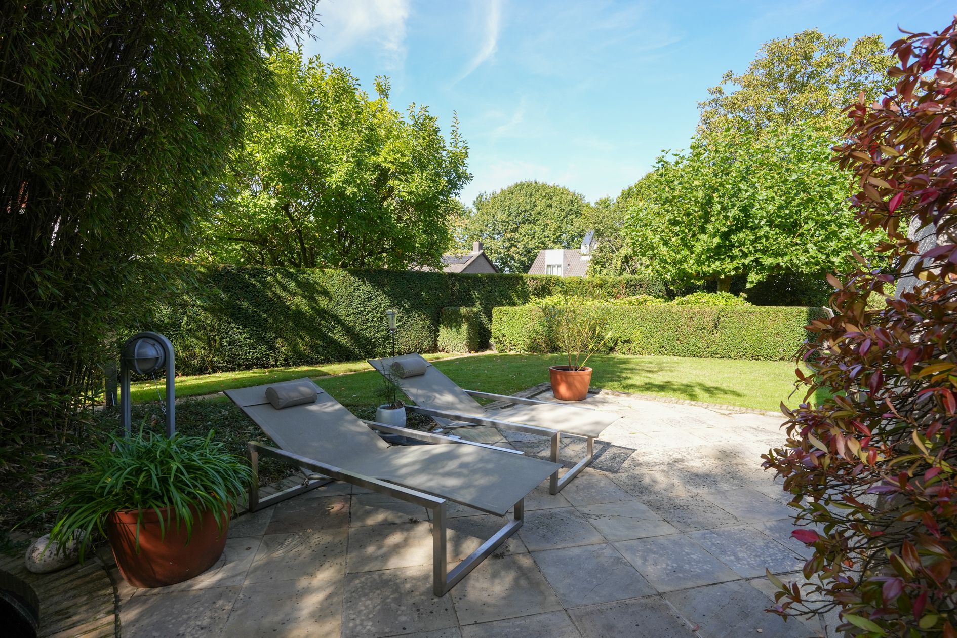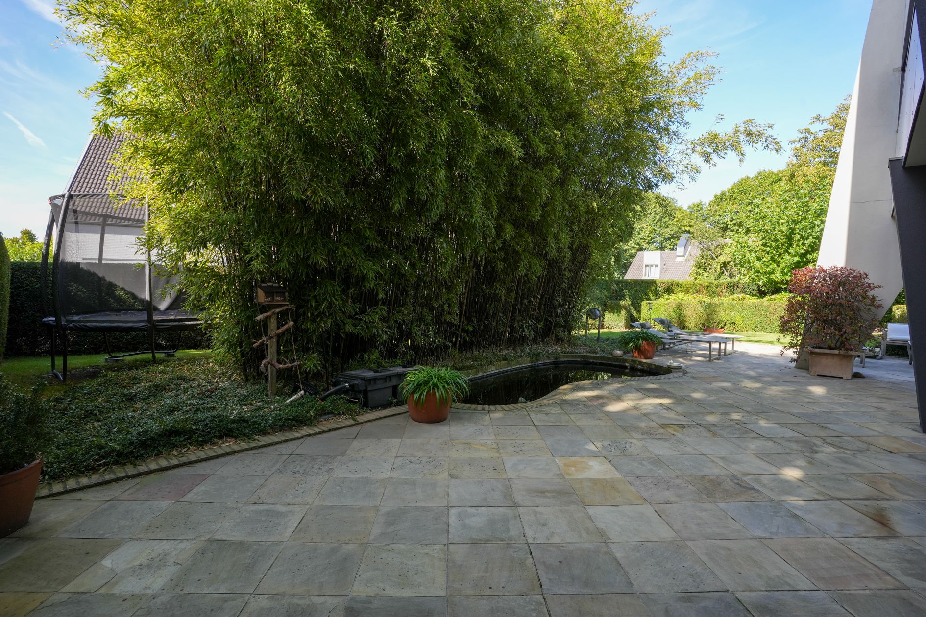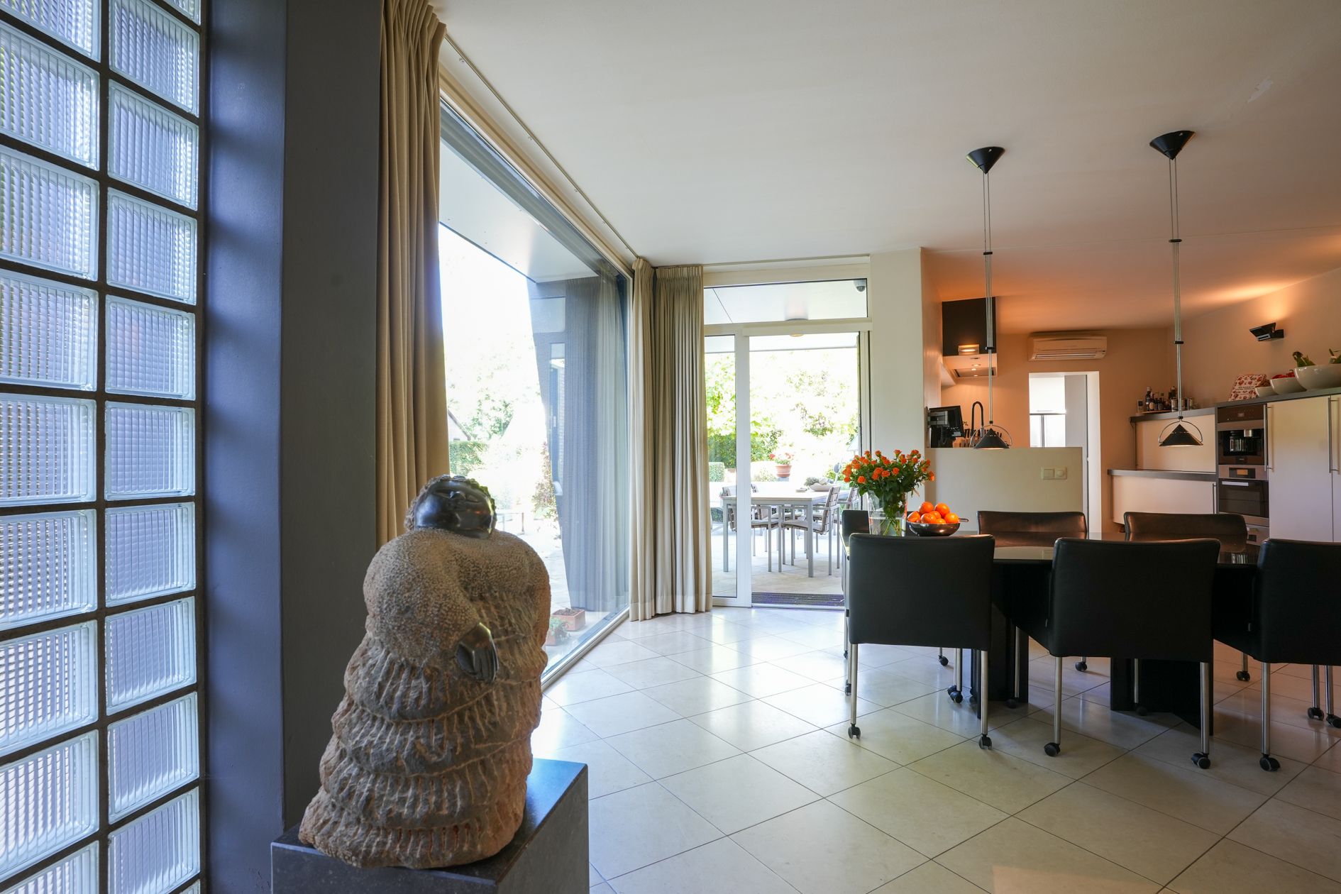 Deze zeer fraaie villa is bijzonder ruim ingedeeld. De sfeervolle woonkamer (met grote inzethaard) biedt veel lichtinval en heeft uitzicht op de uitstekend onderhouden tuin met diverse zitgelegenheden en vijver.