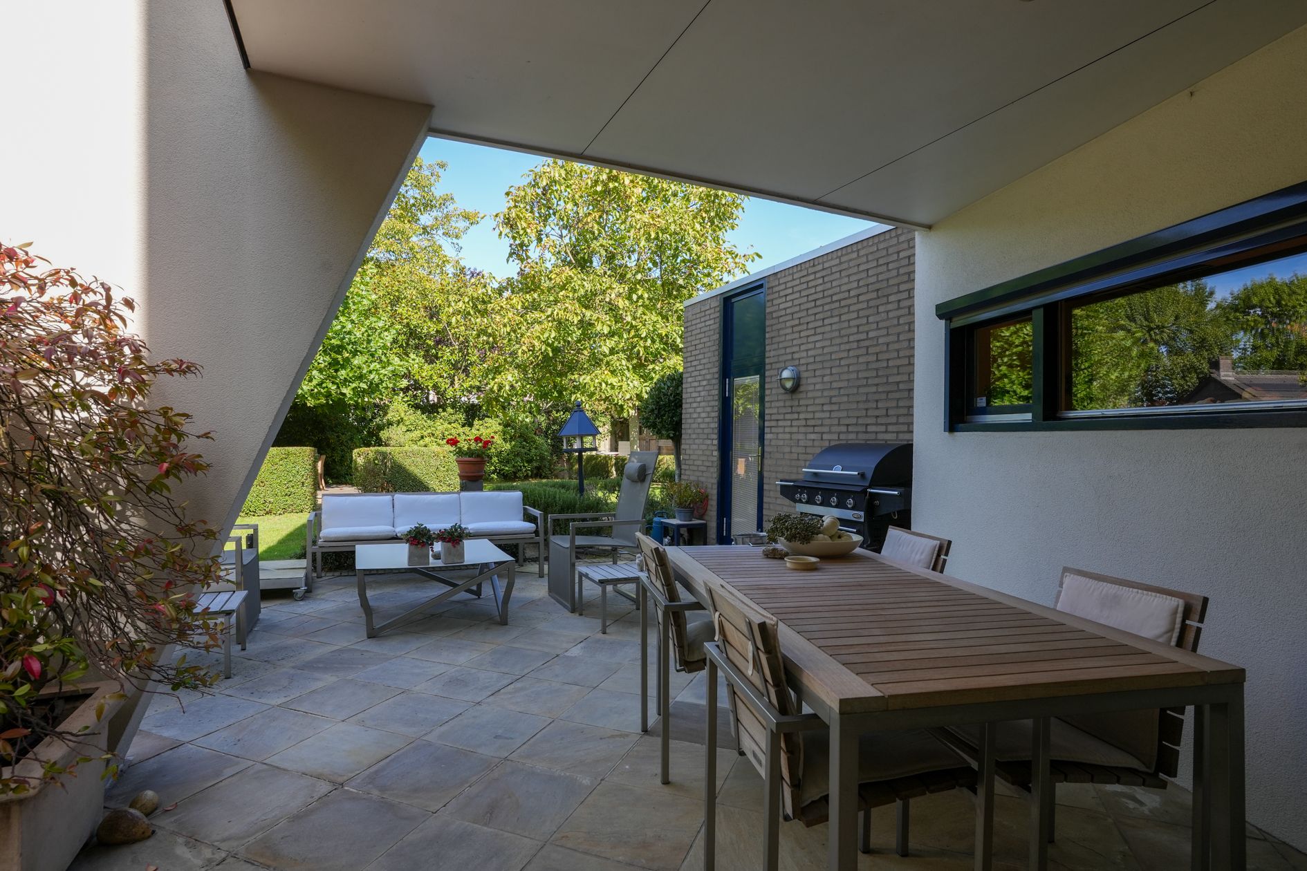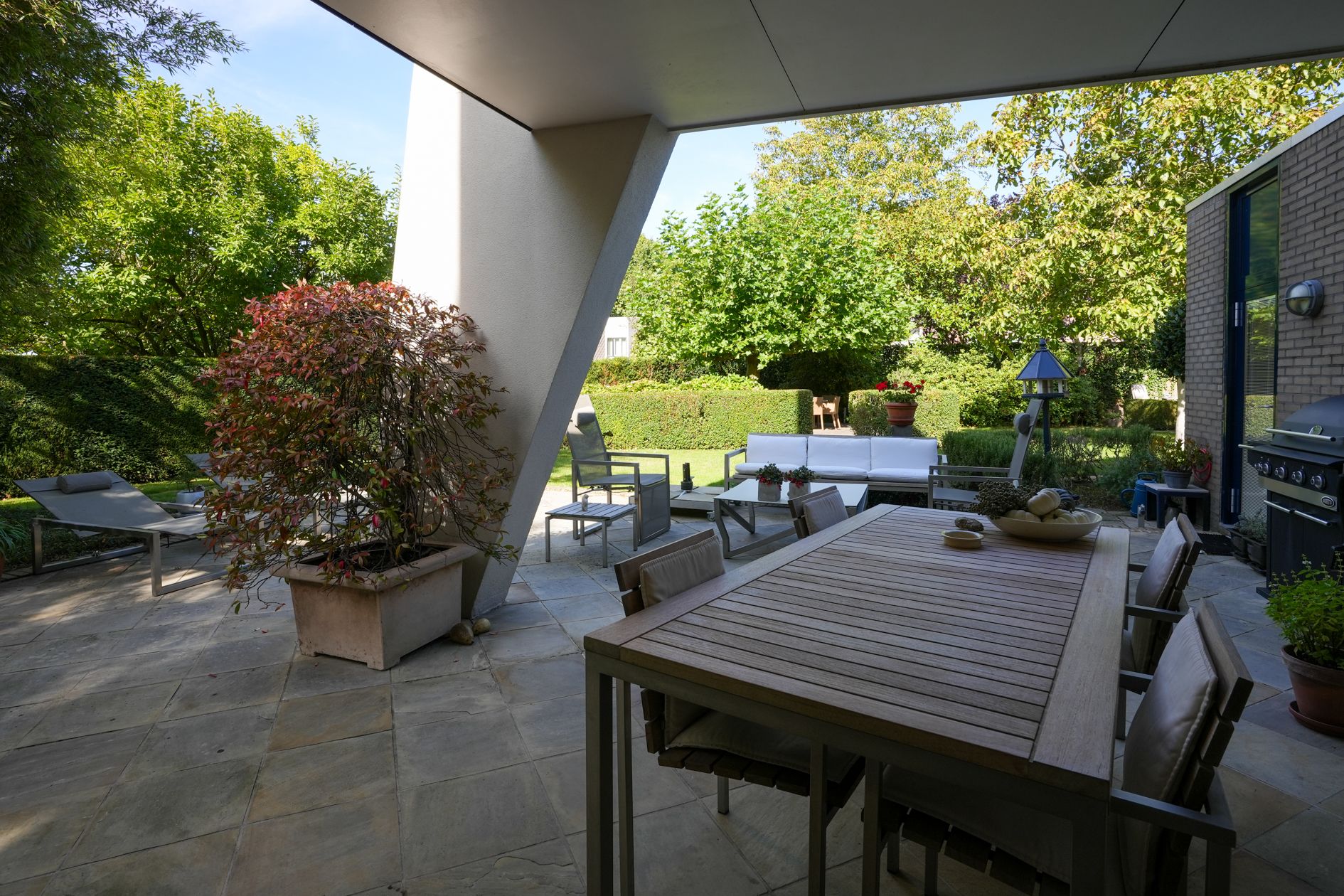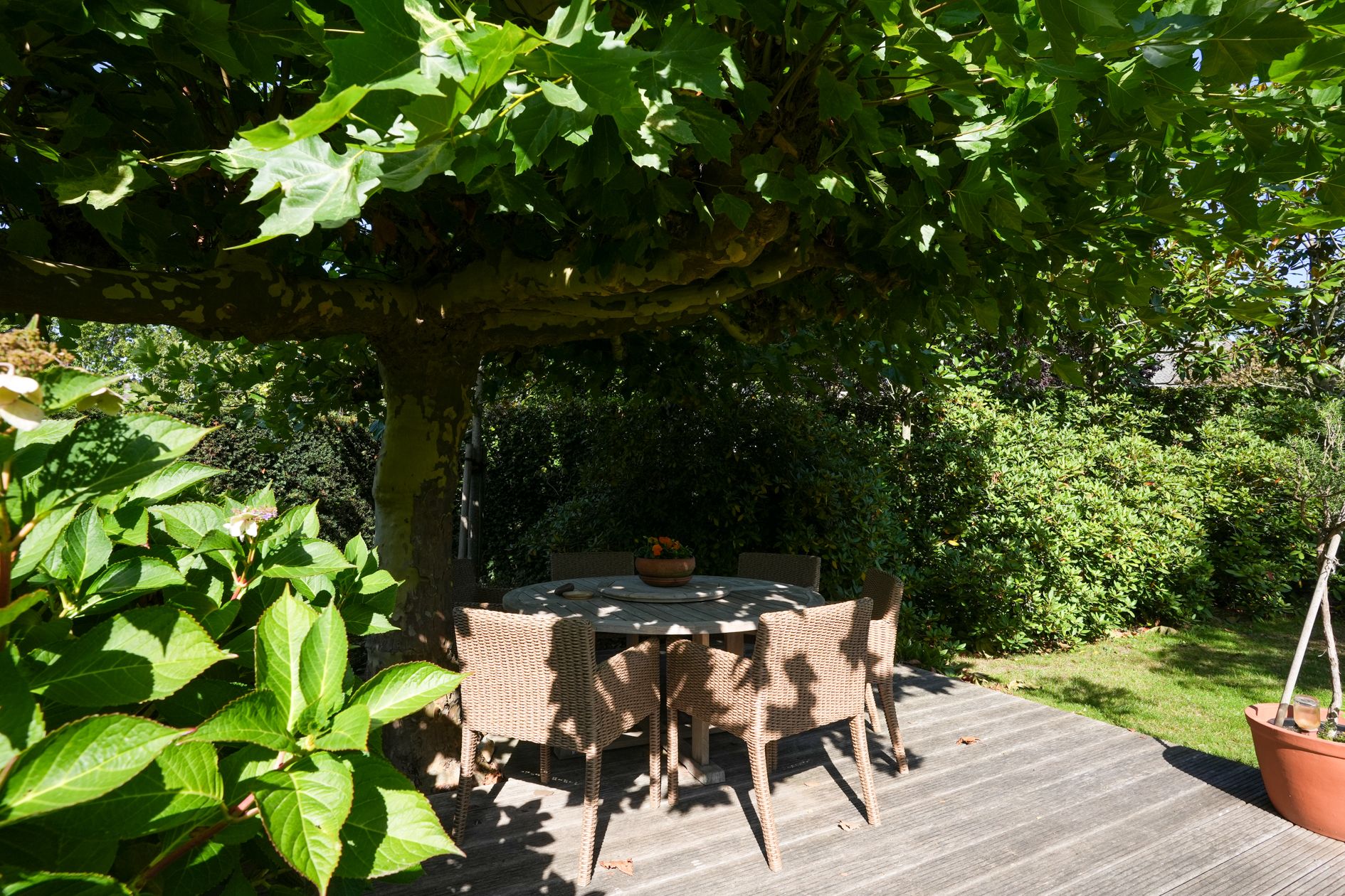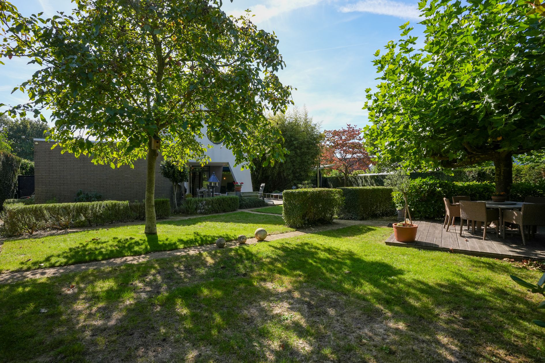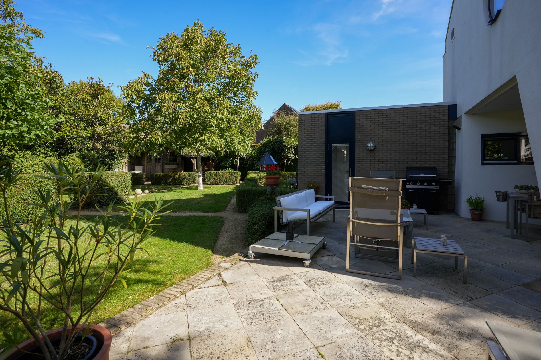 Deze zeer fraaie villa is bijzonder ruim ingedeeld. De sfeervolle woonkamer (met grote inzethaard) biedt veel lichtinval en heeft uitzicht op de uitstekend onderhouden tuin met diverse zitgelegenheden en vijver.