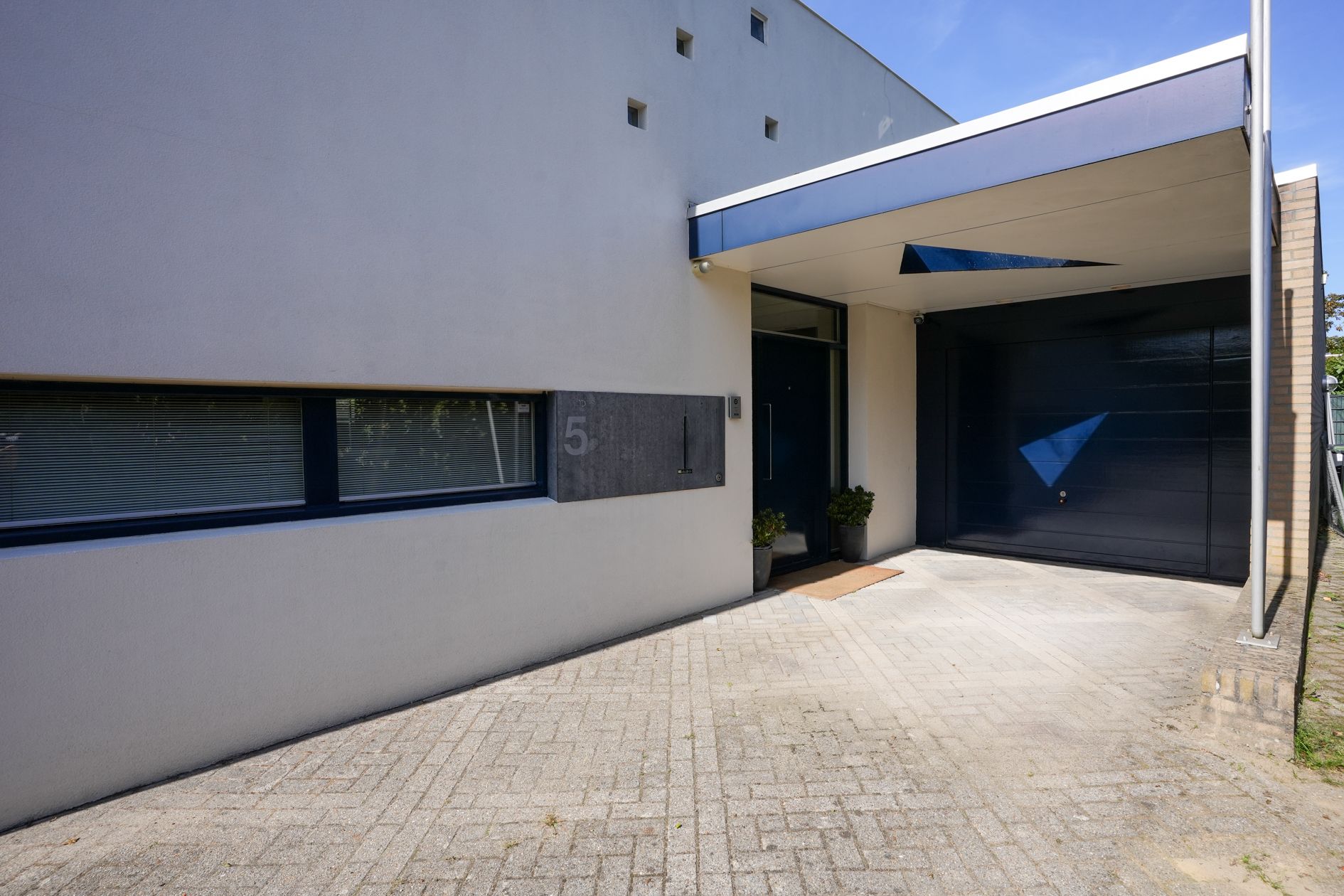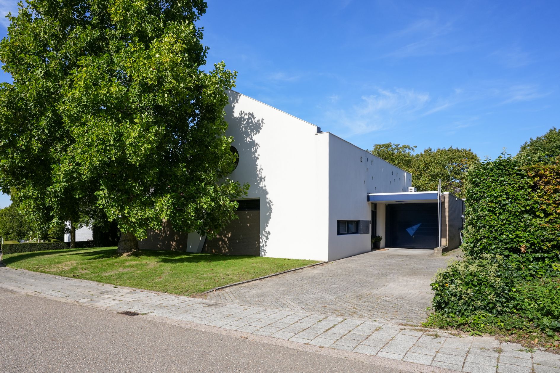 De keuken is op maat gemaakt (ontwerp Roel de Vos). De riante bijkeuken is in dezelfde stijl afgewerkt en voorzien van wandkasten, een wijnklimaatkast, twee koel-vrieskasten, wasmachine- en drogeraansluiting, elektrisch bedienbaar daklicht en geeft toegang tot de garage met CV opstelling. Drie grote slaapkamers met airco (alle voorzien van een entresol) en twee badkamers op de verdieping. Royale oprit met garage en carport.