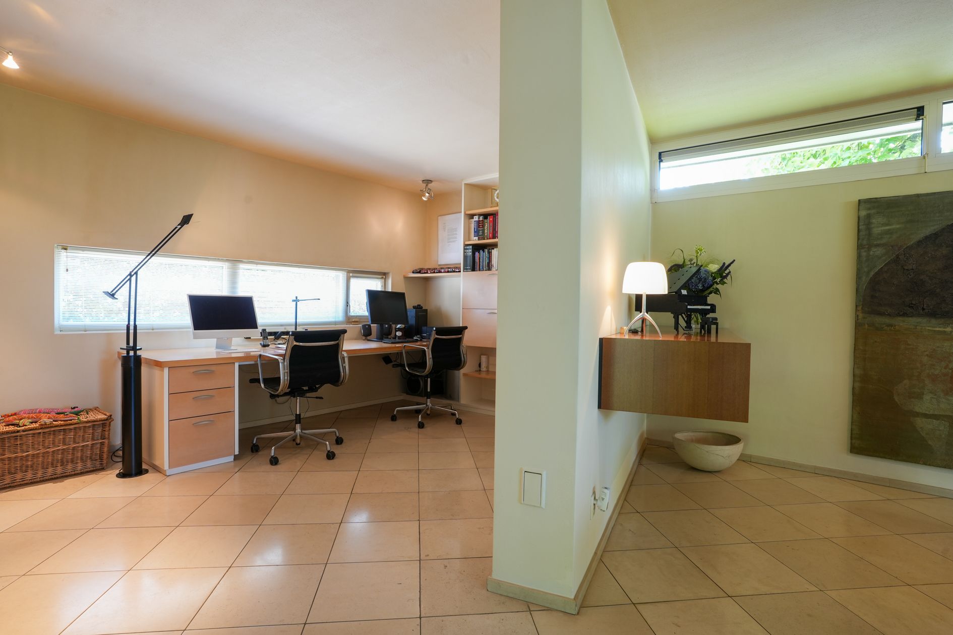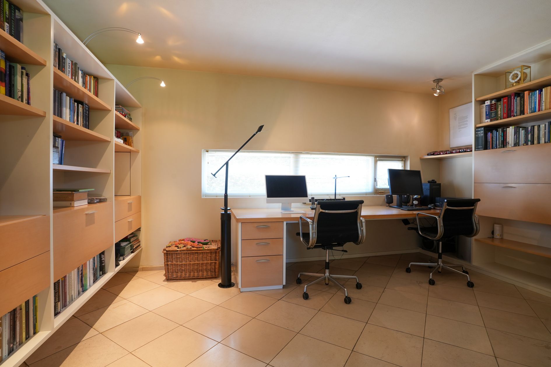 Open werkkamer: deze is voorzien van een lang bureaublad en custom-made kastenwanden.
