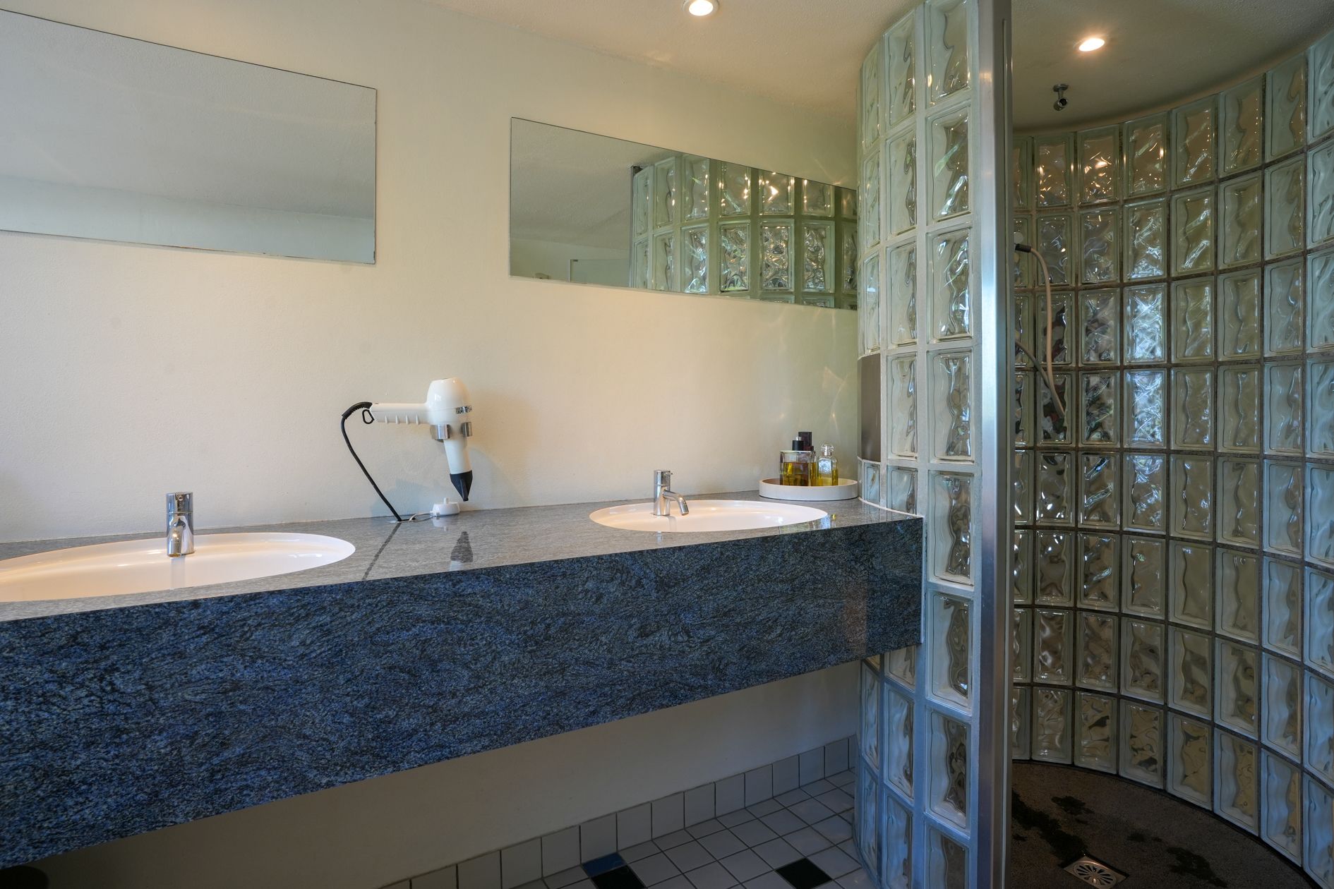 De twee slaapkamers aan de achterzijde van de woning hebben een tweede slaapniveau/zolder en een tweede, separate badkamer. Deze is voorzien van een douche, toilet en wastafel.