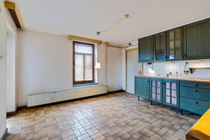 De dichte keuken (ca. 4.00 x 4.05 m) is voorzien van een eenvoudig keukenblok zonder apparatuur, wat u de kans geeft om deze ruimte volledig naar eigen wens in te richten.