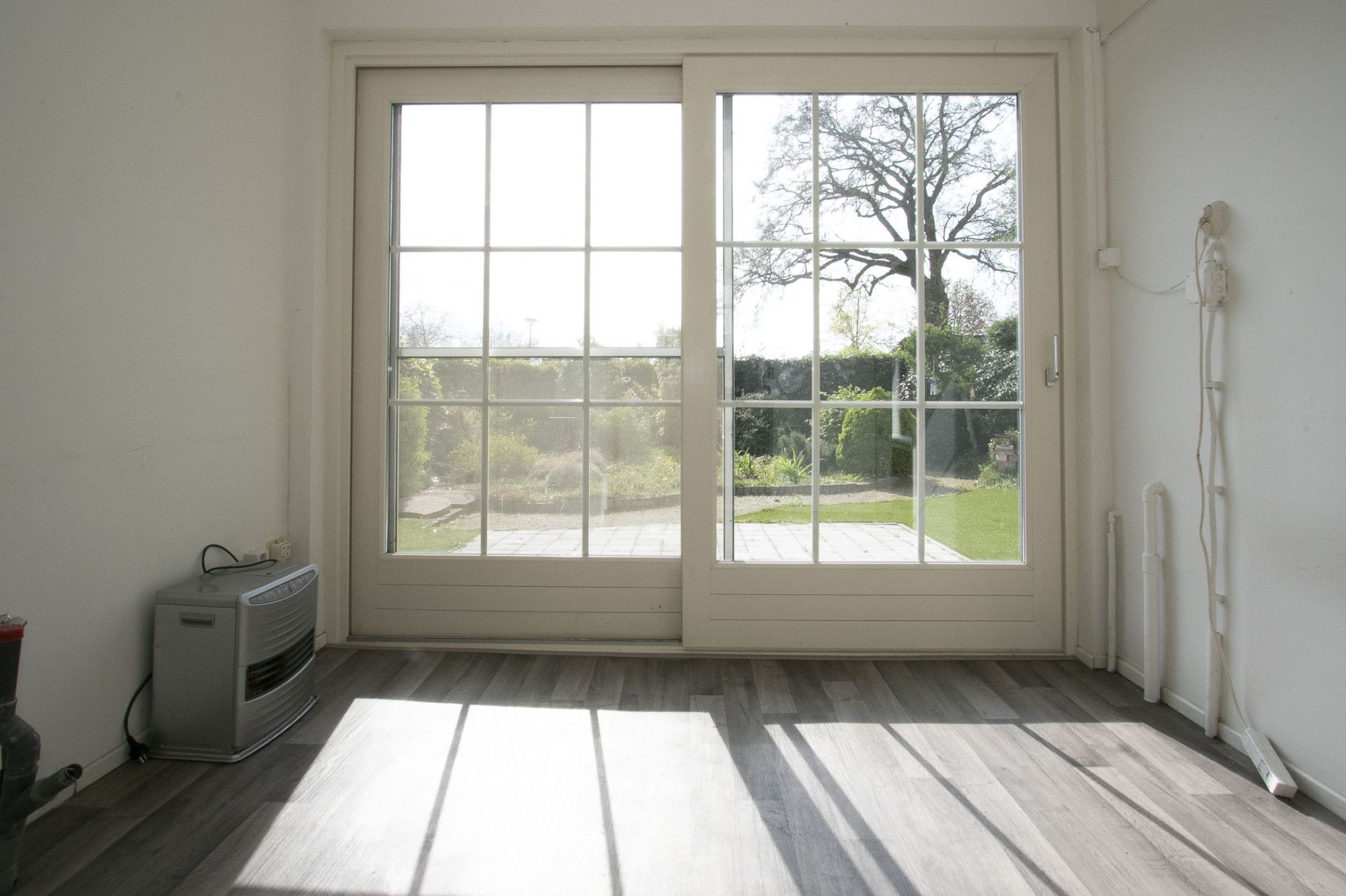 De ruime L-vormige woonkamer heeft fijn lichtinval en directe toegang tot de achtertuin. Ook vind je op de begane grond een extra kamer, ideaal als kantoor of hobbyruimte, met een schuifpui naar buiten.