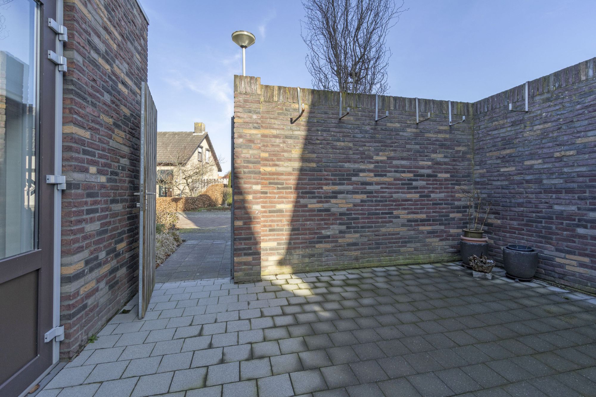 De patio-tuin is onderhoudsvriendelijk beklinkerd en biedt een fijne plek om te ontspannen zonder veel onderhoud. Aan de voorzijde bevindt zich de carport met elektrische roldeur. Deze leidt ook naar de voorzijde gelegen oprit. Via de achterzijde van de woning is de tuin ook te betreden, door een praktische achterom. De rustige ligging in de dorpskern maakt dit een aantrekkelijke woonomgeving!