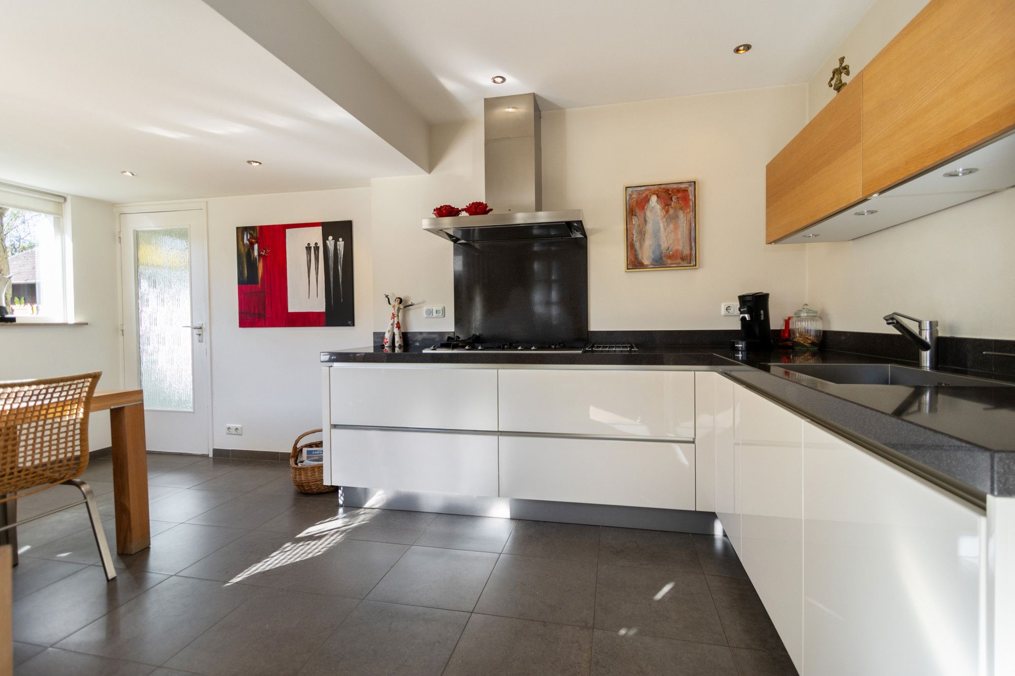 De moderne hoogglans hoekkeuken is uitgerust met diverse Siemens inbouwapparatuur, waaronder een 5-pits gasfornuis met wokbrander, afzuigkap, vaatwasser, combi-oven en koelkast. De keuken biedt voldoende werkruimte en plek voor een extra eethoek.