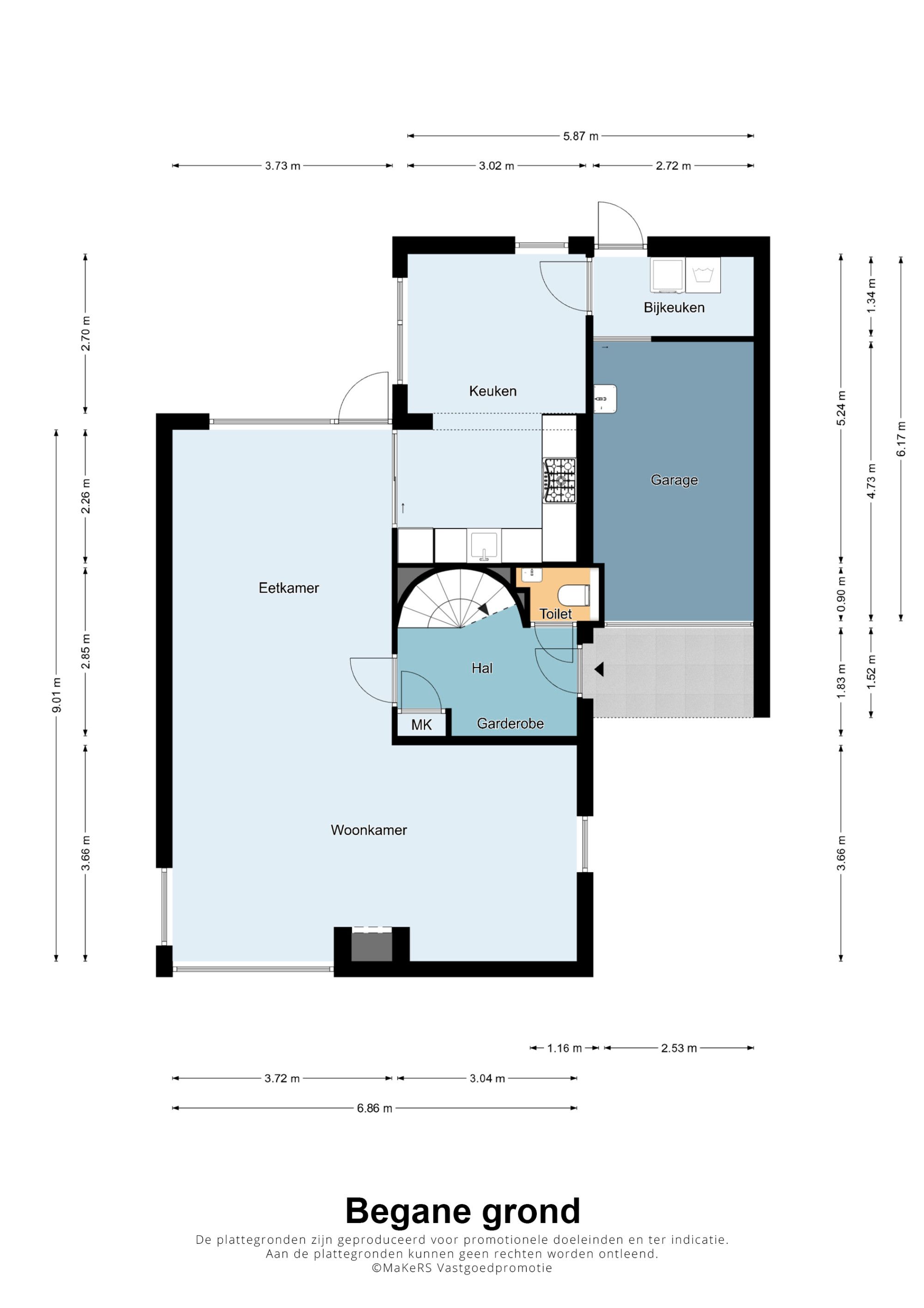 Je betreedt de woning via de hal, die toegang biedt tot de woonkamer, een apart toilet meterkast en houten wenteltrap.