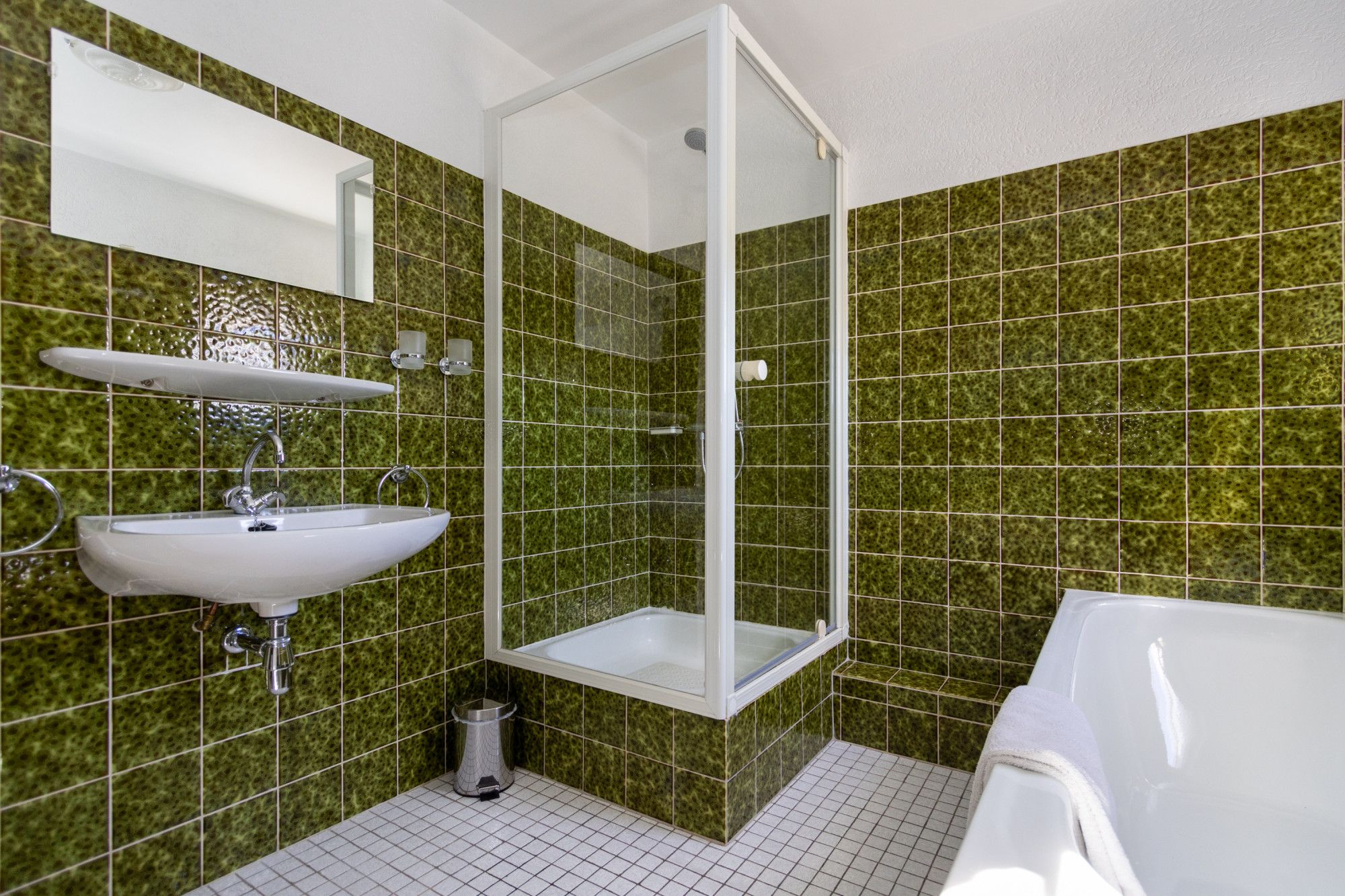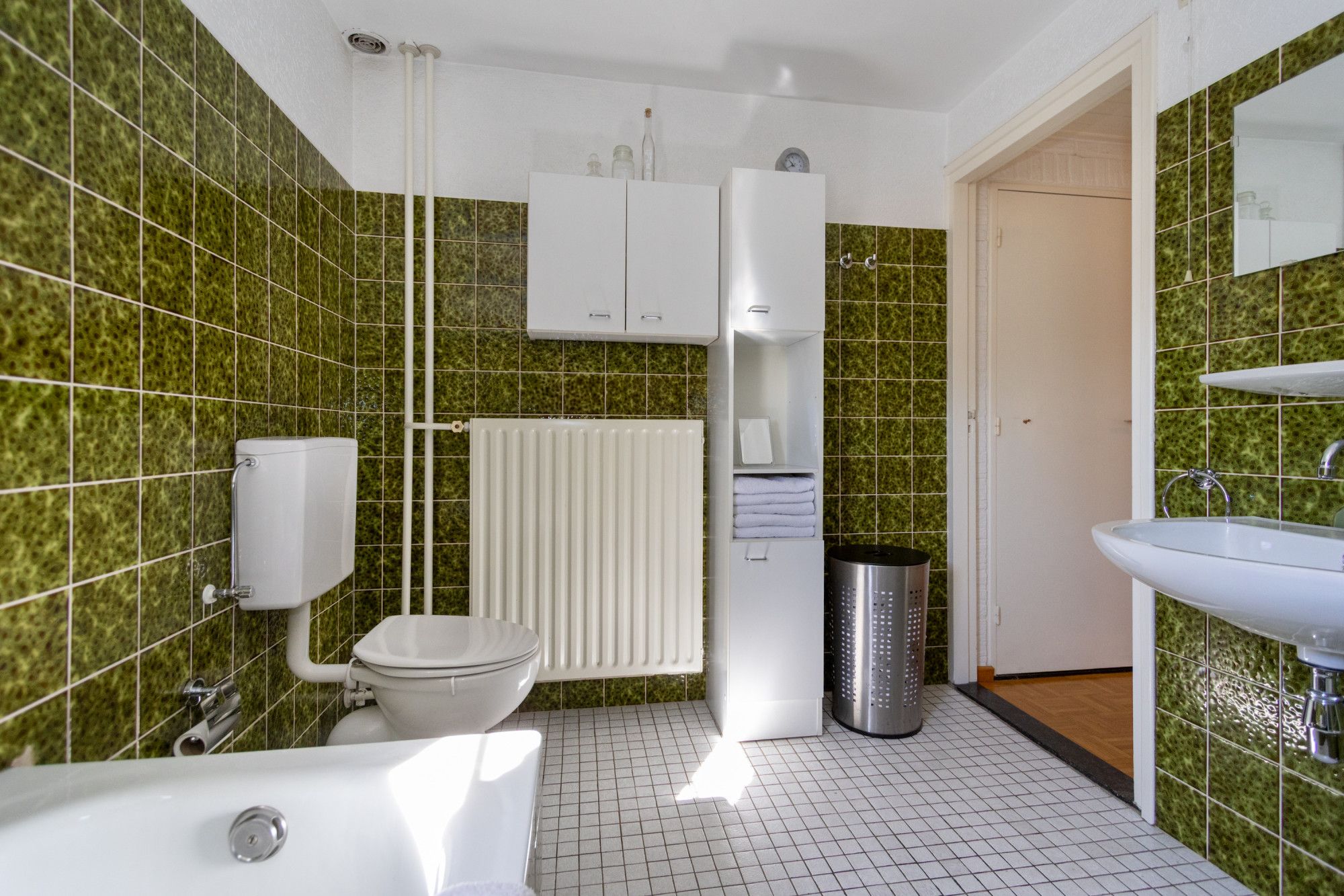De ruim opgezette badkamer is voorzien van de gewenste sanitaire voorzieningen zoals een douche, ligbad, wastafel en toilet.