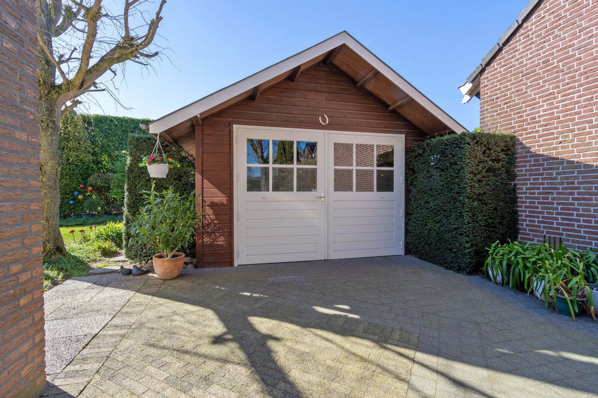 In de tuin staat een groot, degelijk geïsoleerd houten tuinhuis met veel opslagruimte, ideaal voor fietsen, gereedschap of hobby’s. Dit tuinhuis is voorzien van elektra (aparte groep), water en een vliering.