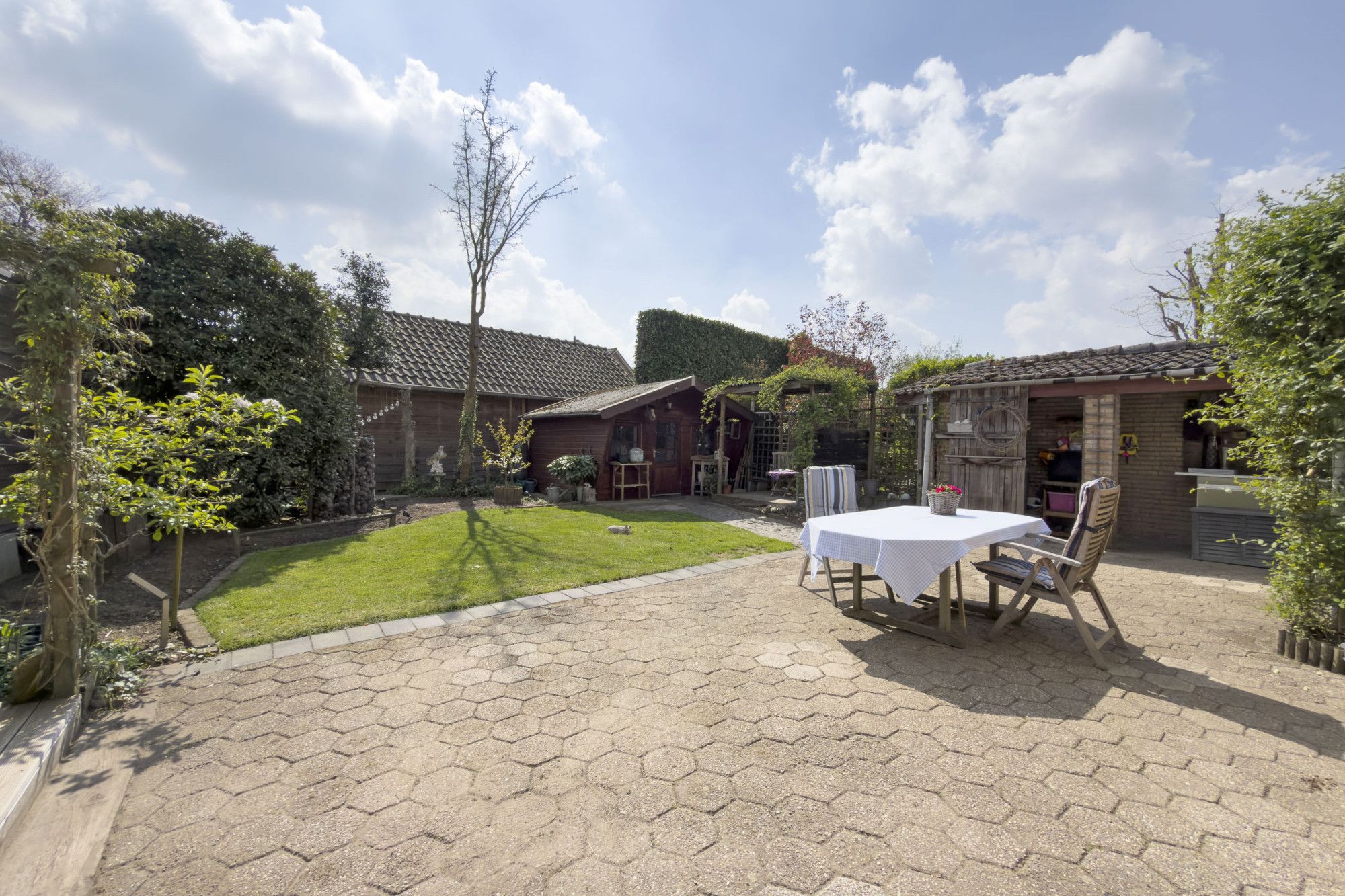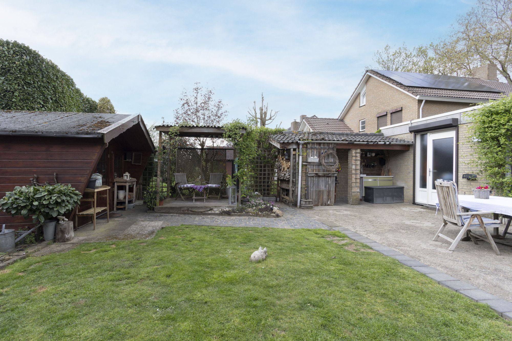 - Zonnige tuin op het zuiden met tuinhuis en achterom