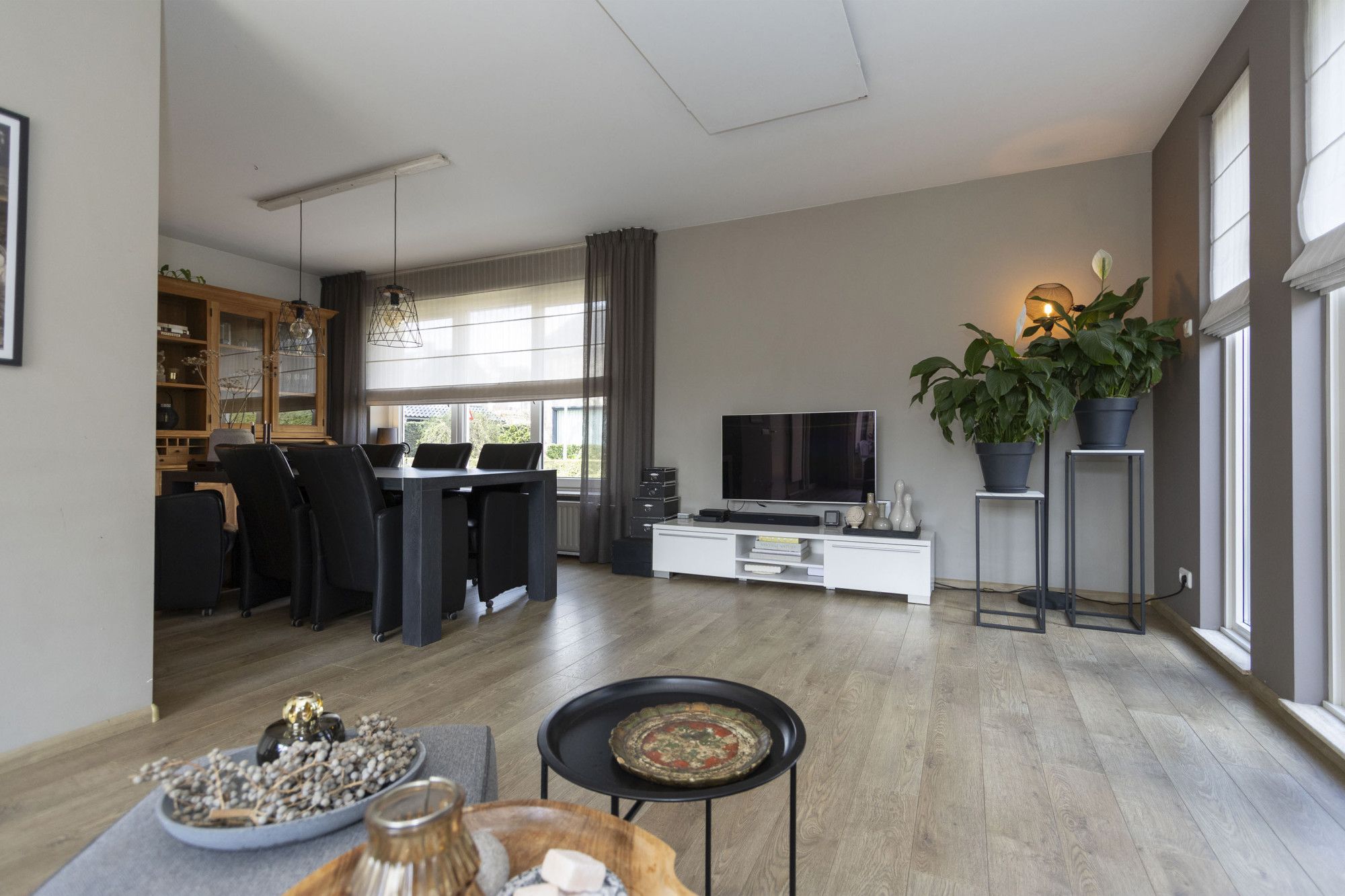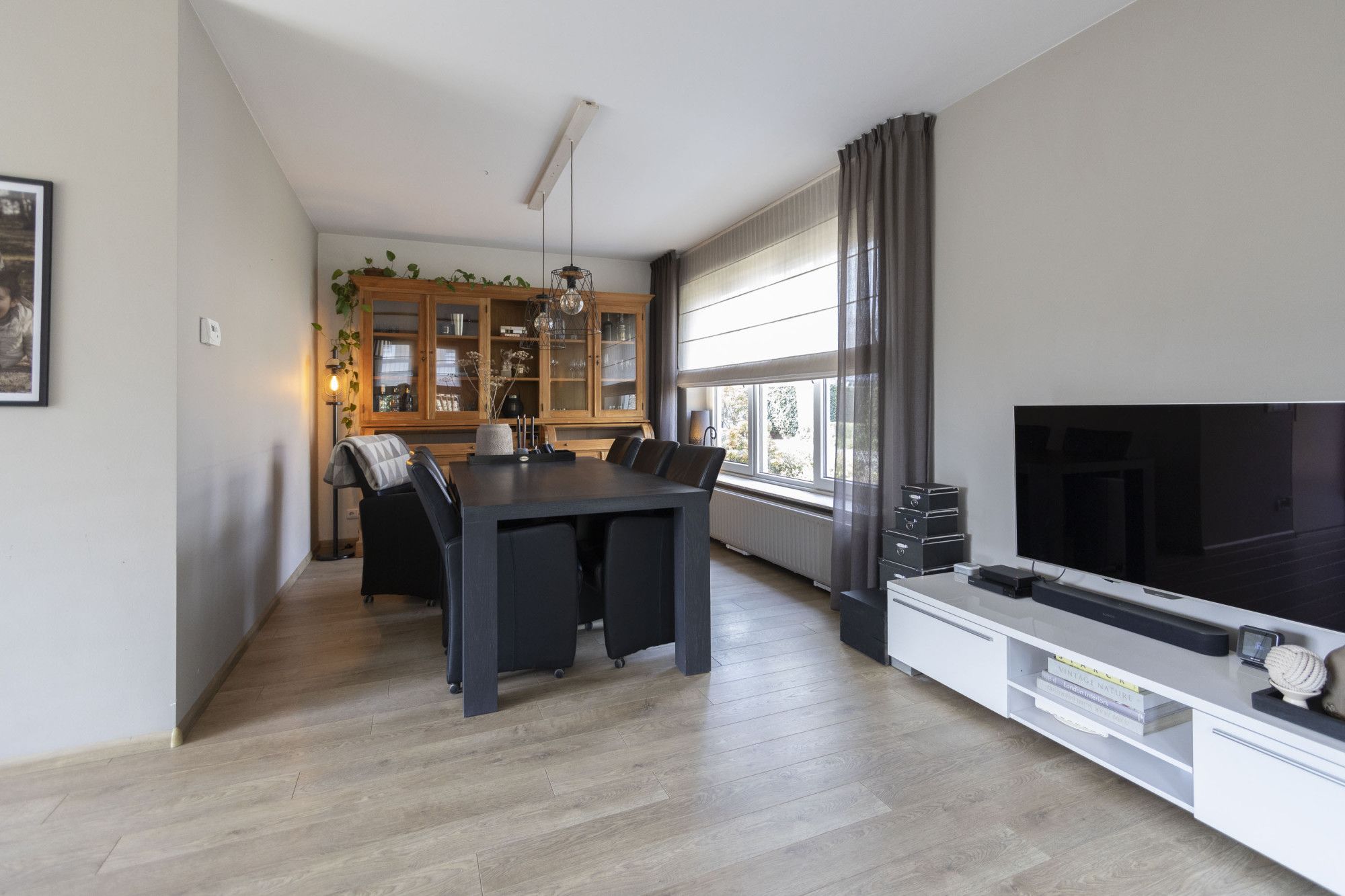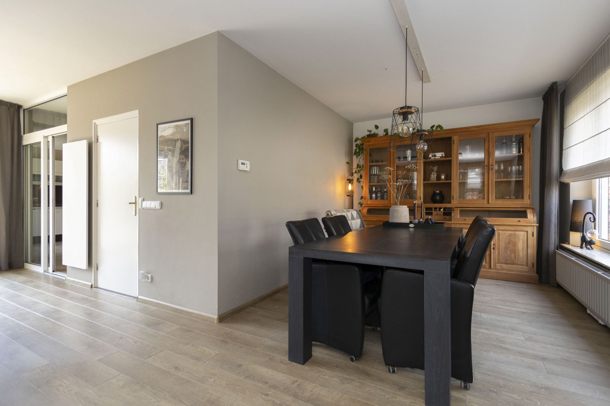 De L?vormige woonkamer is sfeervol en praktisch ingedeeld, met een mooie laminaatvloer en diverse raampartijen voor daglicht. Er is ruimte voor een gezellige zithoek en een royale eethoek. De schuifpui naar de tuin zorgt voor een fijne verbinding met buiten. De woonkamer is uitgerust met een houtkachel, airco (2024) en infraroodpanelen, waardoor je op meerdere manieren comfortabel kunt verwarmen.