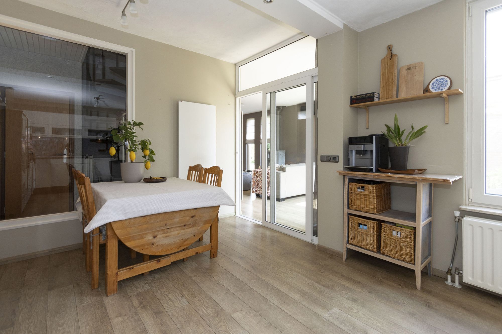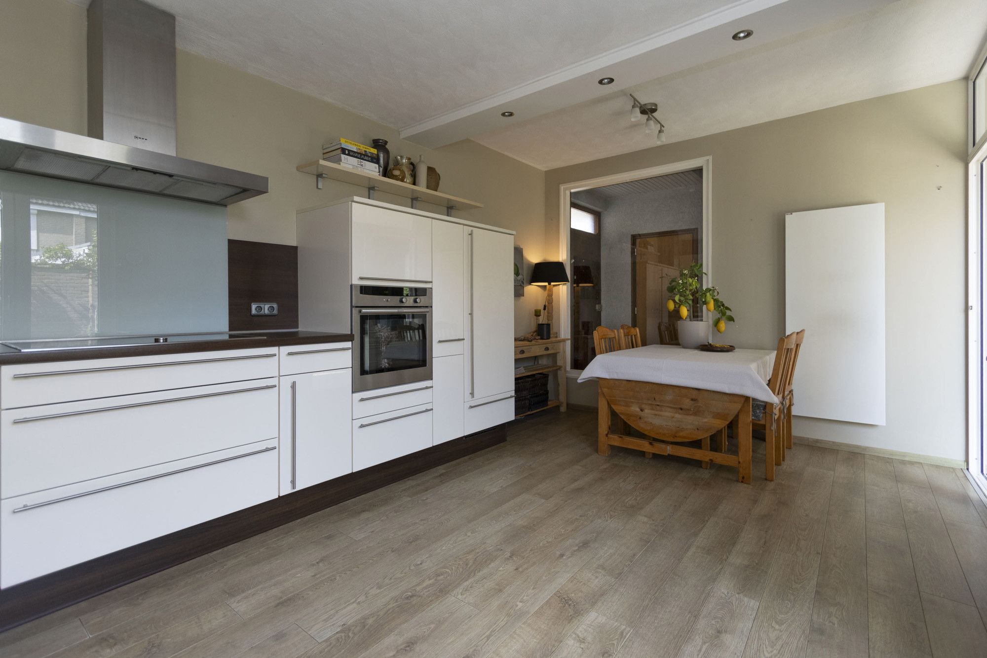 - Bijkeuken met witgoedaansluitingen en toegang tot tuin en garage