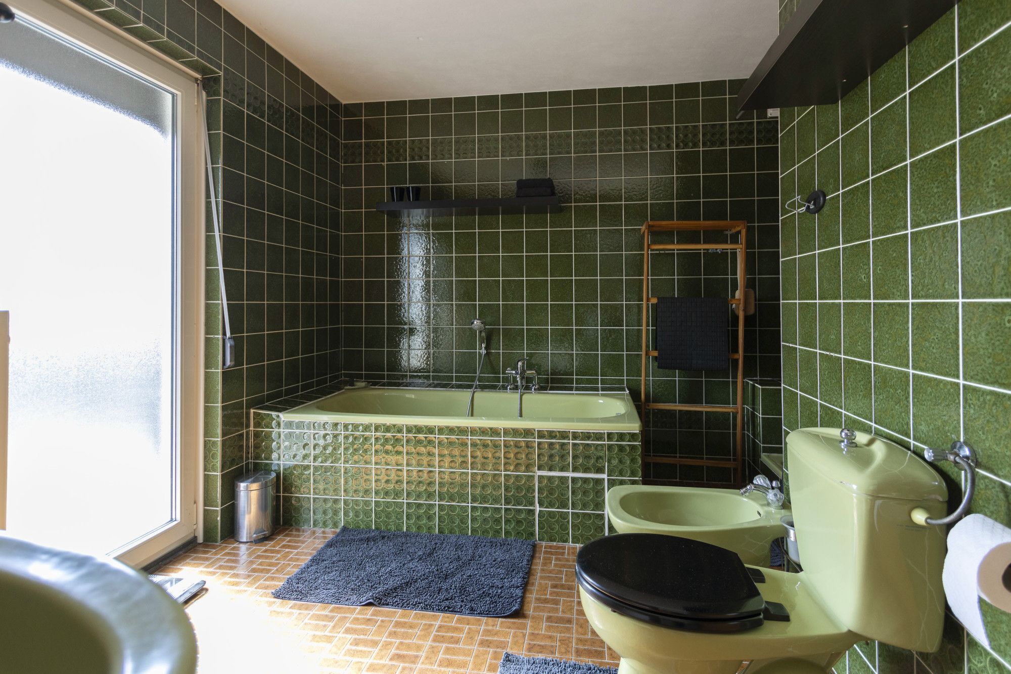- Nette badkamer met douche, ligbad, toilet, bidet en dubbele wastafel