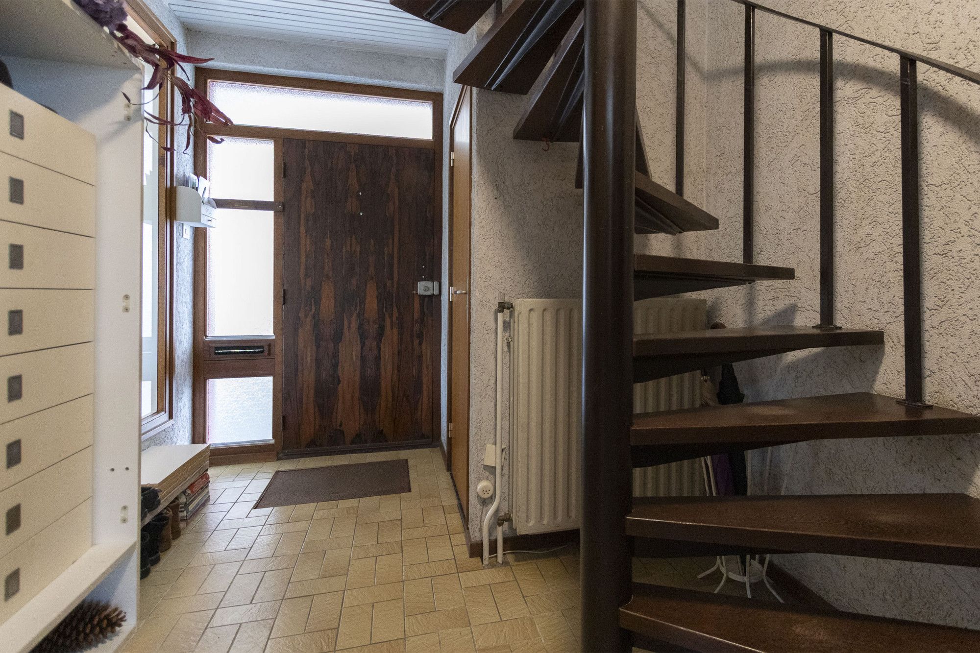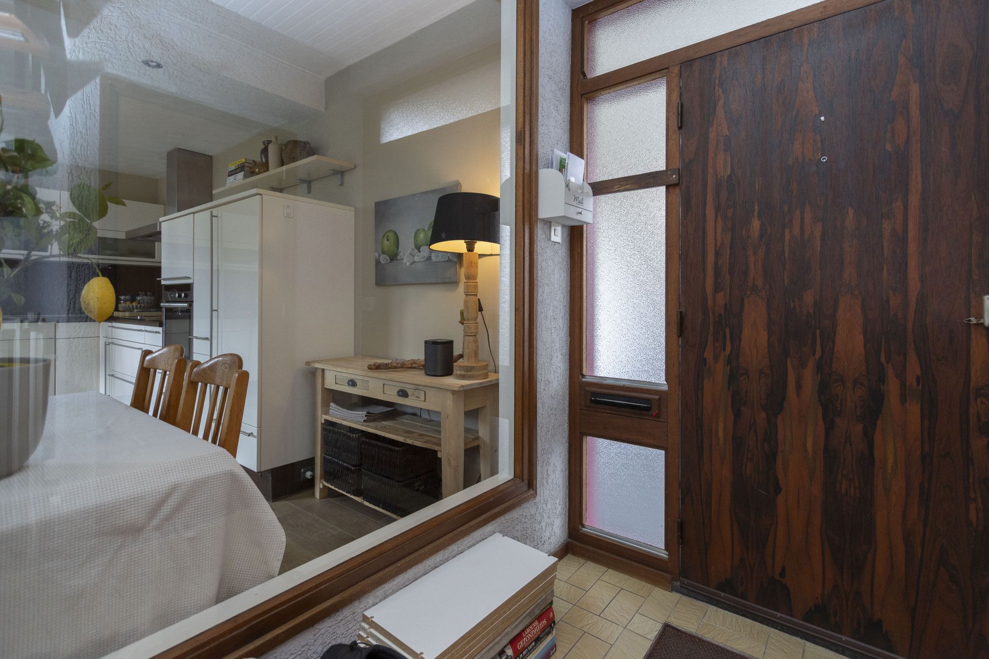 Via de oprit bereik je de entree aan de zijgevel. De ontvangsthal is voorzien van het toilet, de meterkast, de trapopgang en de deur naar de woonkamer. Een leuk detail is het raam in de hal waardoor je zicht hebt op de keuken een speels en uniek element.