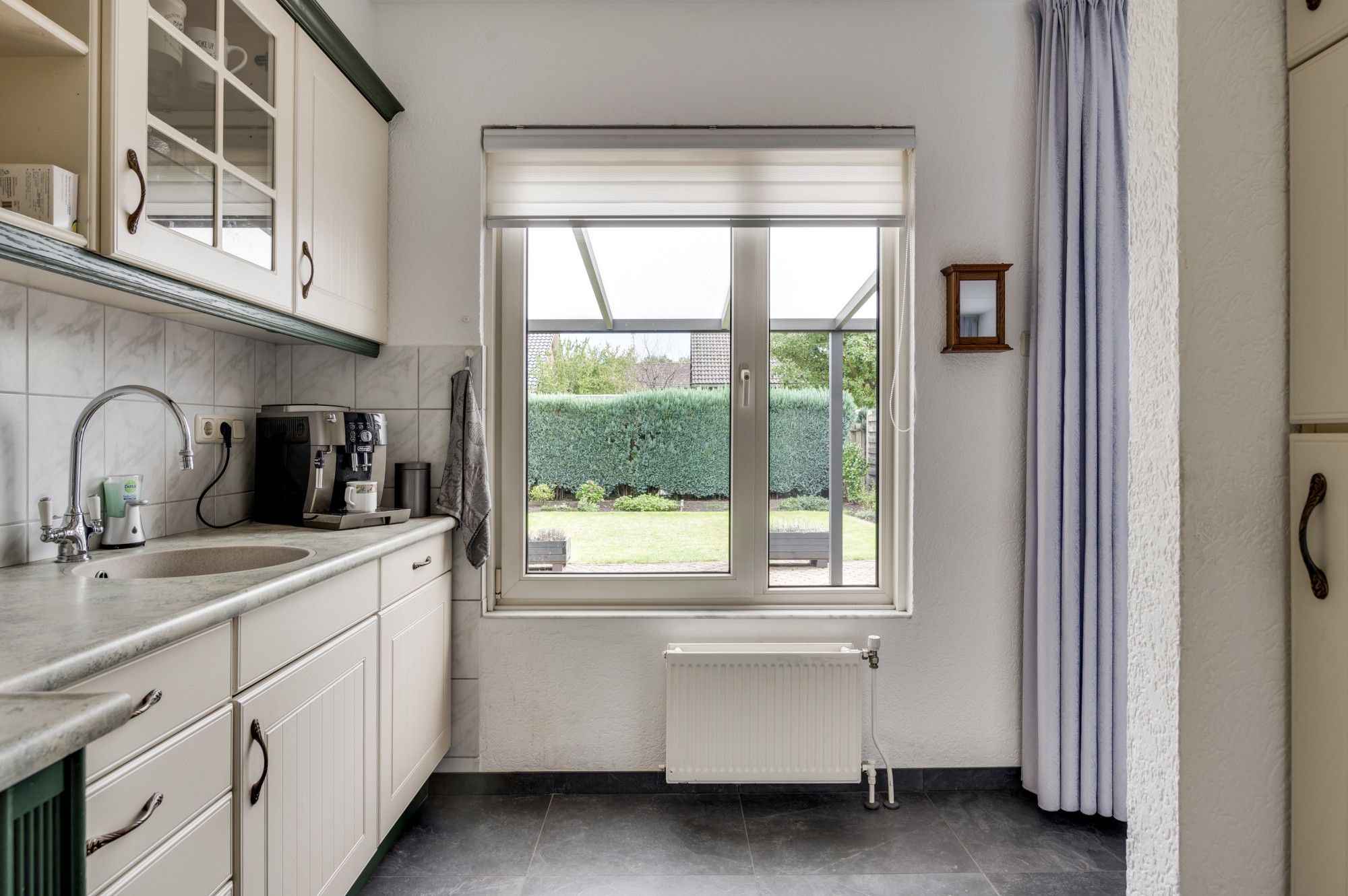 Bij binnenkomst wordt u verwelkomd in een ruime hal met toegang tot de meterkast en een modern afgewerkte toiletruimte voorzien van een zwevend toilet en fonteintje. De royale woonkamer biedt dankzij de grote raampartijen veel natuurlijk lichtinval en is voorzien van een praktische trapkast en airconditioning, waardoor u het hele jaar door geniet van een aangenaam binnenklimaat. Via een loopdeur heeft u direct toegang tot de zonnige achtertuin. De halfopen keuken is gelegen aan de achterzijde van de woning en beschikt over een fraai uitzicht op de tuin. De keuken is uitgerust met diverse inbouwapparatuur zoals een 4-pits gasfornuis, afzuigkap, oven, koelkast en vaatwasser, en biedt voldoende werk- en opbergruimte. De gehele begane grond is voorzien van een moderne, onderhoudsvriendelijke tegelvloer, wat zorgt voor een stijlvolle uitstraling.