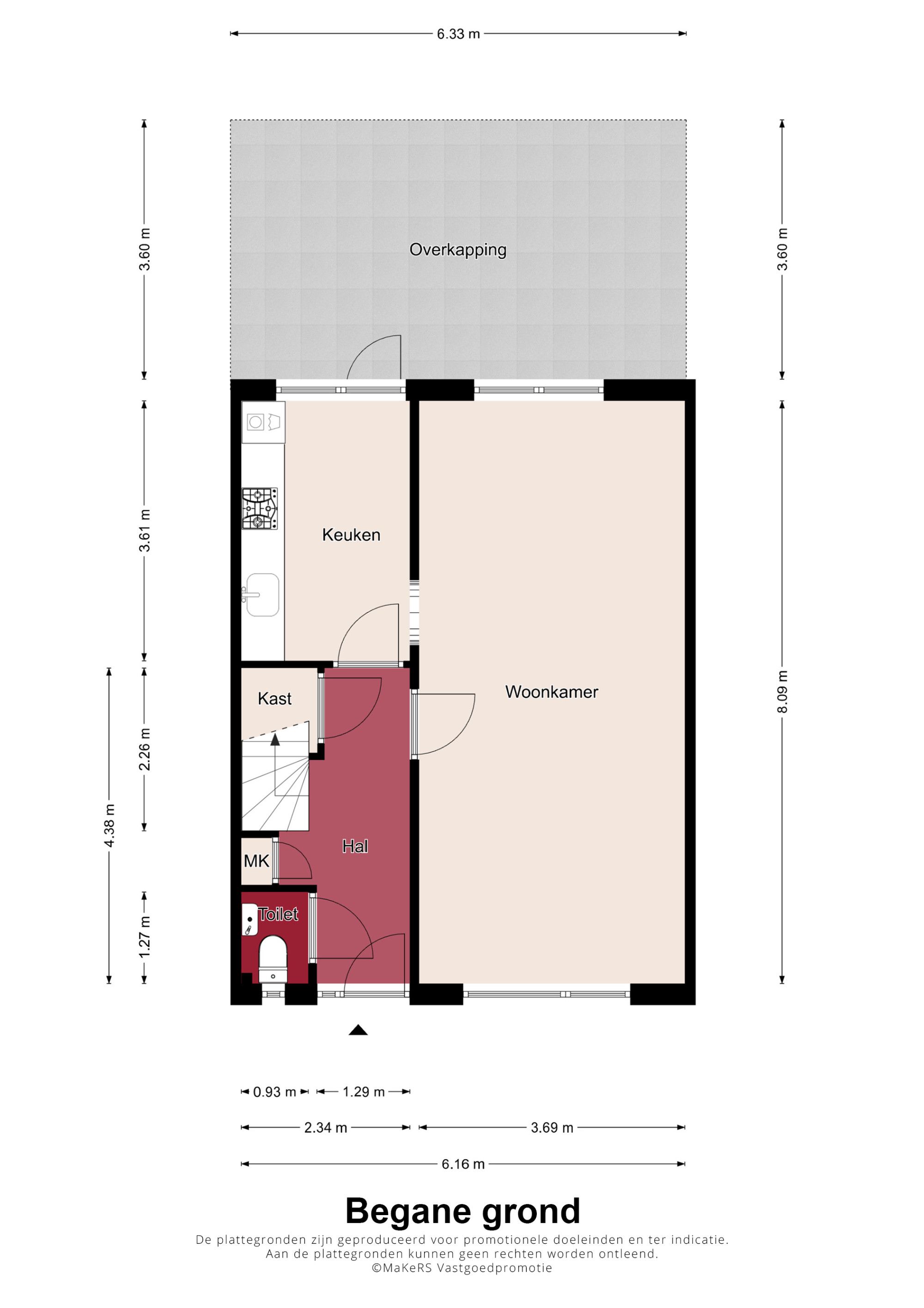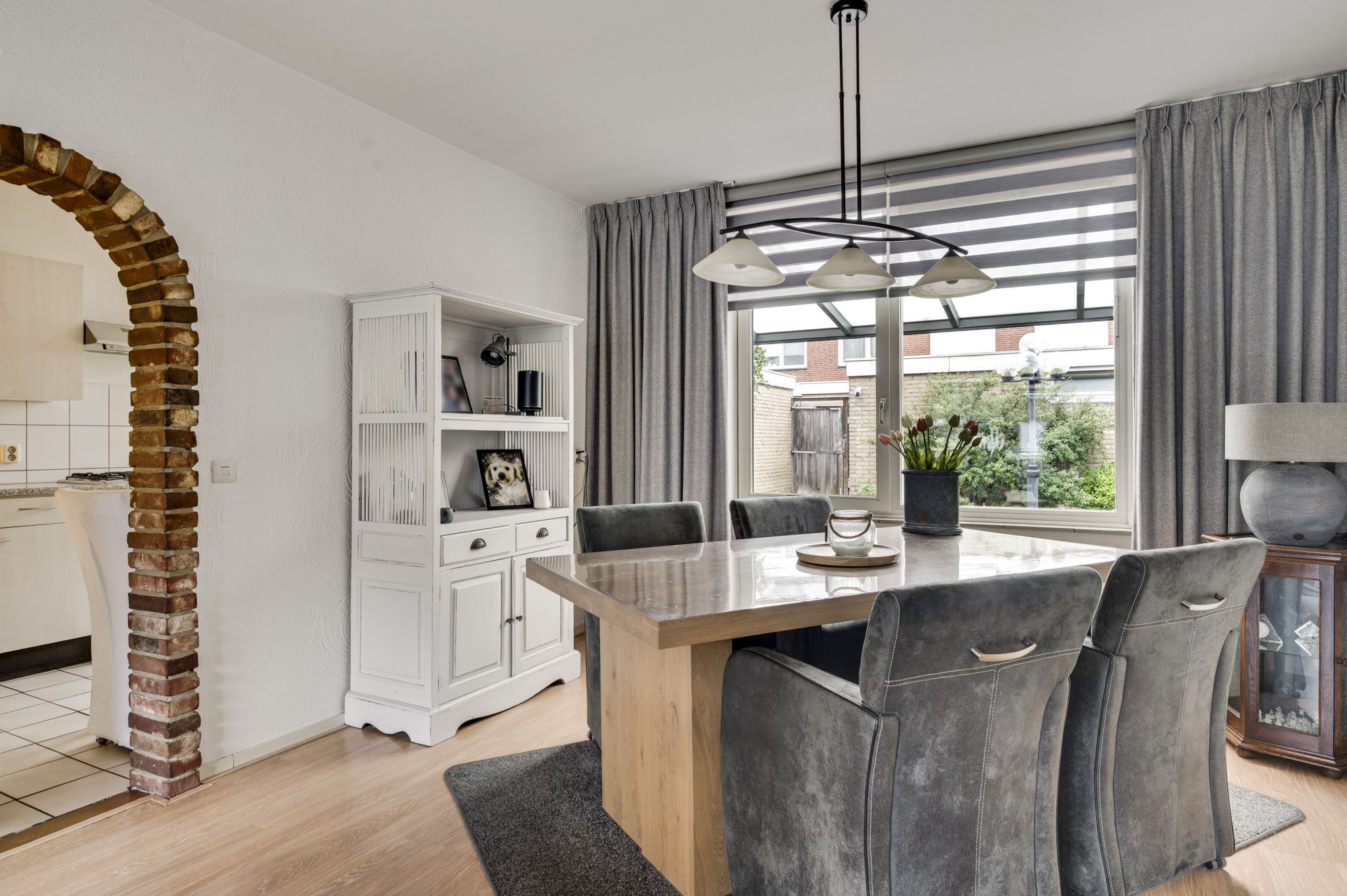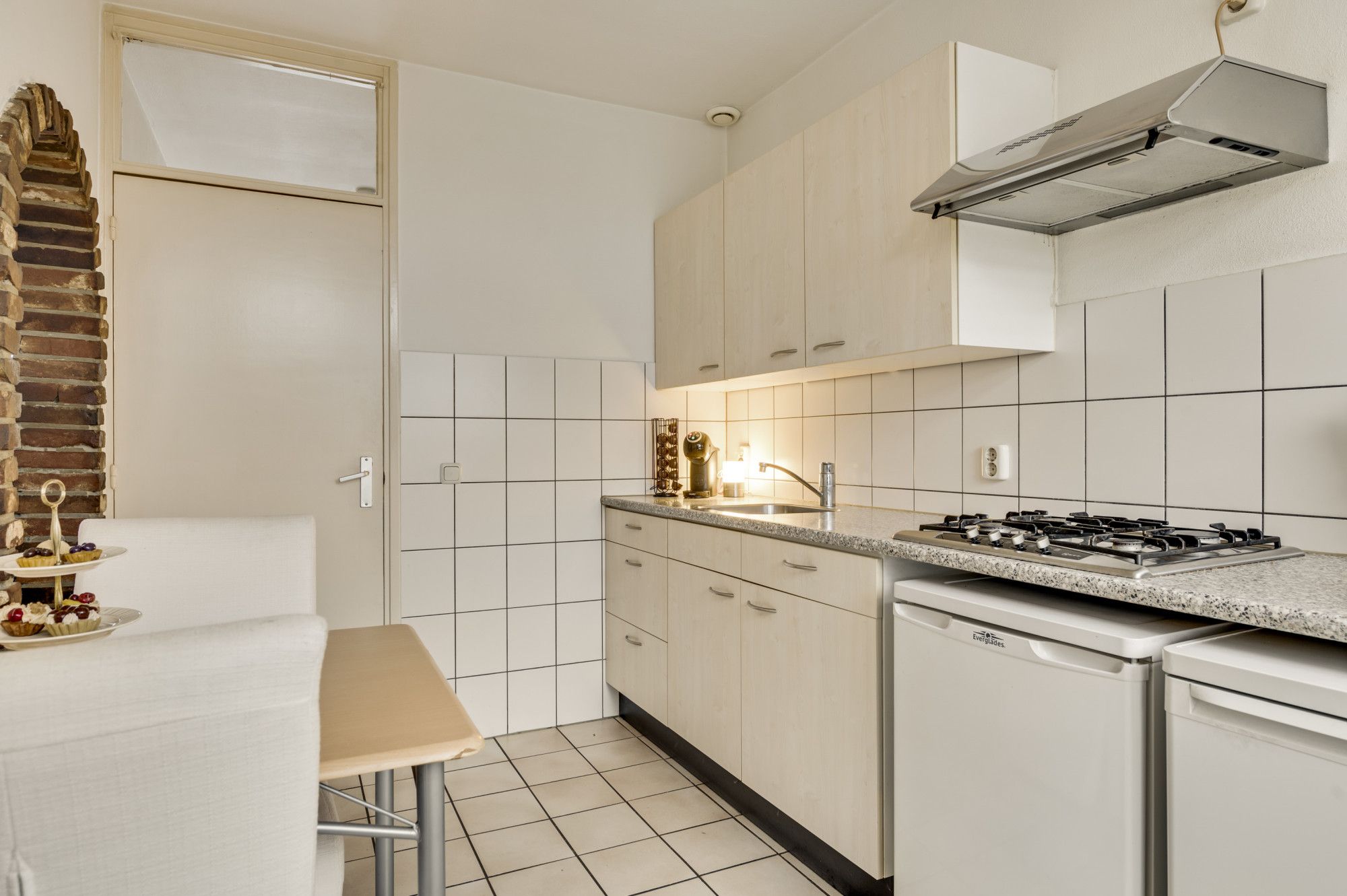 Entree/hal met meterkast, trapopgang naar de eerste verdieping, een praktische trapkast en de toiletruimte met staand toilet en fonteintje met meubel. Vanuit de hal is er toegang tot zowel de woonkamer als de keuken. De lichte woonkamer beschikt over grote raampartijen aan de voor- en achterzijde, wat zorgt voor een prettige lichtinval. Via een open doorgang staat de woonkamer in verbinding met de keuken. De keuken is voorzien van een eenvoudige opstelling met een gasfornuis en afzuigkap. Tevens bevinden zich hier de witgoedaansluitingen, waardoor er ruimte is voor het plaatsen van een vaatwasser. Vanuit de keuken biedt een loopdeur toegang tot de achtertuin.