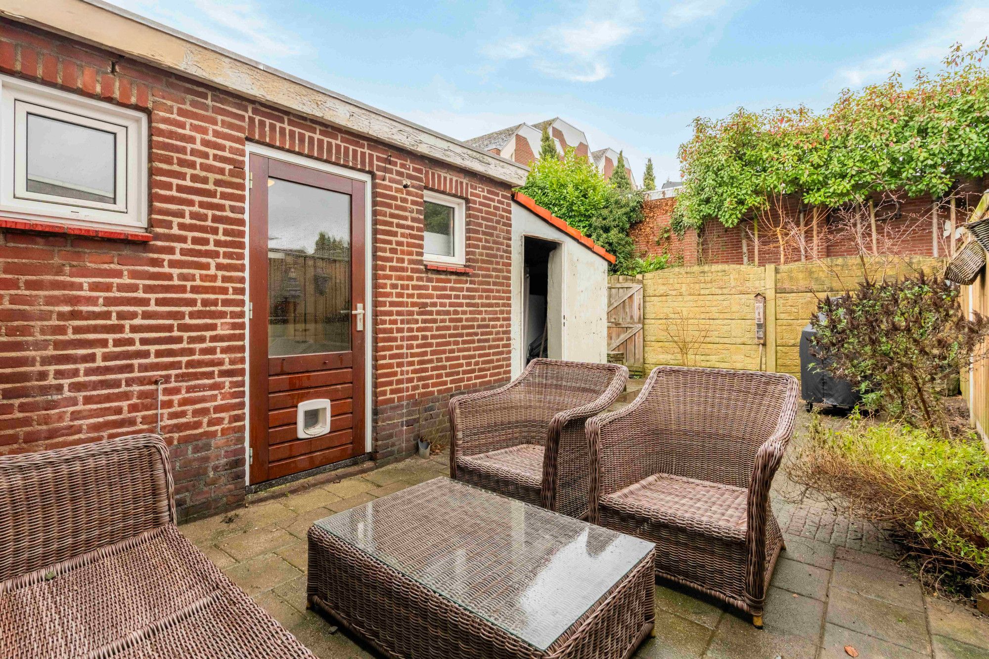 De onderhoudsvriendelijke achtertuin is grotendeels bestraat en gelegen op het zuidoosten. Achter in de tuin bevindt zich een aangebouwde stenen berging (ca. 5 m²). De tuin is bereikbaar via een vrije achterom.
