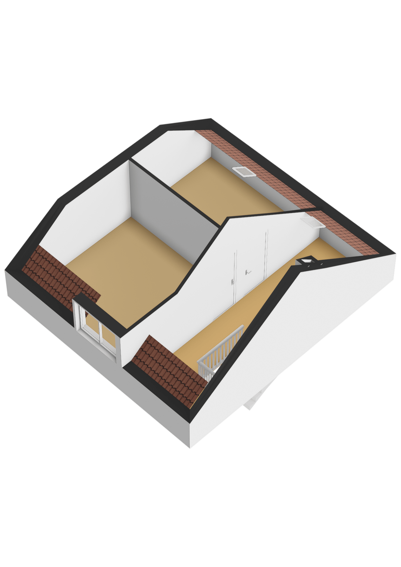 Overloop met c.v. opstelling (eigendom), 2 slaapkamers (ca. 12,5m2 en 7m2) waarvan 1 met dakkapel.