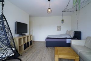 Royale woonkamer met open keuken met een totale oppervlakte van 45m2. Vanuit de woonkamer is de tuin bereikbaar middels een schuifpui. Vanuit de keuken biedt een loopdeur toegang naar de tuin. Woonkamer met pellet kachel.