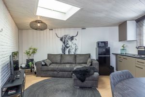 - woonkamer 15m² met open keuken voorzien van kookplaat, oven en afzuigkap en voorzien van airco