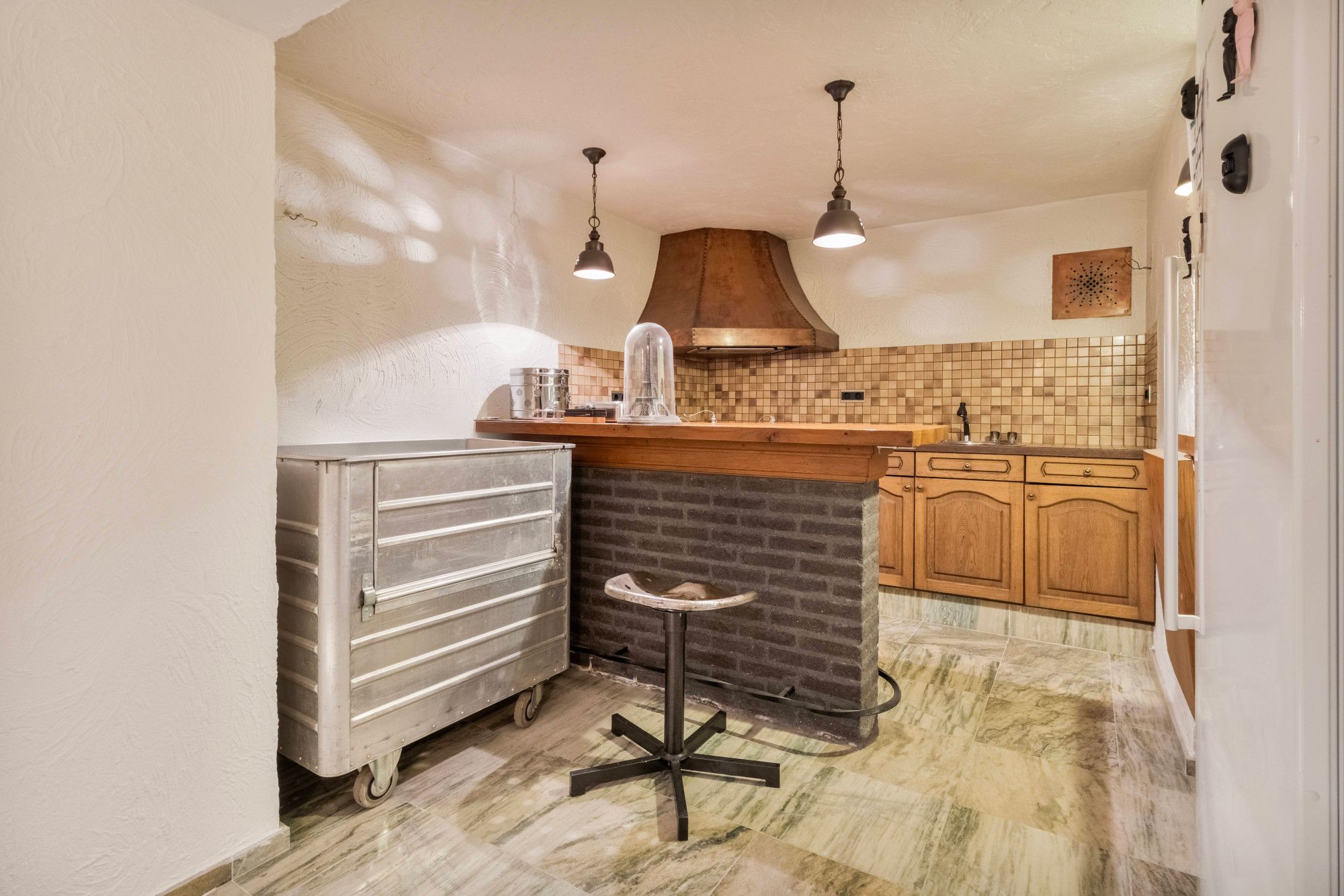 De verwarmde kelder (37m2) vormt een sfeervolle en verrassend aangename aanvulling op het woonprogramma. Deze ruimte is uitermate geschikt voor informeel gebruik, zoals een lounge, hobbyruimte of thuisbar, en is voorzien van een keukenblok en baropstelling. Daarnaast beschikt de kelder over een separate wijnkelder en diverse vaste kasten, wat deze verdieping zowel functioneel als comfortabel maakt.
