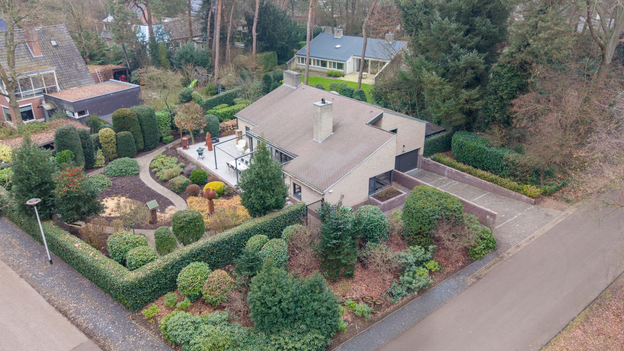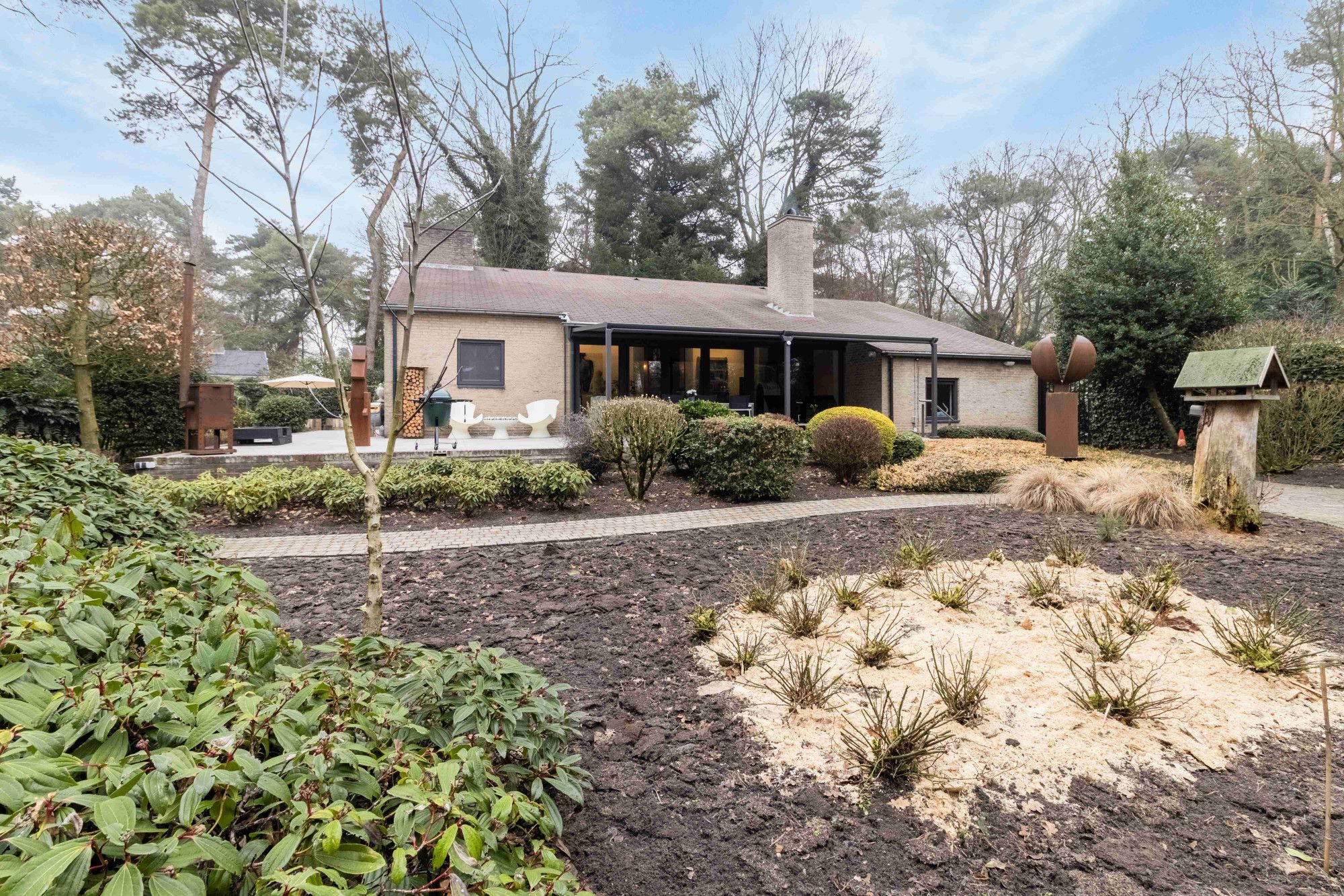 De tuin biedt veel privacy en sluit naadloos aan bij het groene en bosrijke karakter van de wijk.