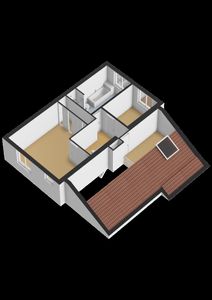 2de verdieping: te bereiken via een vaste trap. Op dit moment grote ruimte met witgoedaansluitingen, maar met mogelijkheid tot 2 slaapkamers.