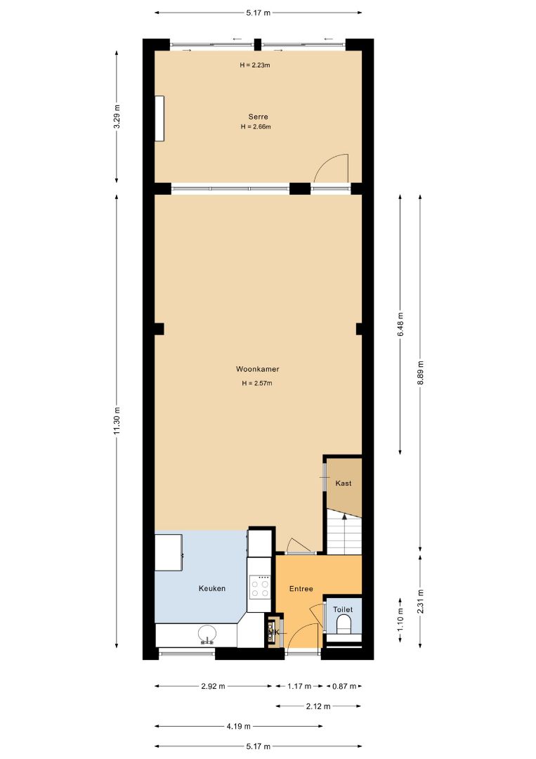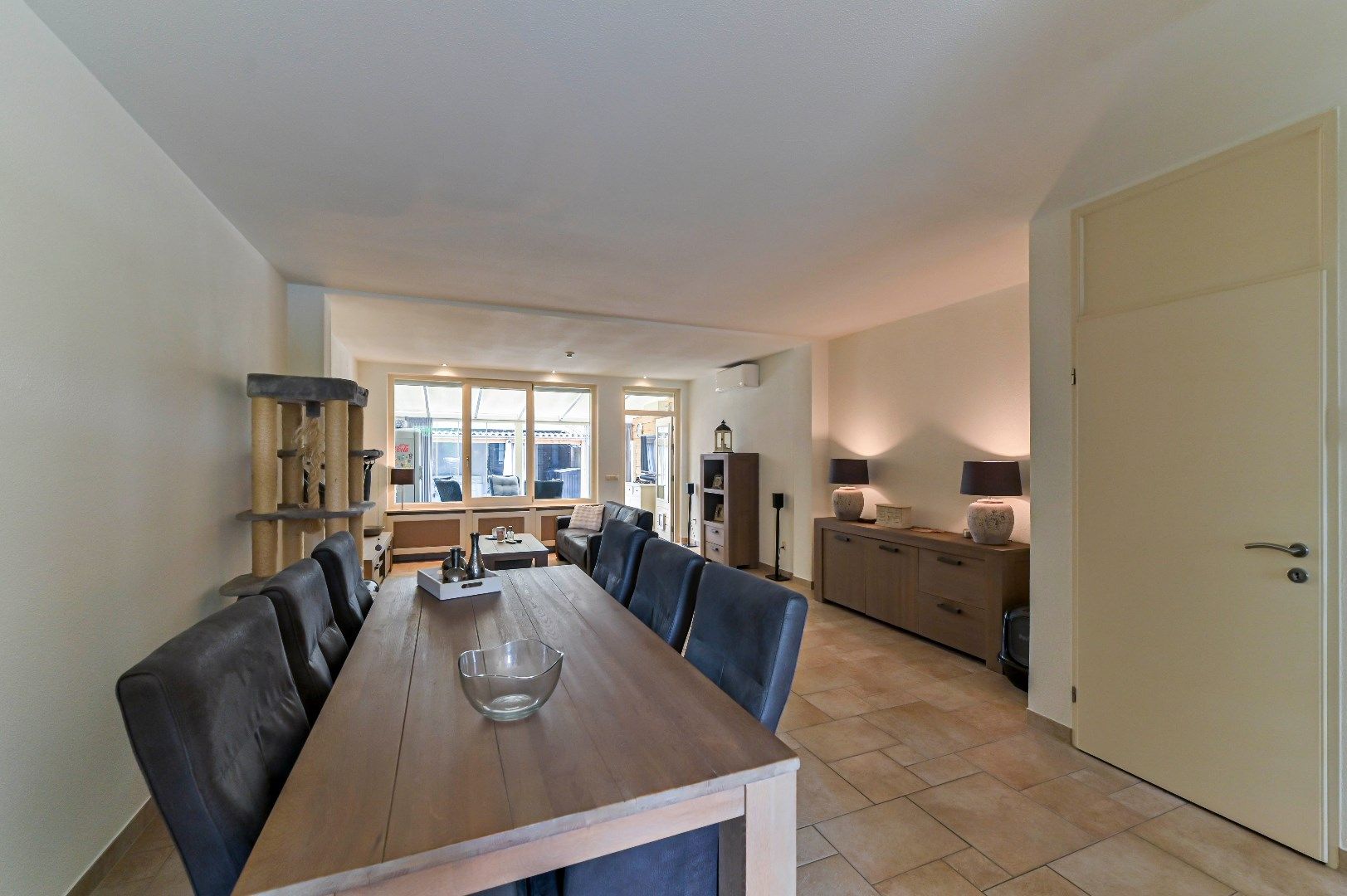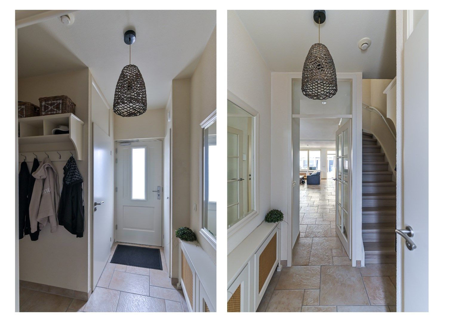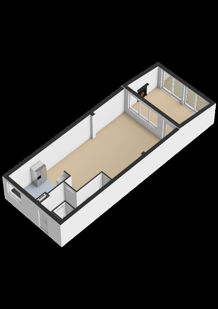 Begane grond: Entree met keramische tegelvloer, garderobe en meterkast. Zwevend toilet (2012). In 2003 uitgebouwde woonkamer met keramische tegelvloer, airconditioning en deur welke toegang biedt tot de serre. De gehele begane grond, met uitzondering van de serre, is voorzien van vloerverwarming. De serre is voorzien van airconditioning. Open keuken (2010) voorzien van granieten aanrechtblad met spoelbak en inbouwapparatuur zoals: koelkast, inductie kookplaat, afzuigkap, combimagnetron en vaatwasser.