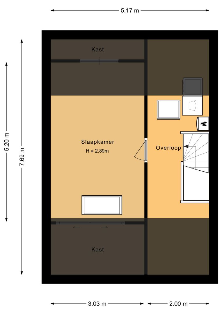 Tweede verdieping: Te bereiken middels vaste trap. slaapkamer met Velux dakraam. Overloop met CV ketel (HR Vaillant uit 2020), witgoedaansluiting en Velux dakraam.