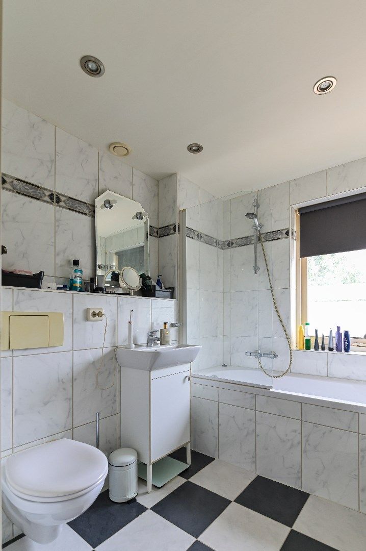 Eerste verdieping: Overloop. Drie slaapkamers alle voorzien van laminaatvloer. Eén slaapkamer beschikt over airconditioning. Badkamer (2012) voorzien van wastafel, ligbad, tweede zwevend toilet en mechanische afzuiging.