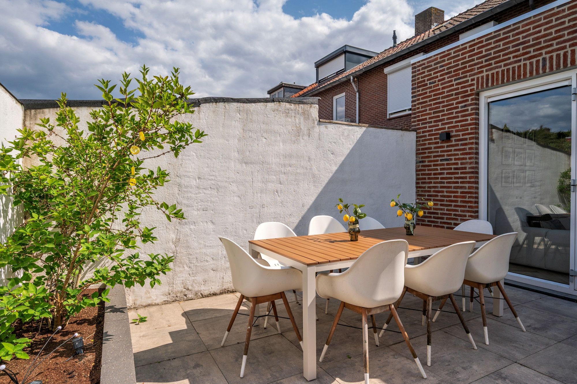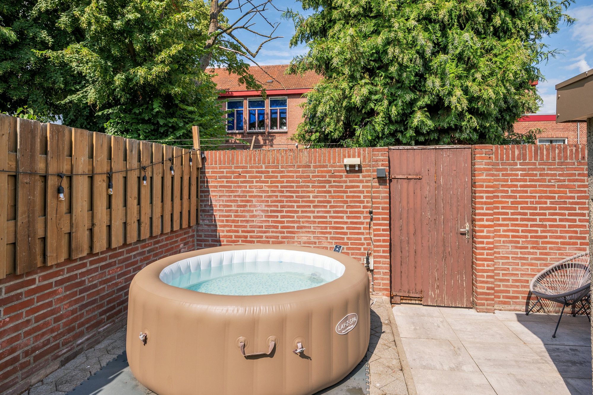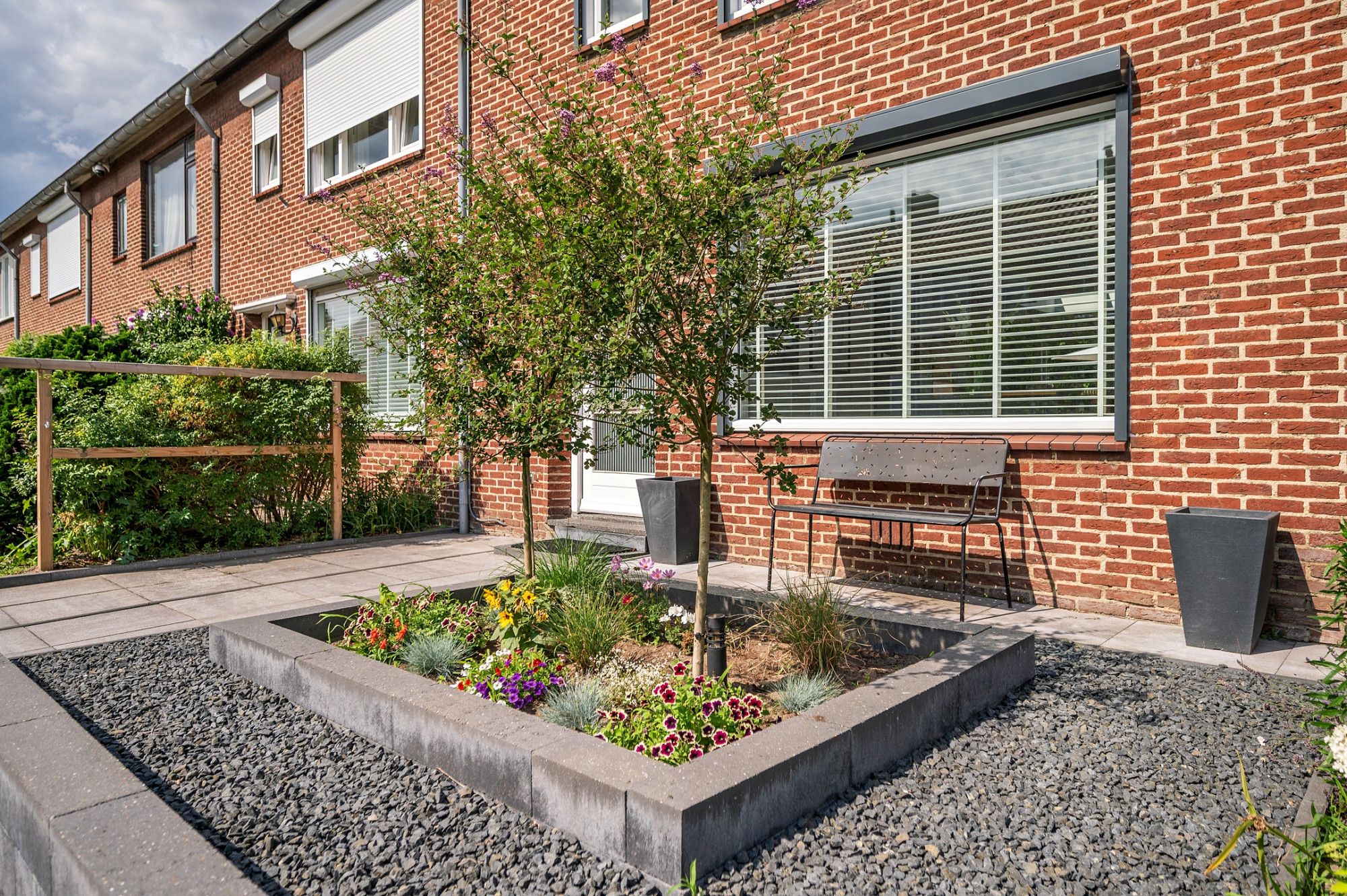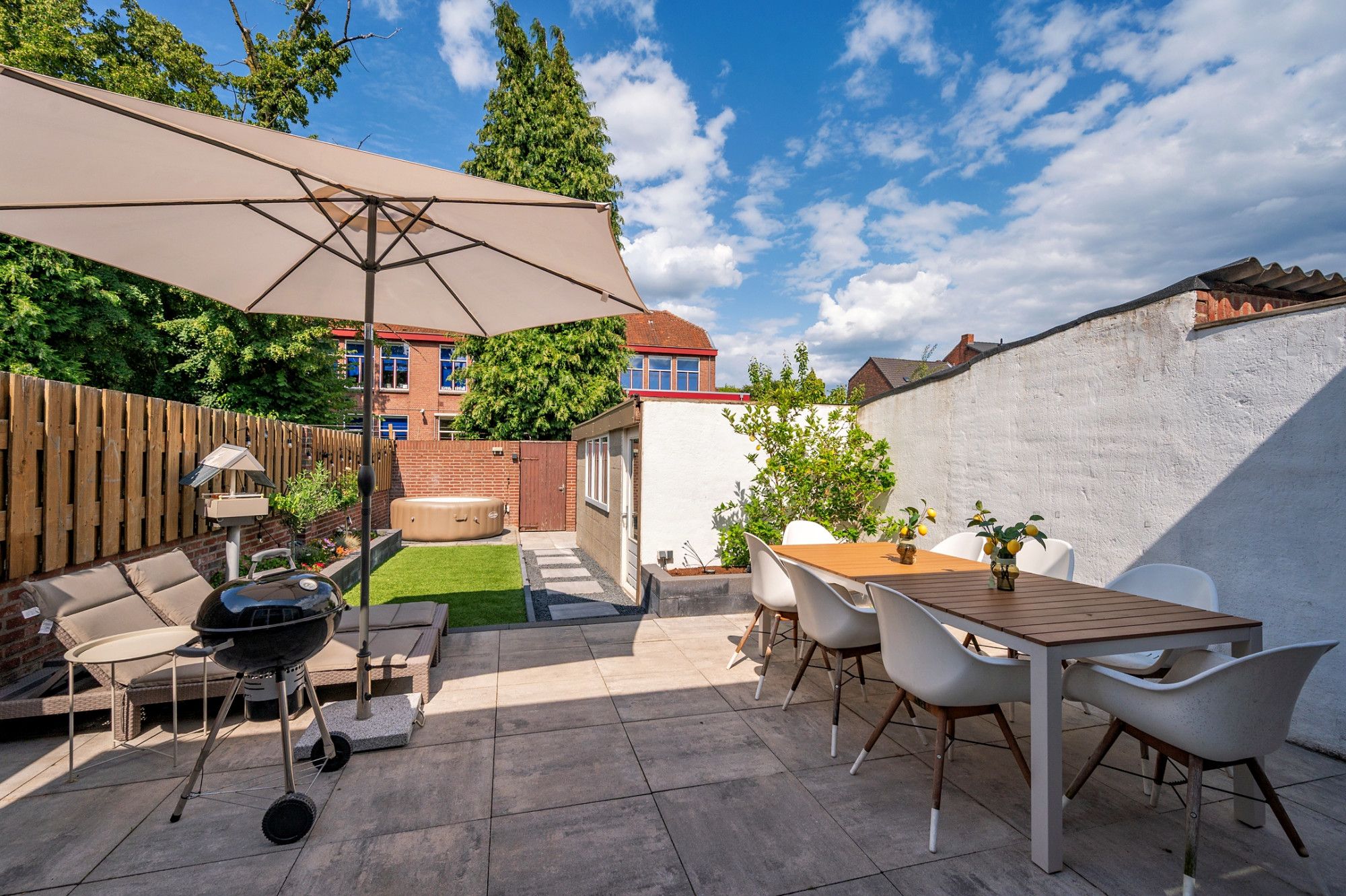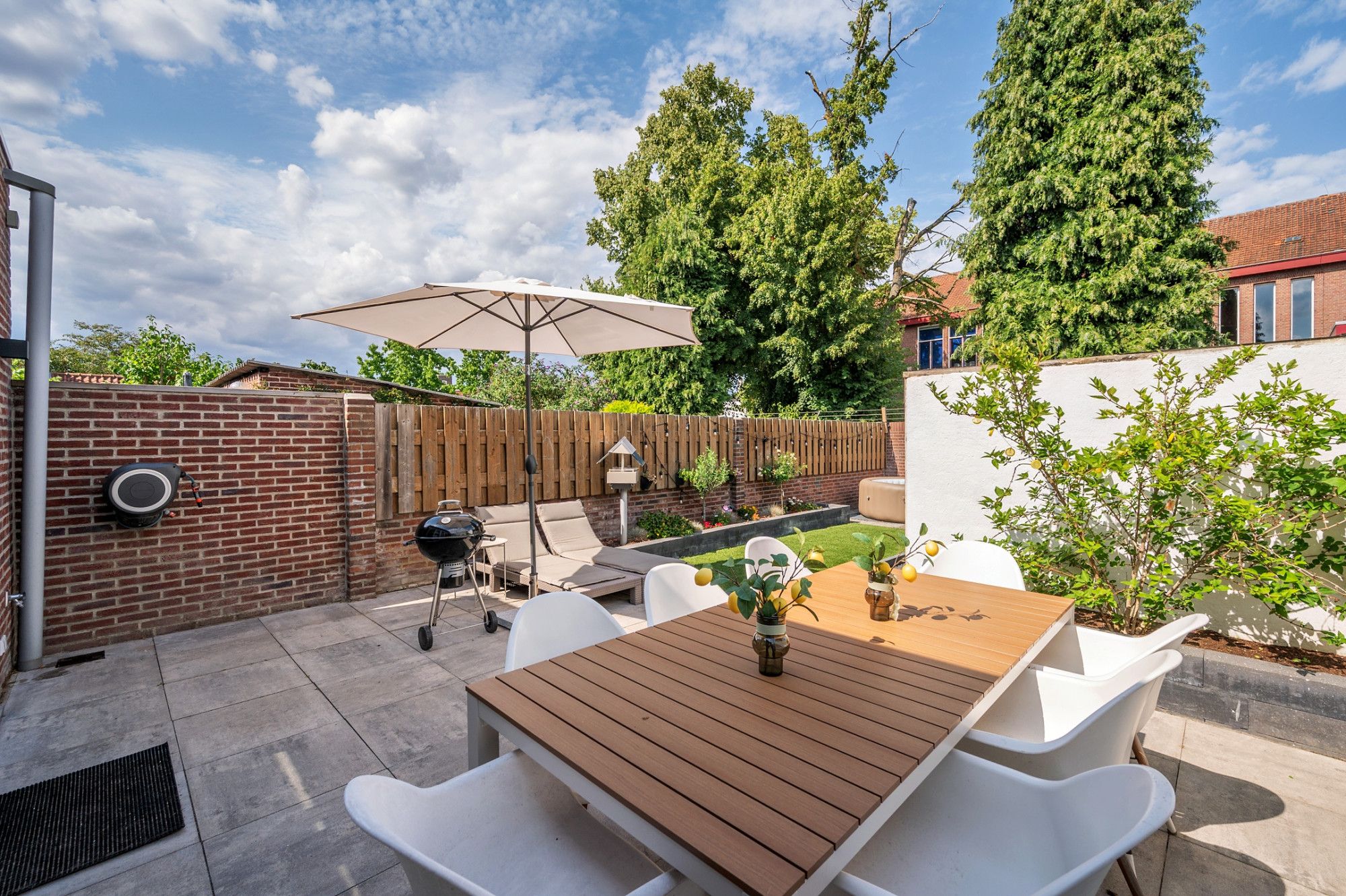De onderhoudsvriendelijke tuin is op het noordoosten gelegen en beschikt over een eigen achterom De achtertuin is voorzien van een groot terras met natuurstenen tegels, aan de achterzijde kunstgras, met beplanting, een stenen berging en een 2e terras.