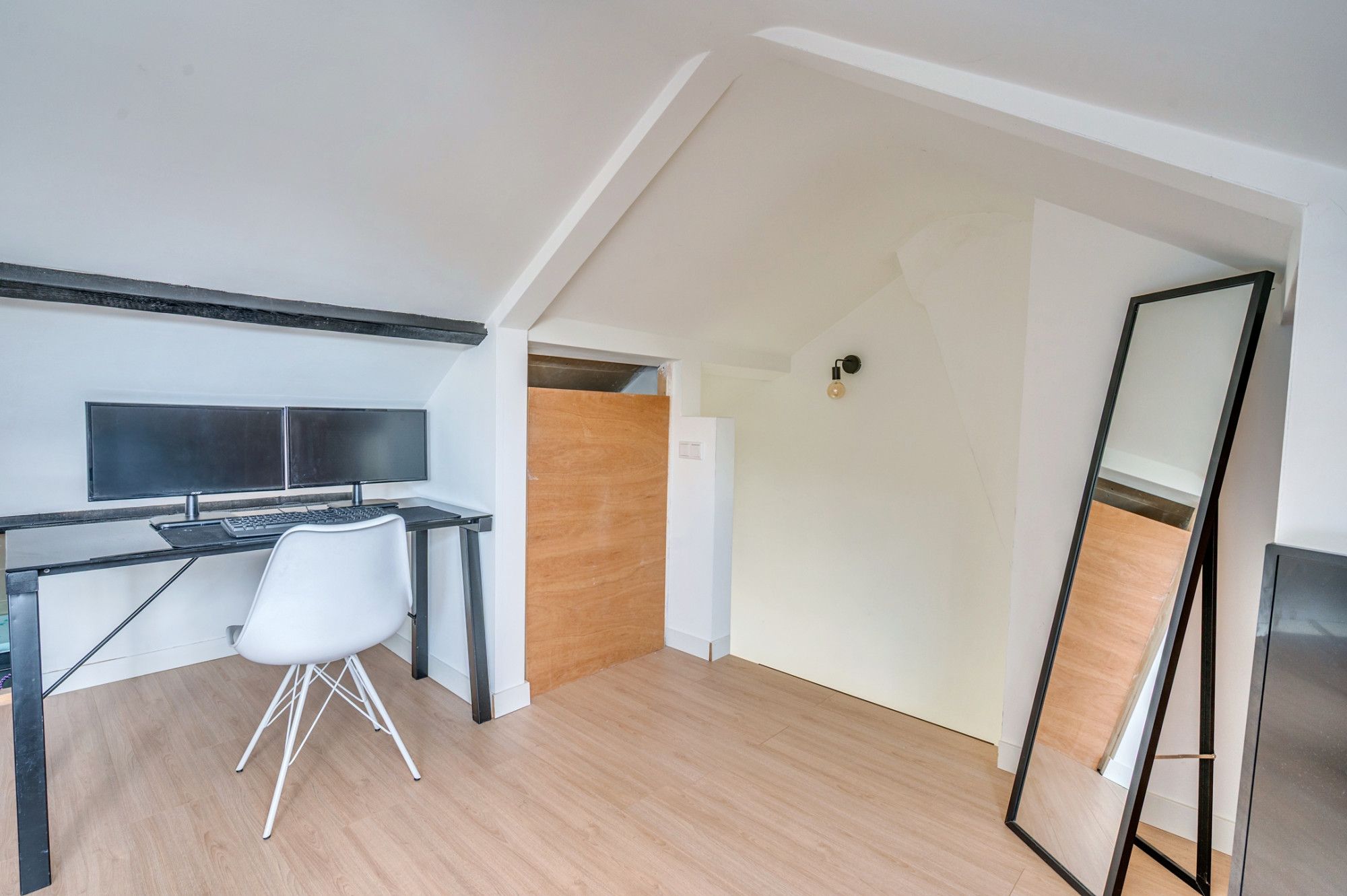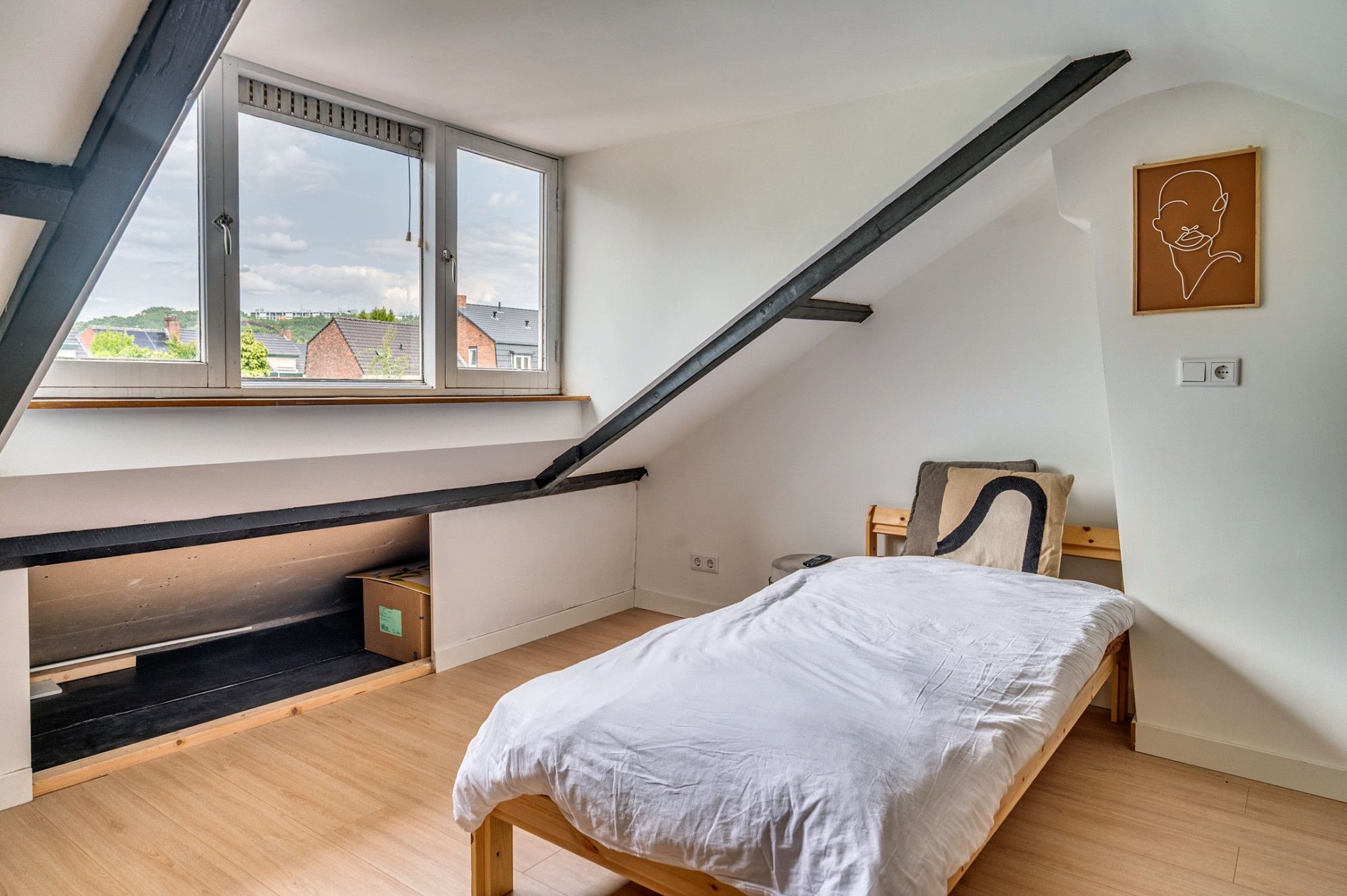 Middels een vaste trap is de 2e verdieping te bereiken. Hier zijn 2 bergruimtes en de 3e slaapkamer aanwezig. De slaapkamer heeft door de gerealiseerde dakkapel een hoge stahoogte.