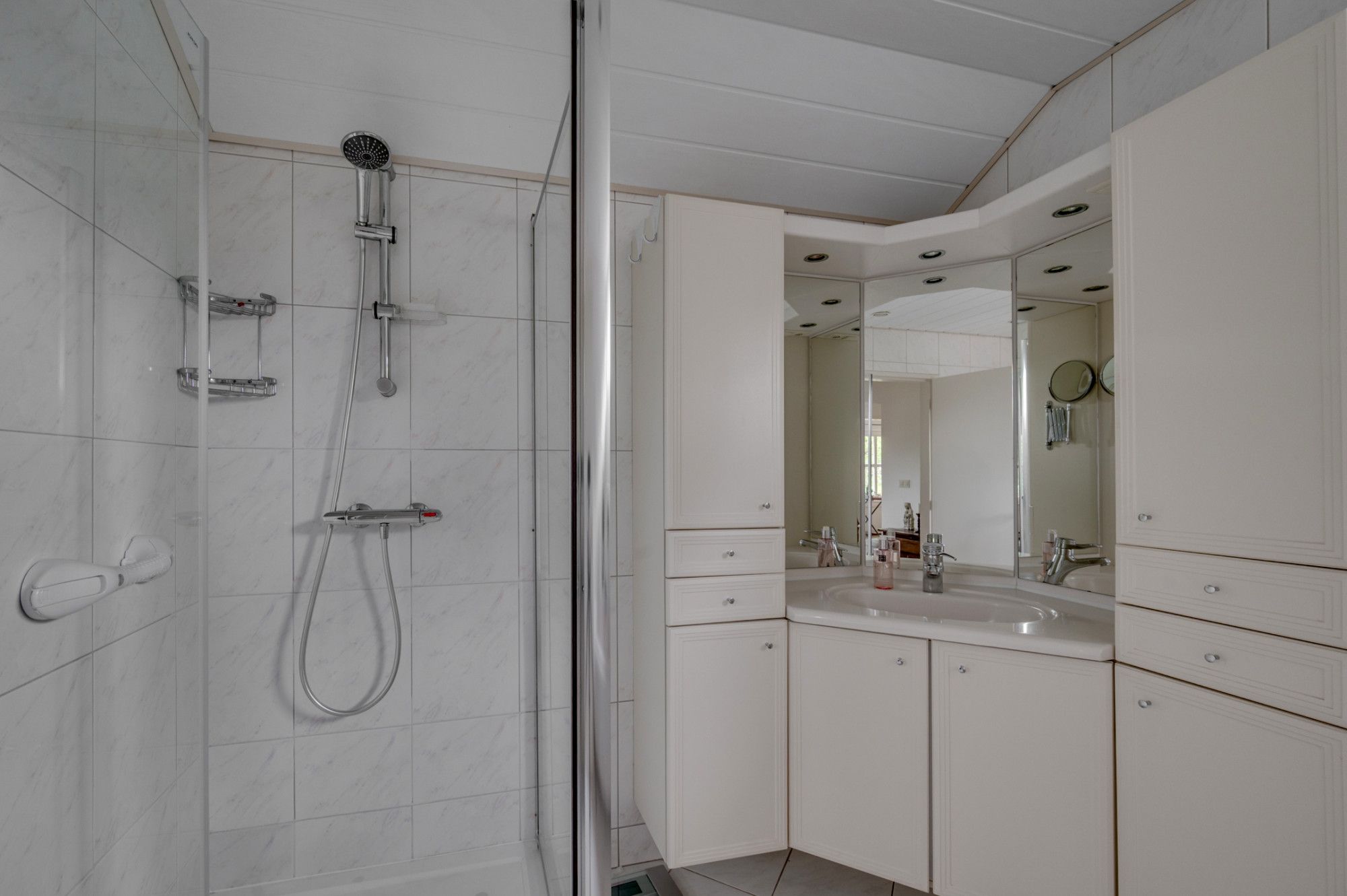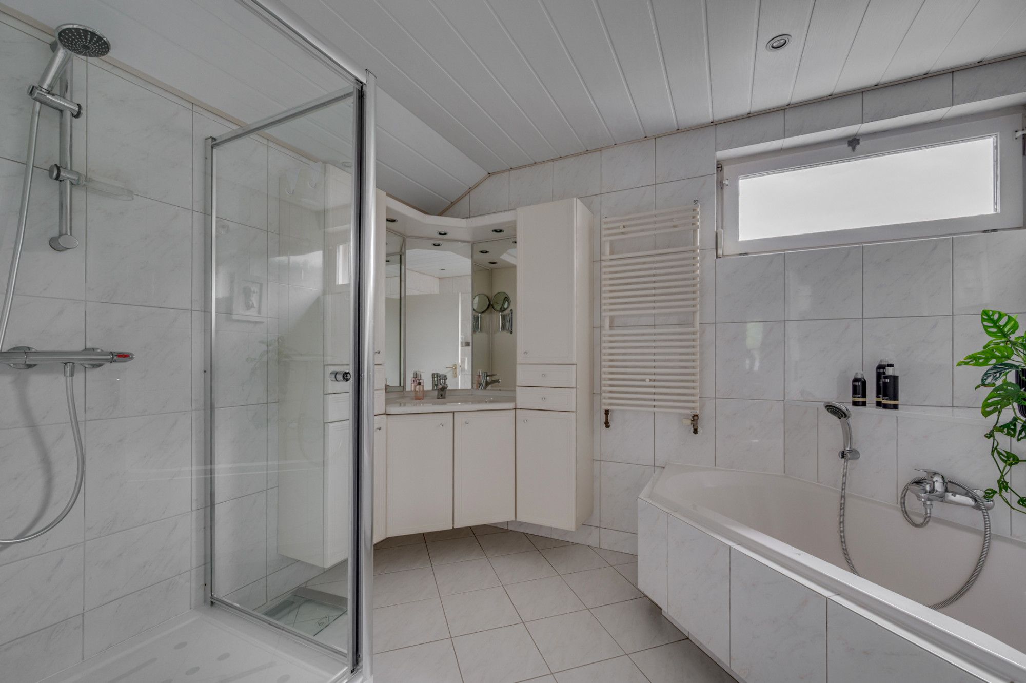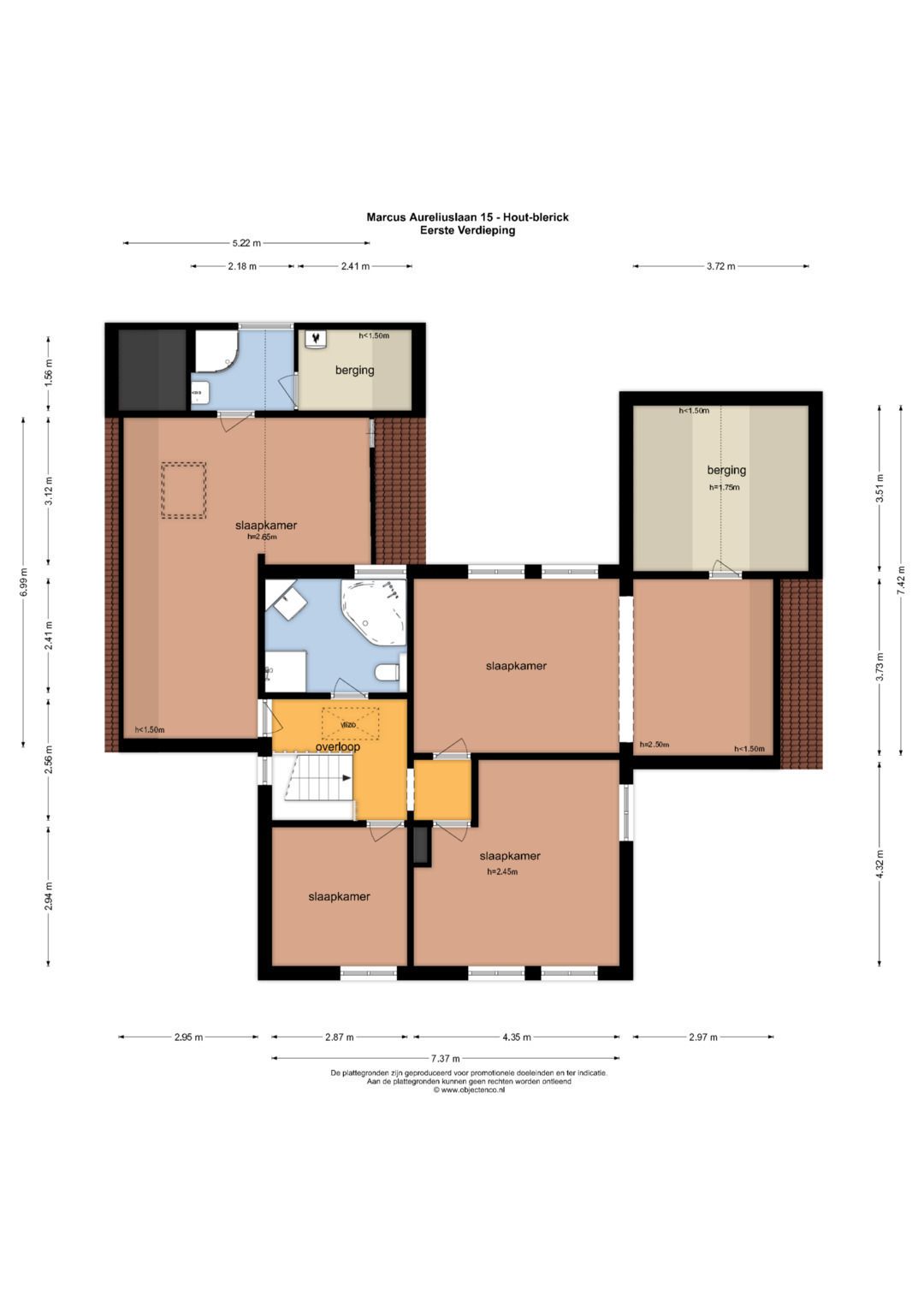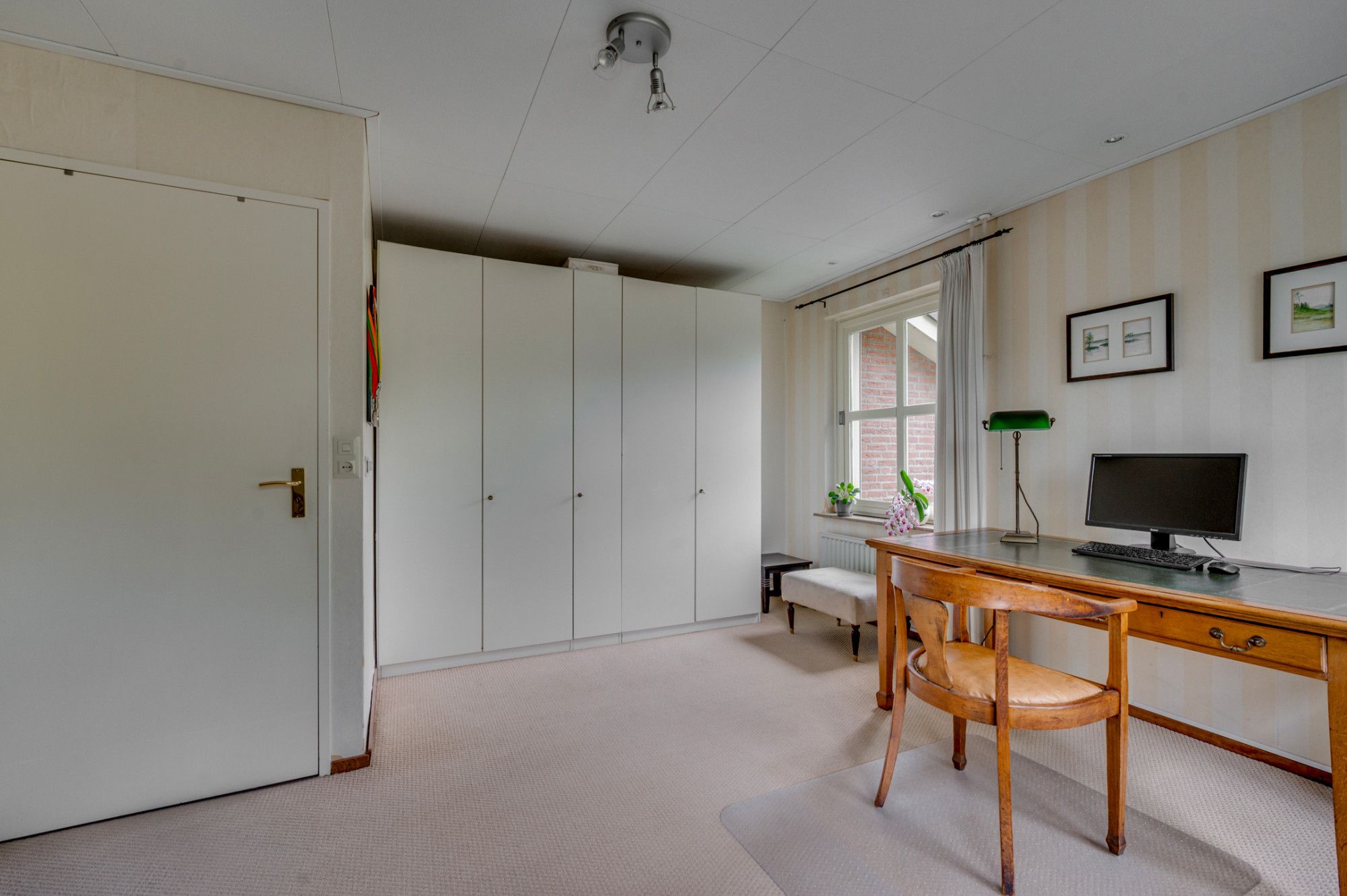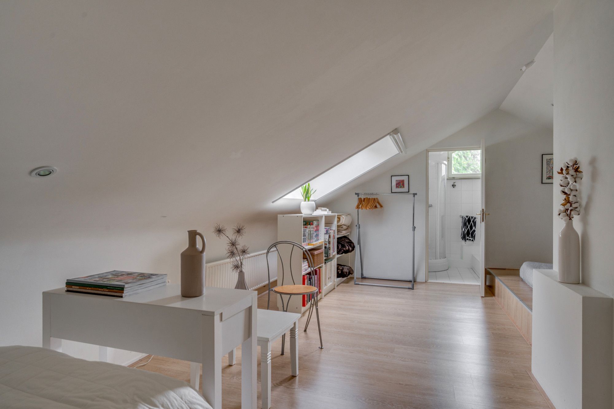 De overloop geeft toegang tot de 4 slaapkamers en een badkamer. De slaapkamers zijn ca. 9m². 19m², 27m² en 27,5m² groot. De 2 grootste slaapkamers hebben een aparte berging. De slaapkamer van ca. 27m² beschikt verder over een ensuite badkamer en een aparte berging. Deze badkamer is voorzien van een douche, wastafel en buitenraam, de badkamer geeft verder toegang tot een berging waar de CV-ketel (ATAG 2019) is geplaatst. De badkamer welke bij de overloop is gepositioneerd beschikt over een zwevend toilet, ligbad, douche en wastafel met meubel. De badkamer is voorzien van elektrische vloerverwarming.