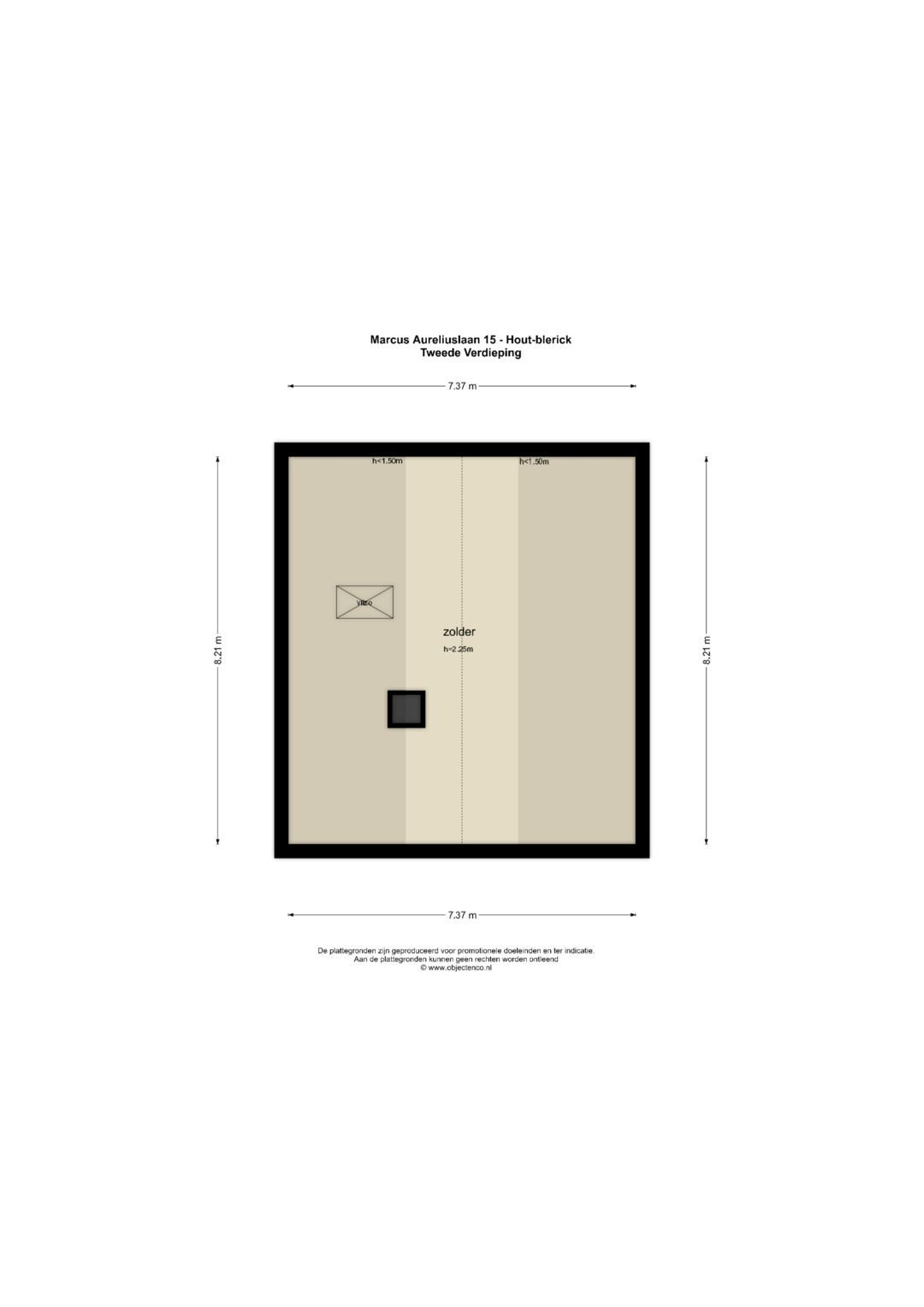 De kelder heeft een hoogte van 2.1m en is ca. 12,5m² groot.