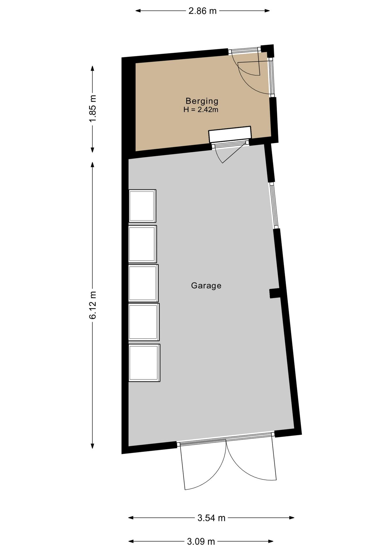 Aansluitend bevindt zich een ruime hobbyruimte/garage (ca 20m2) met separate berging (ca. 5m2), ideaal voor klussen, opslag of het stallen van fietsen en tuinmateriaal.