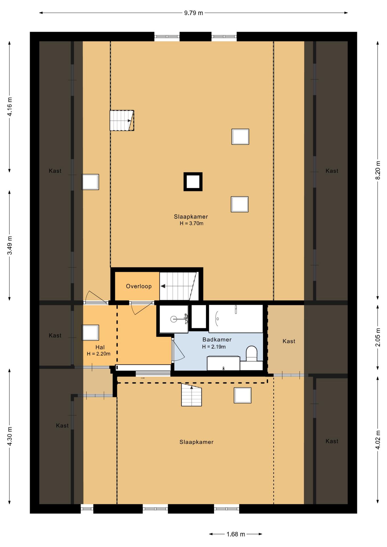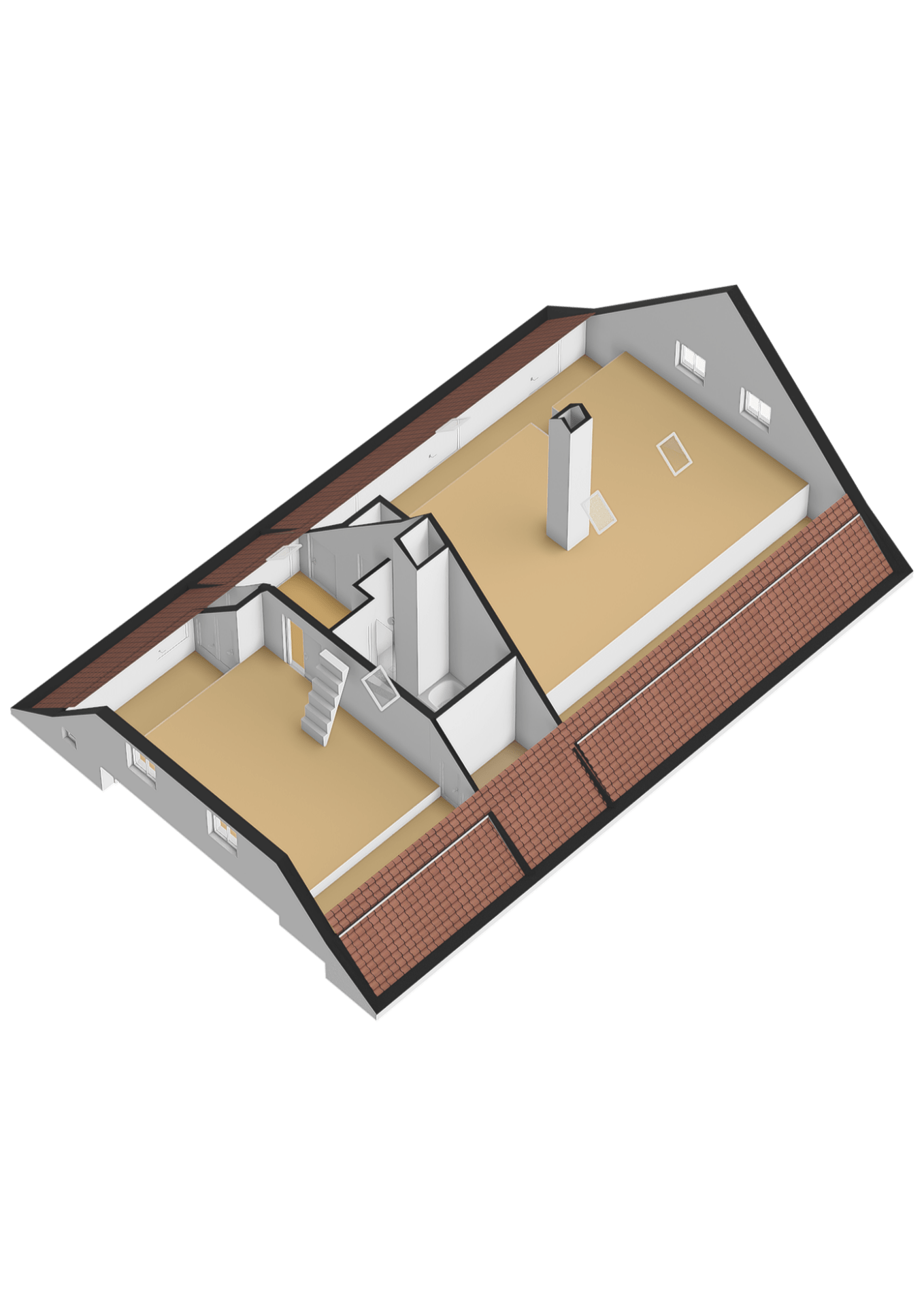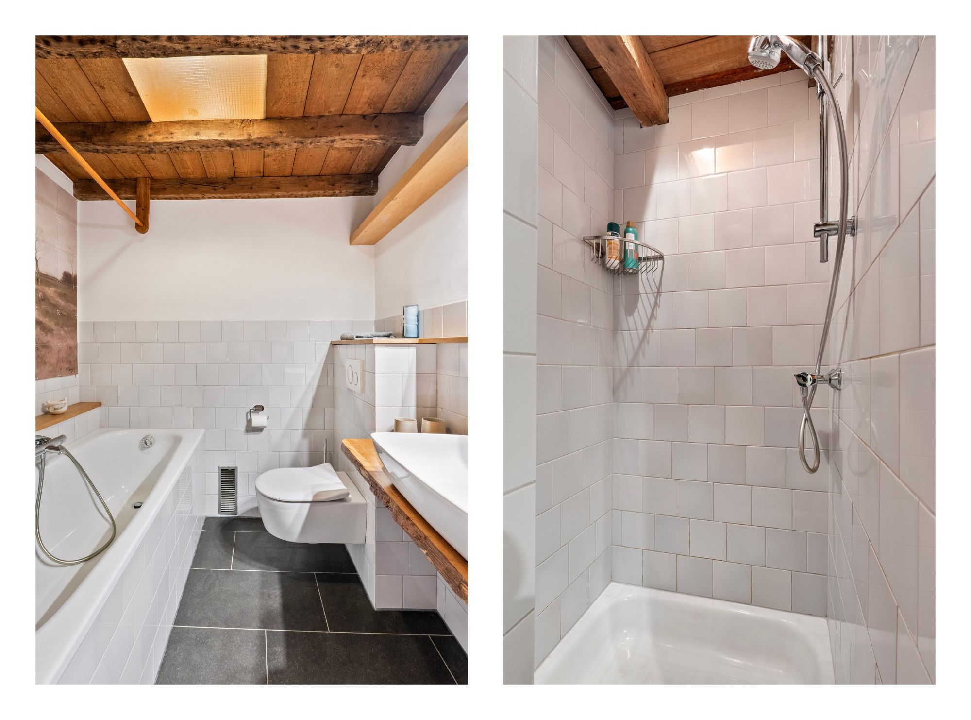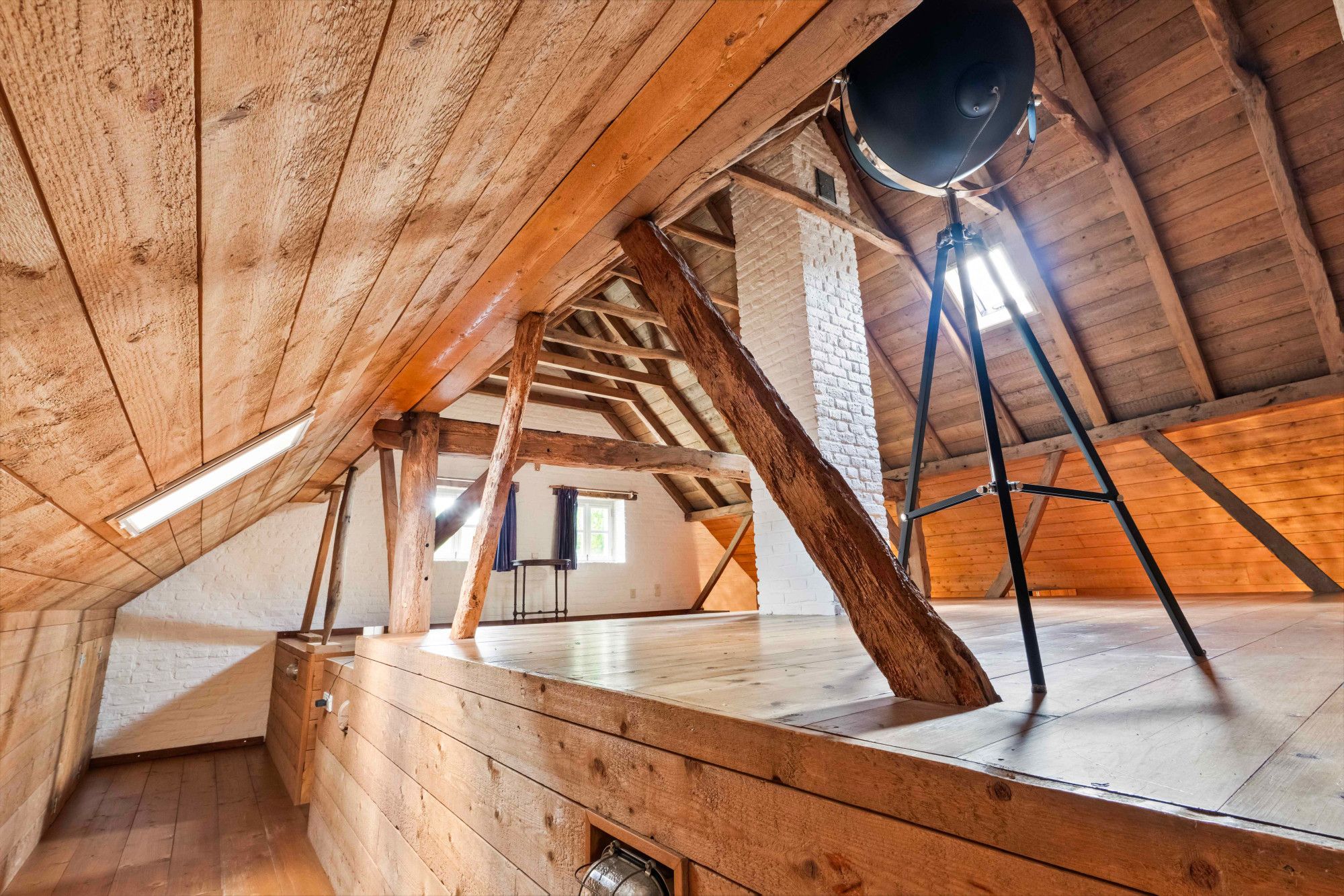Een tweede, multifunctionele kamer (ca. 38m2) is eveneens voorzien van inbouwkasten en biedt volop mogelijkheden: van extra slaapkamer(s), atelier of werkruimte tot een speelkamer. Dankzij de teruggebrachte originele kapconstructie met fraaie nokhoogte, balken in het zicht en volledige isolatie, ademt deze verdieping karakter, rust en kwaliteit.