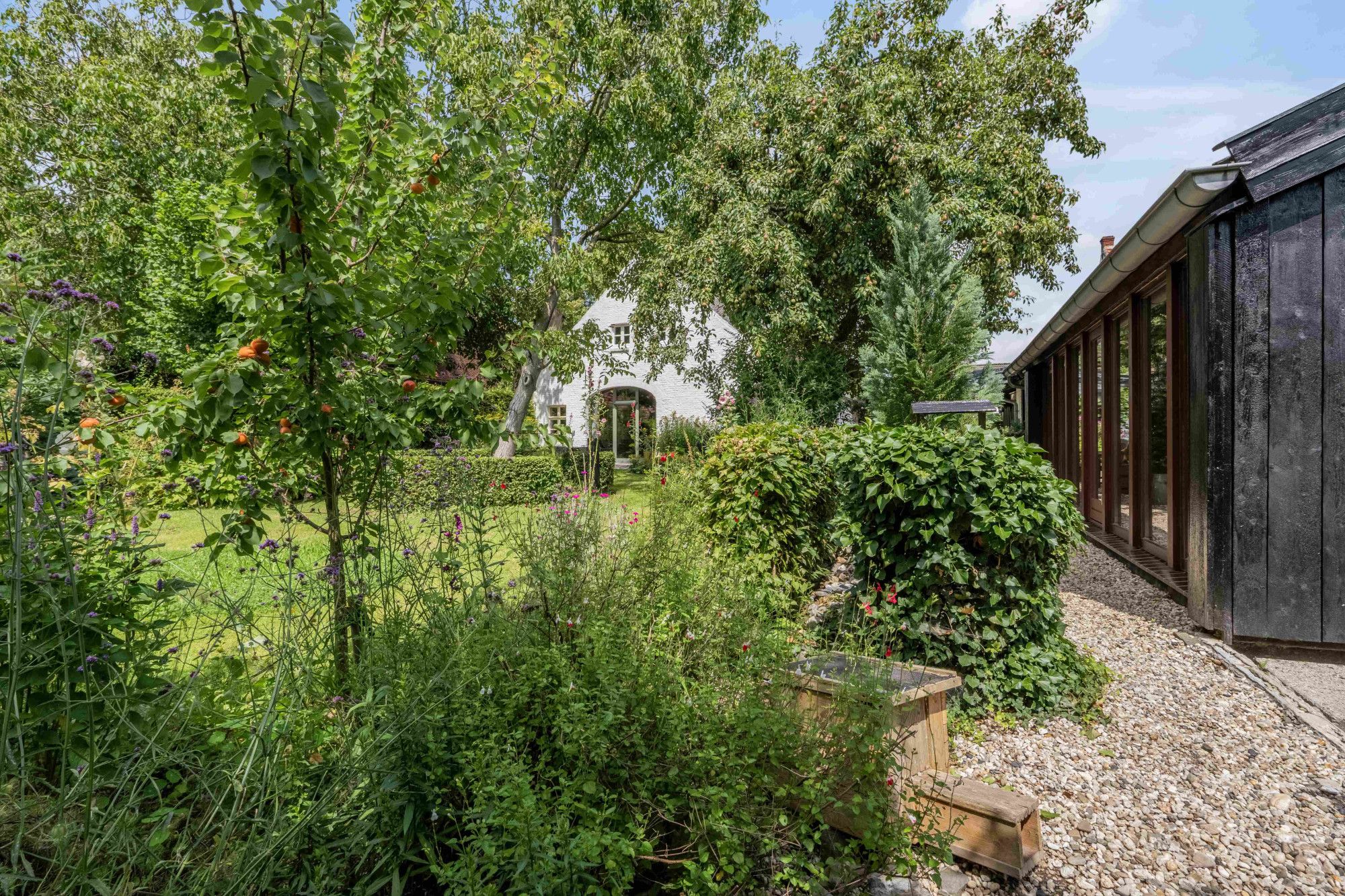 De woning is omgeven door een prachtig aangelegde, biologische tuin met een rijke mix van natuur, functionaliteit en historie. De eigen oprit, verhard met originele Maaskeien, biedt parkeergelegenheid voor twee auto's en leidt naar een carport met sedumdak: een groene en duurzame oplossing.