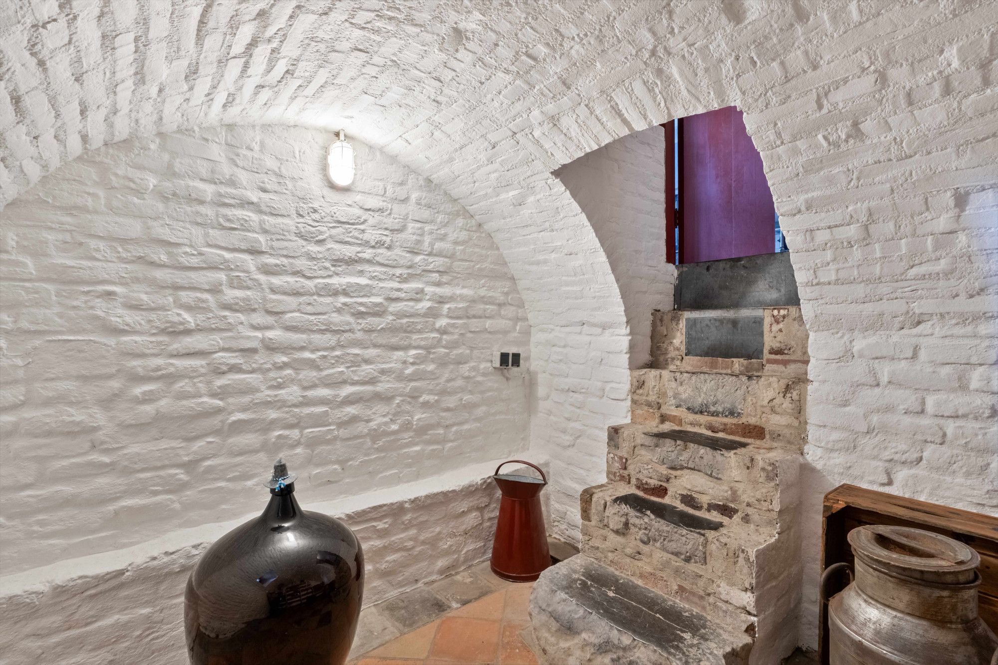 Via een stenen trap bereik je de praktische provisiekelder met tongewelf. Een ruimte (ca. 5m2) met een continue koele temperatuur en historische uitstraling.