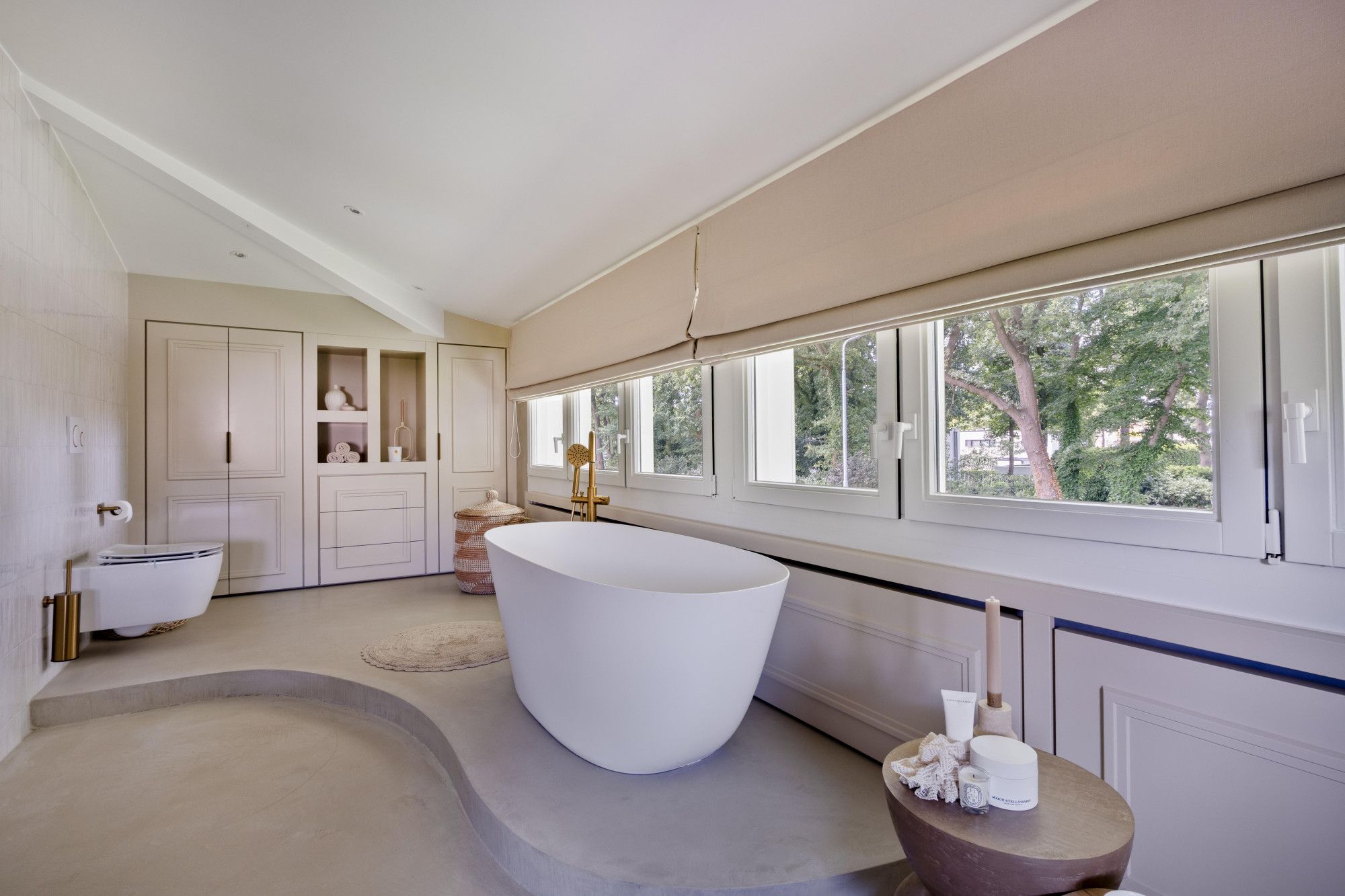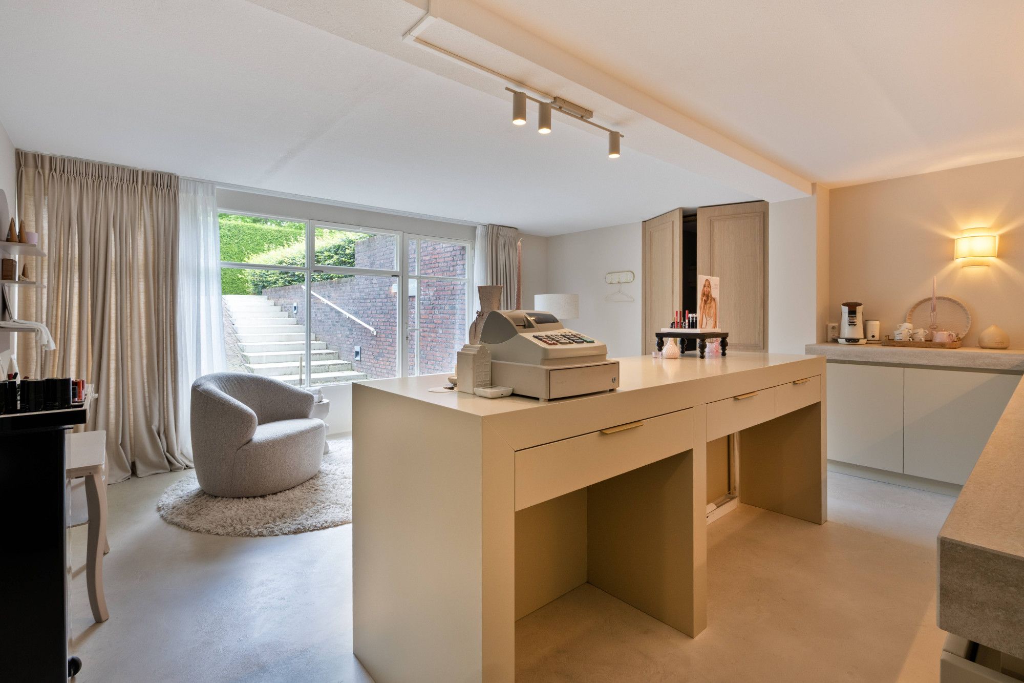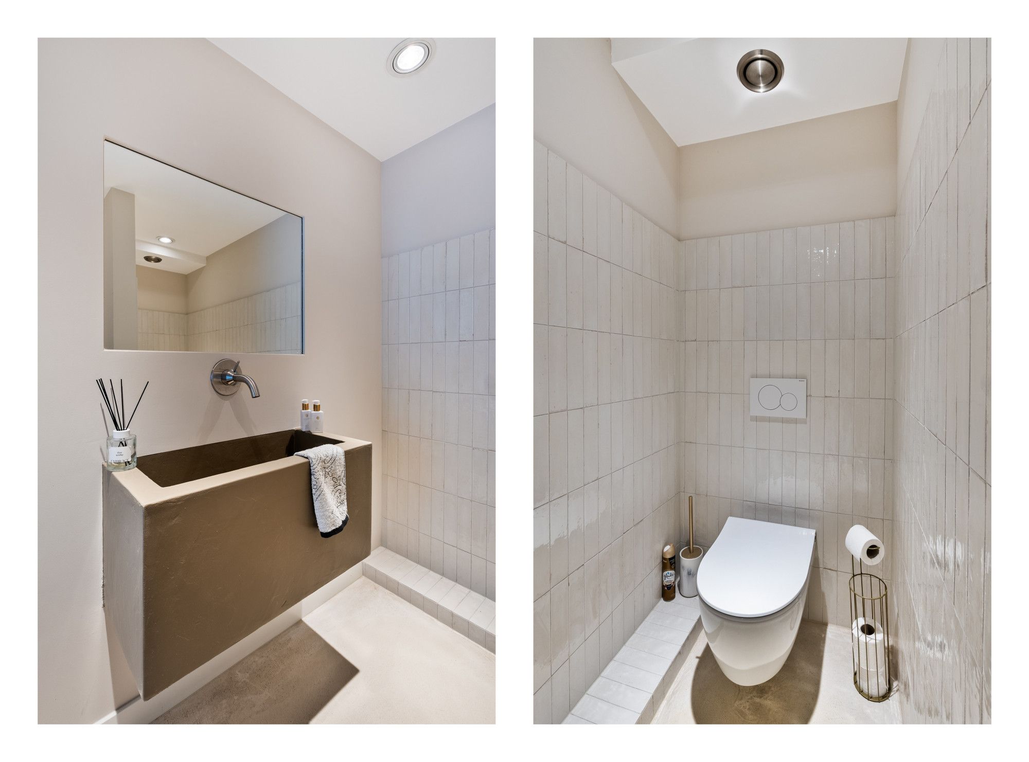 De kroon op dit geheel is de salon: een plek die wonen en werken moeiteloos samenbrengt. Uitgevoerd met hoogwaardige materialen zoals gepoedercoat staal en travertinlook details, straalt deze ruimte luxe en gemak uit. De eigen opgang versterkt de zelfstandigheid van het souterrain, waardoor het ideaal is voor gasten, kantoor aan huis of creatieve activiteiten.
