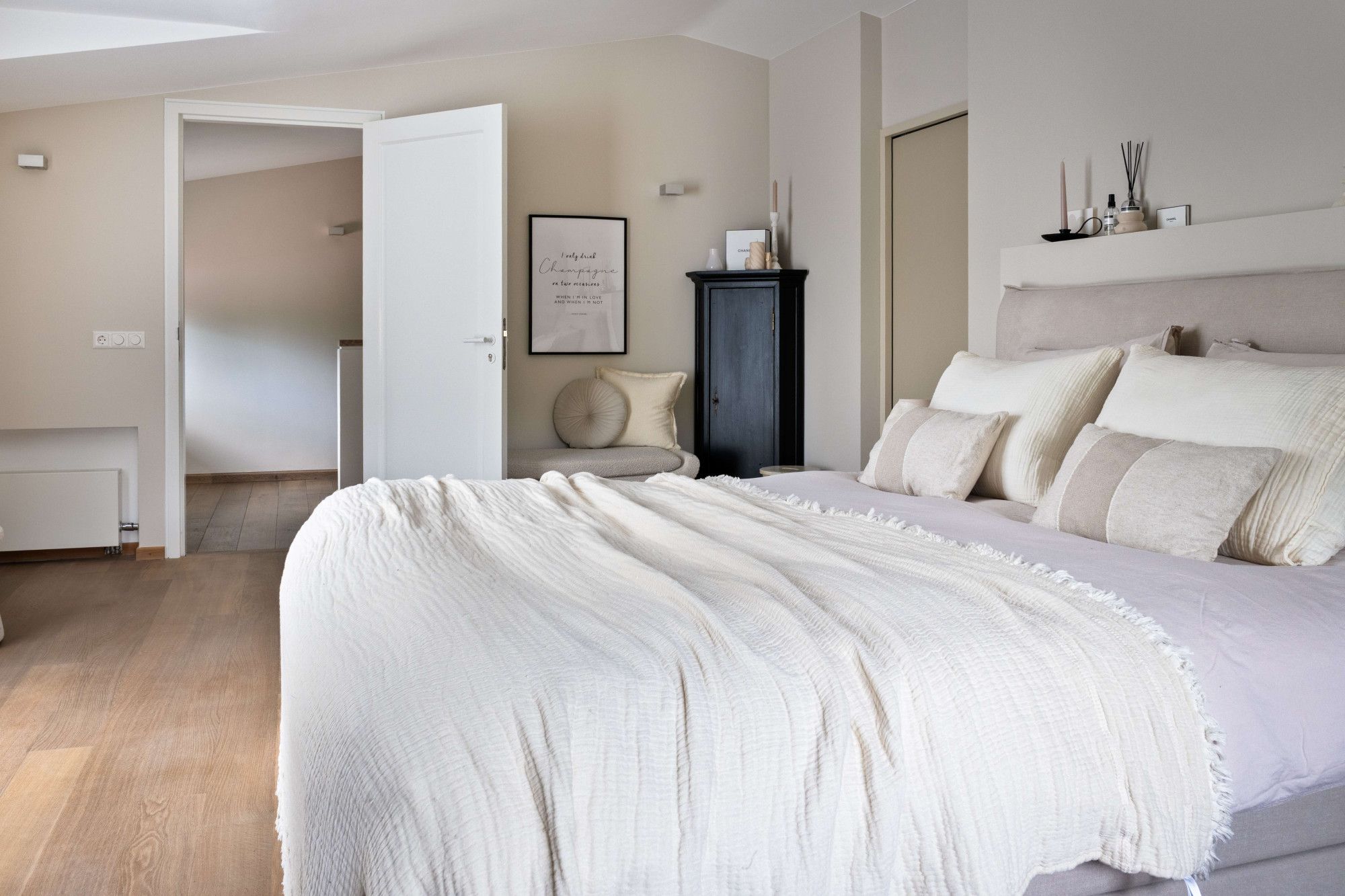 Details maken hier het verschil: subtiele gouden accenten, Toscaans stuukwerk en elegante afwerkingen creëren een tijdloze luxe. De slaapkamers, royale dressing en badkamers met een hoogwaardig wellness- en spa-gevoel lopen vloeiend in elkaar over, waarbij maatwerkkasten zorgen voor overzicht, rust en een elegante uitstraling. Overal sprankelt een vleugje magie, waardoor de verdieping een intieme, warme sfeer uitstraalt. Een verdieping die niet alleen verbluft, maar vooral uitnodigt tot ontspanning en persoonlijke rust.