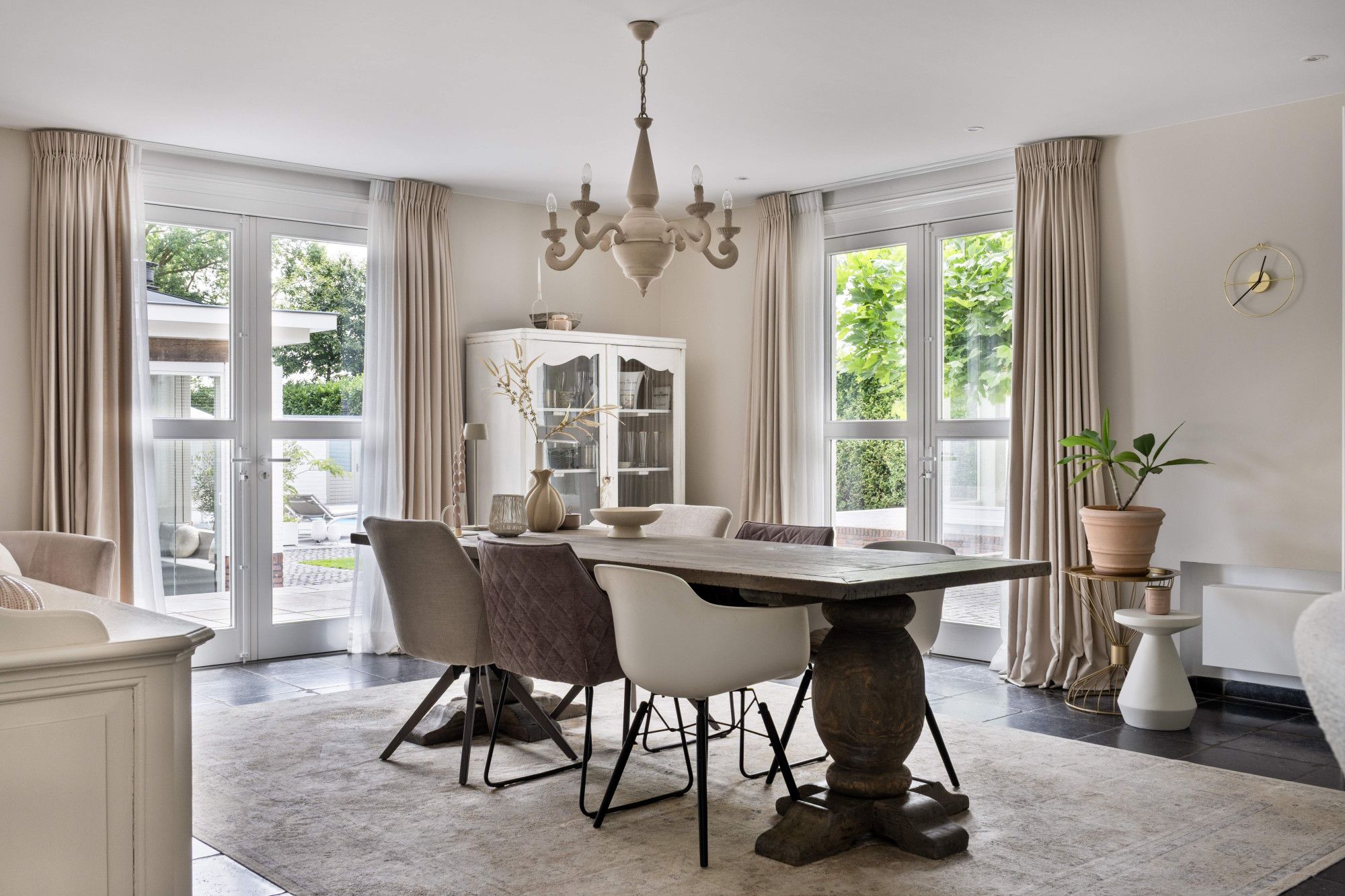 Gelegen op een royale kavel in een bosrijke omgeving biedt deze vrijstaande villa een oase van ruimte en privacy. De volledig aangelegde en omheinde tuin vormt een natuurlijk verlengstuk van het interieur, waar luxe, comfort en een gevoel van vakantie elkaar ontmoeten. Een luxe buitenhuis, een verwarmd zwembad met eigen poolhouse en een royaal terras nodigen uit tot buitenleven in optima forma. Denk aan lange zomerse avonden met vrienden en familie en een glas wijn in de hand: een vleugje zuidelijke flair, zodat het buitenleven voelt als een permanente vakantie.