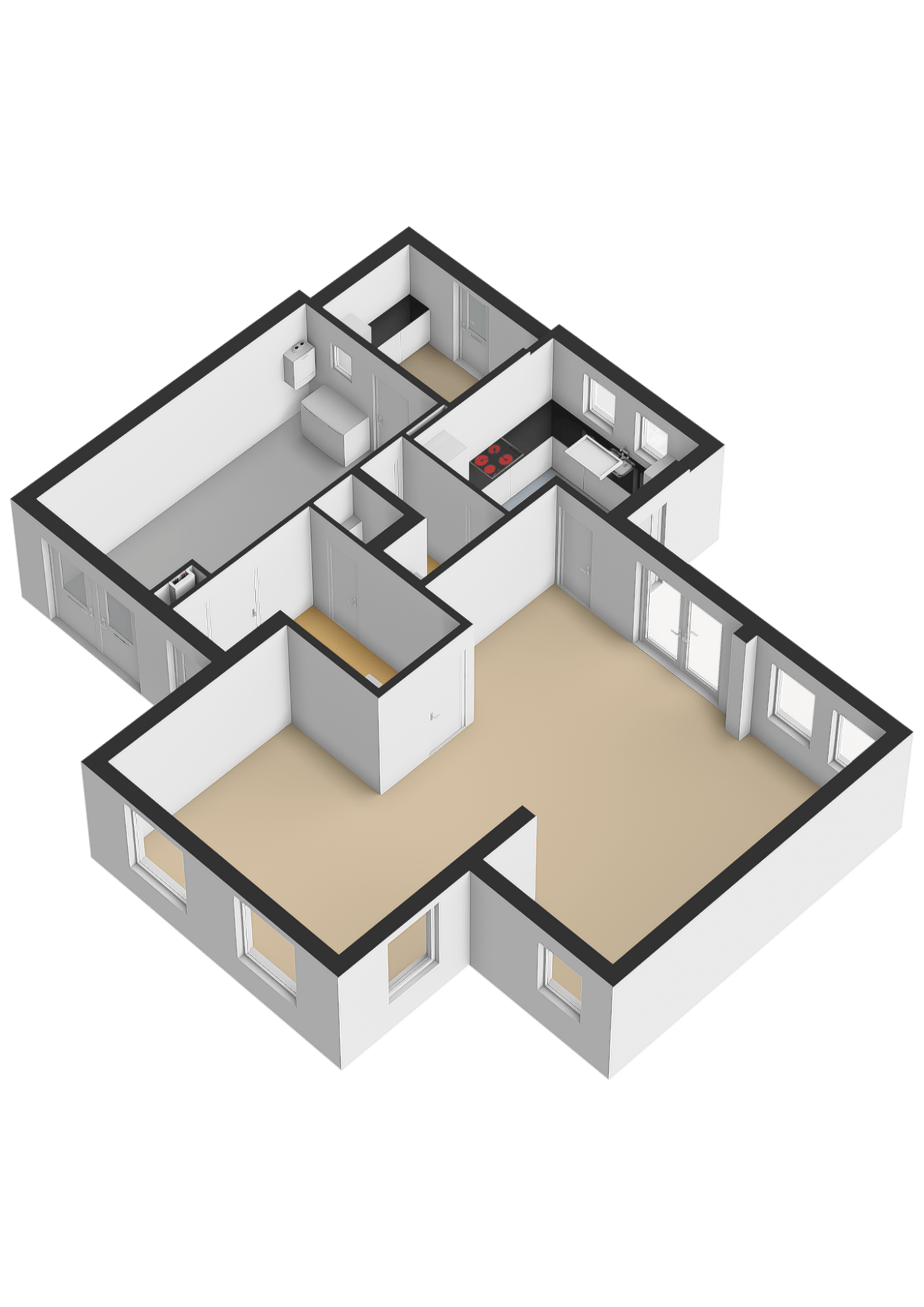 De woning beschikt over een bijzonder royale en lichte woon-/leefruimte van circa 56m² met openslaande tuindeuren, die direct een gevoel van ruimte en comfort biedt. Dankzij de grote raampartijen valt er gedurende de hele dag een aangename hoeveelheid natuurlijk licht naar binnen, wat zorgt voor een open en uitnodigende sfeer. De indeling van de ruimte leent zich uitstekend voor het creëren van een gezellige zithoek en een ruime eethoek, waardoor het een ideale plek is om te ontspannen en gasten te ontvangen.